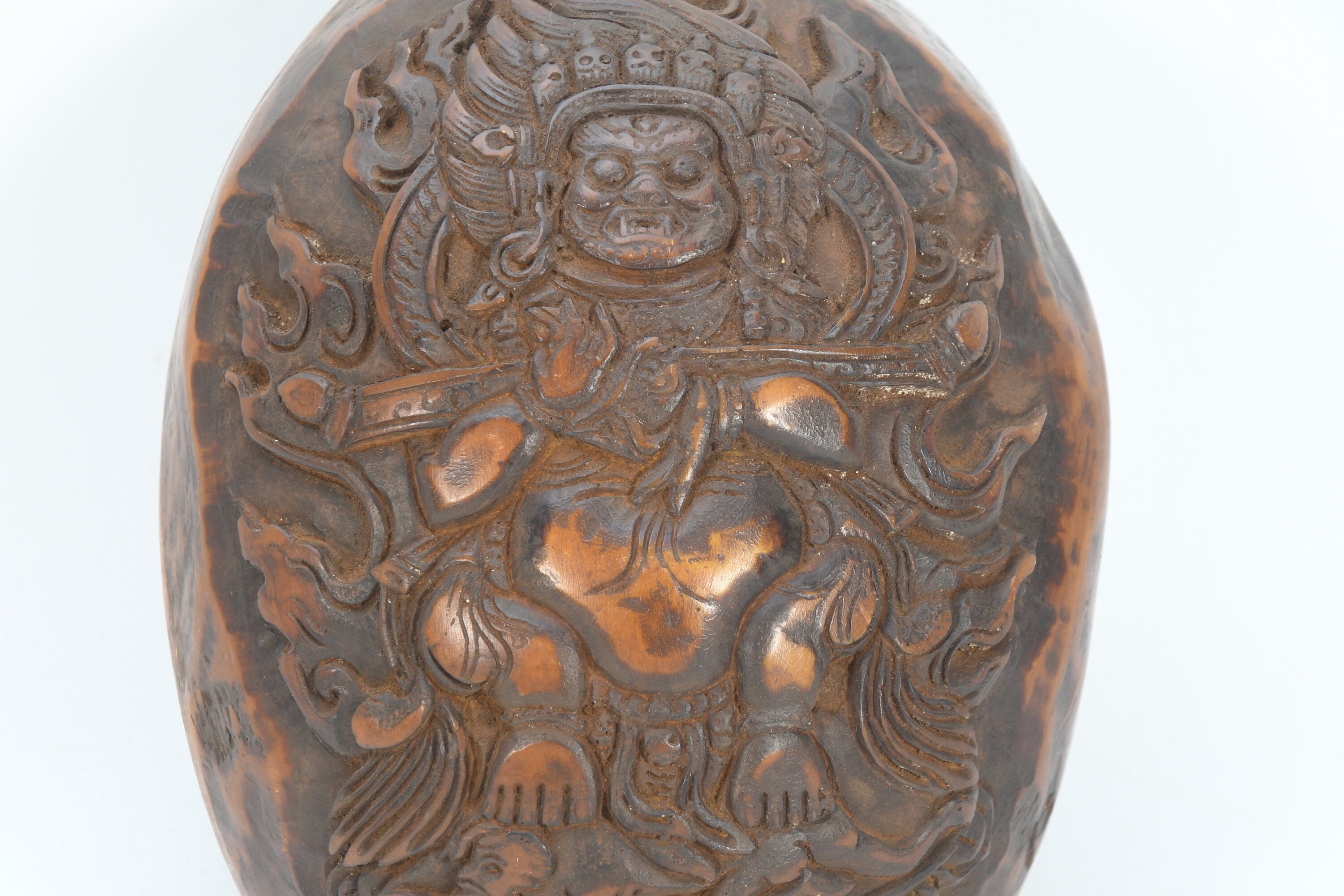 Bhairav Mahakala Handcarved Antique Tibetan Deity Kapala Offering Bowl Kapala