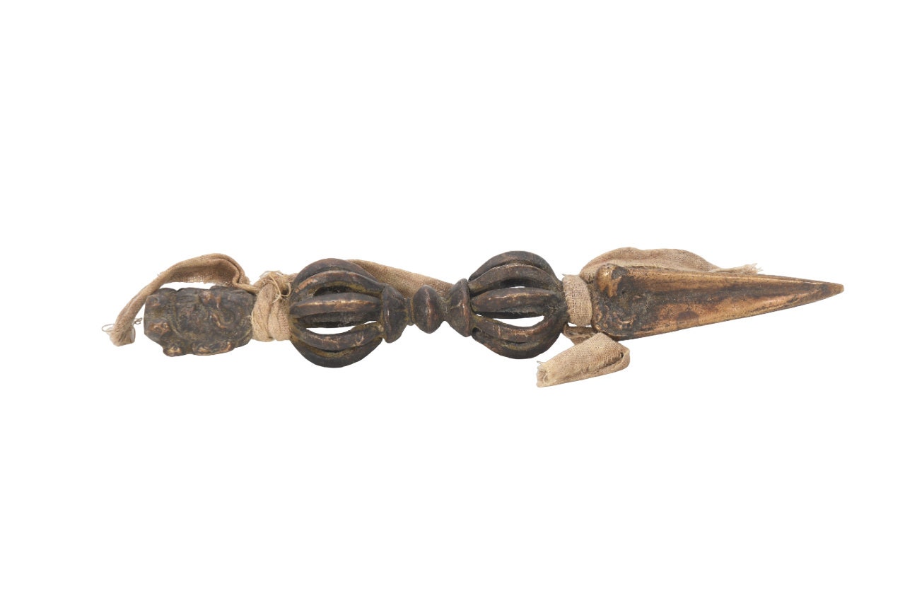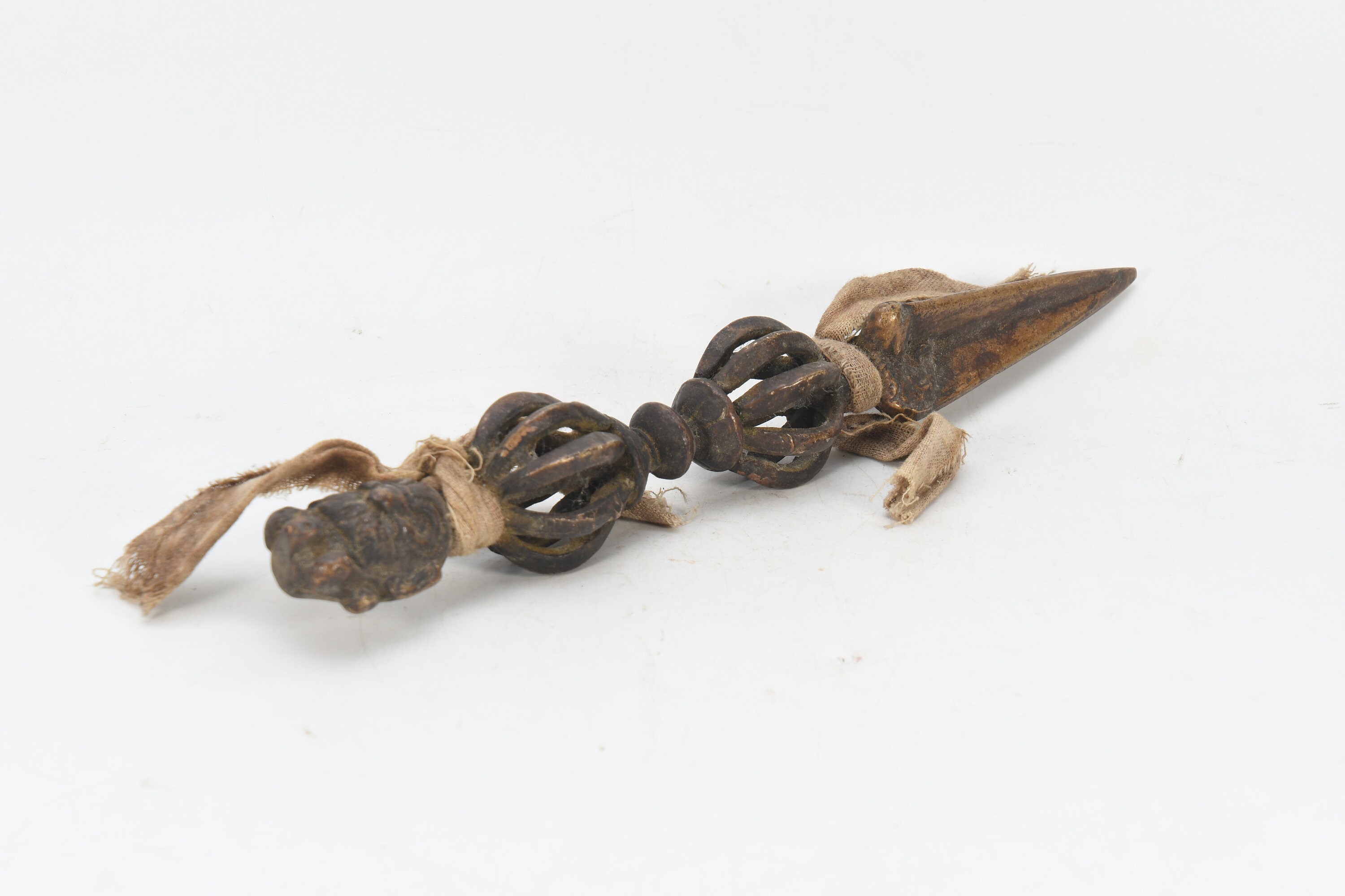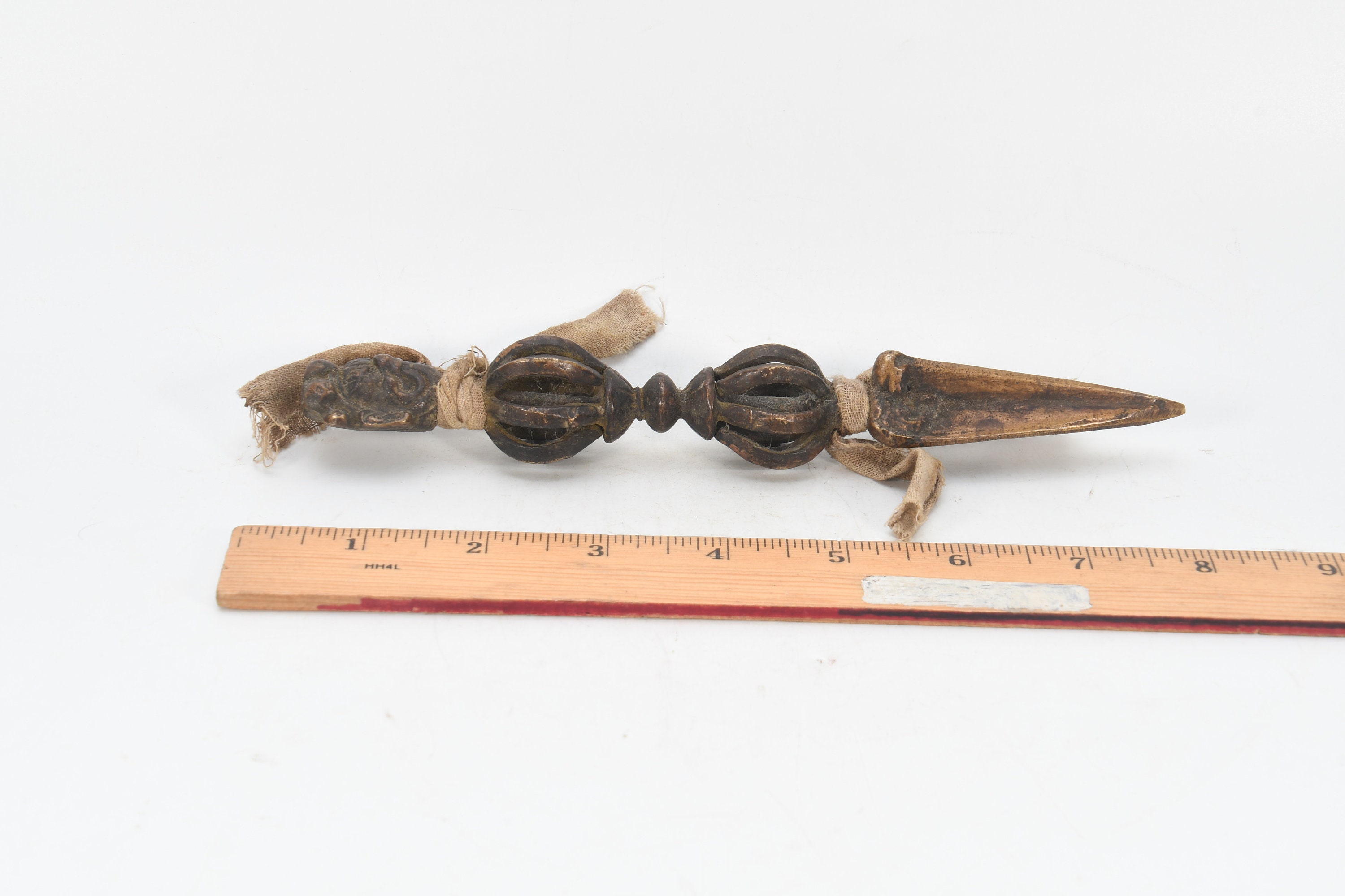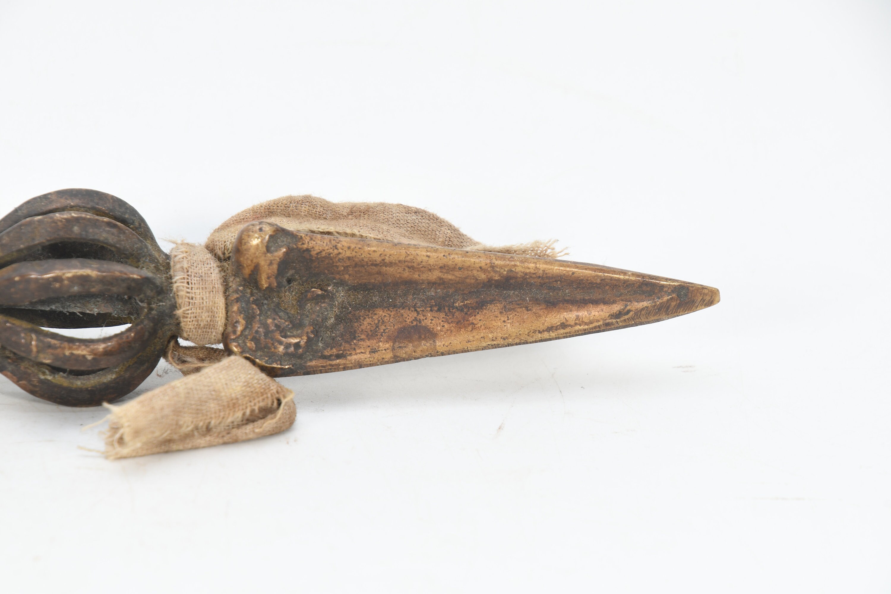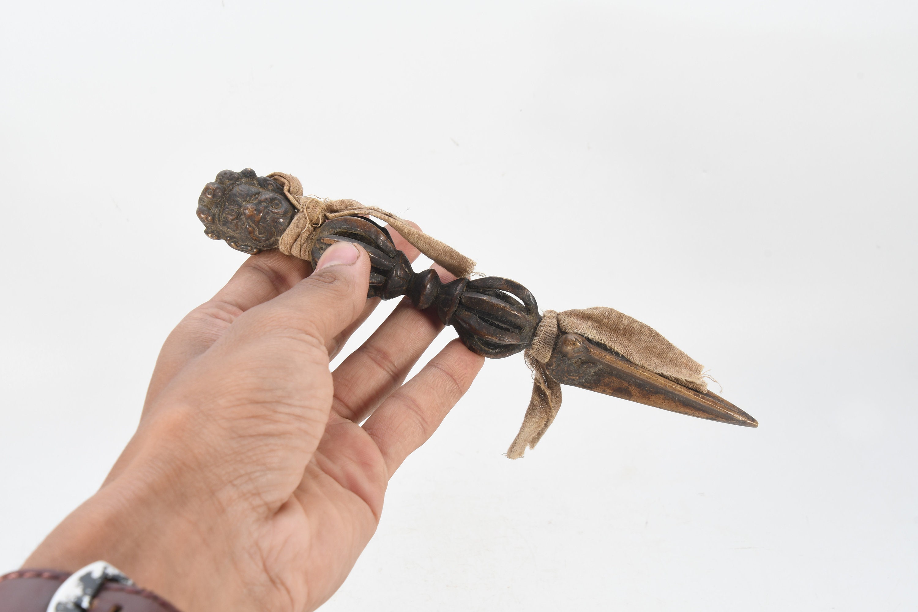 Dorje Carved Antique Brass Ritual Handmade Tibetan Buddhist Tantric Phurba Nepal