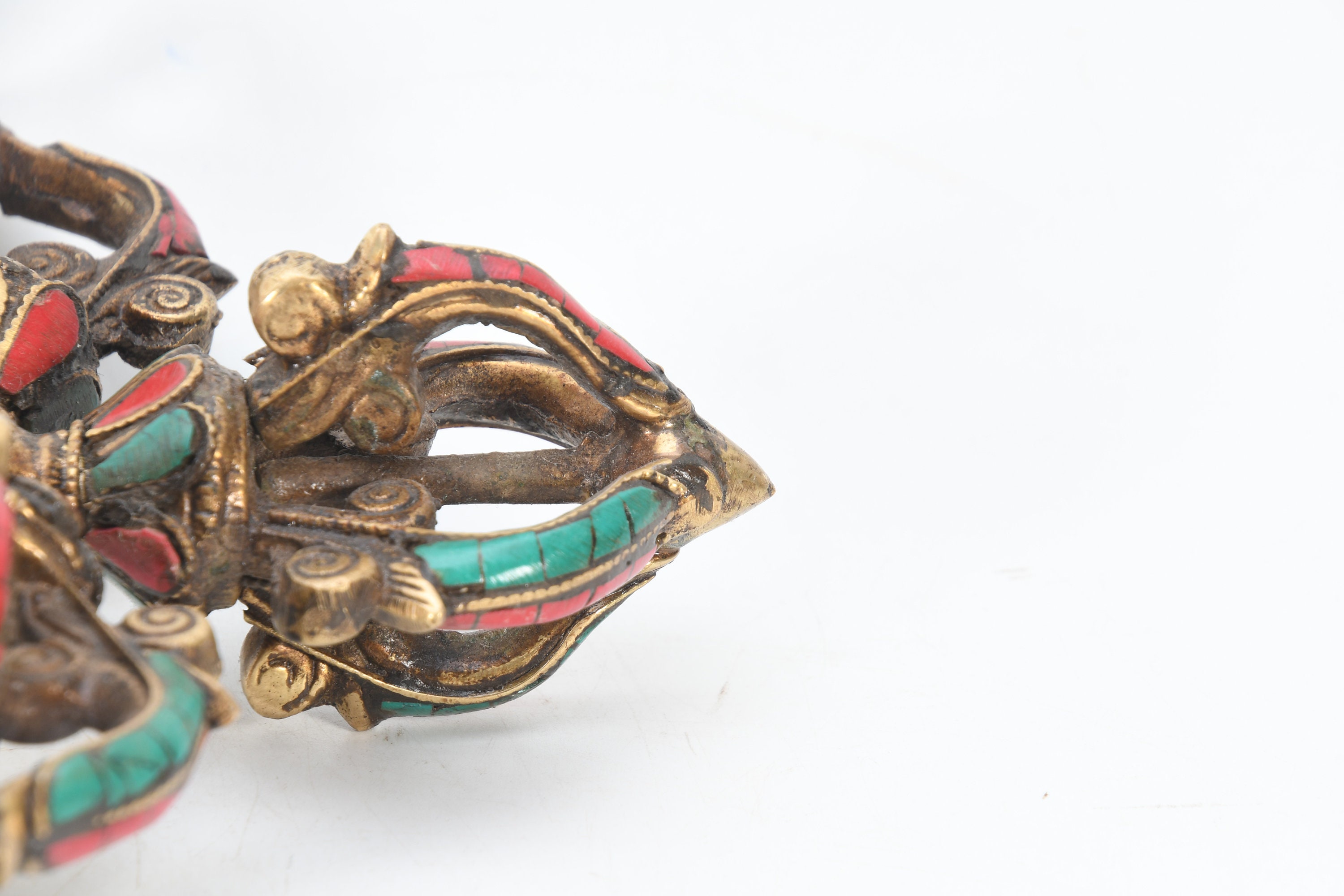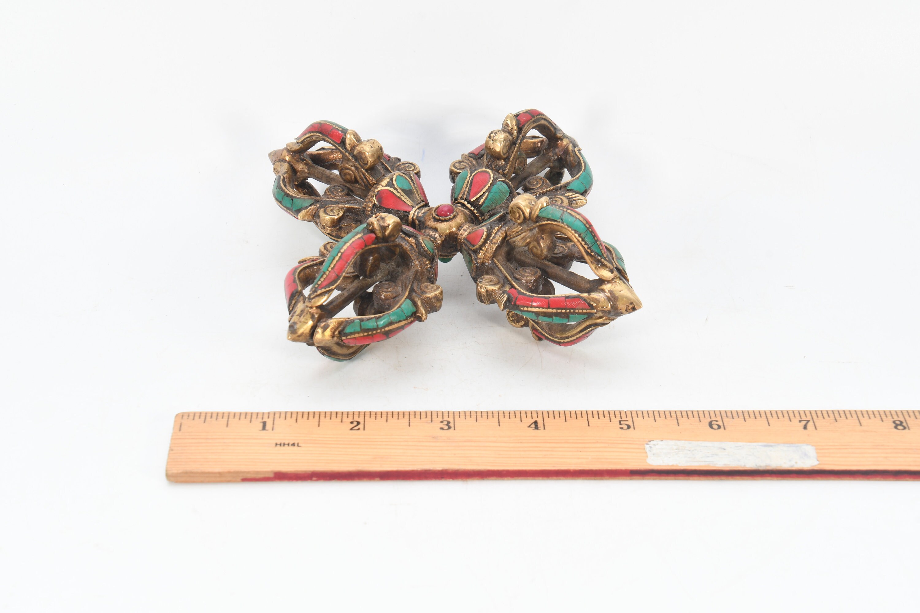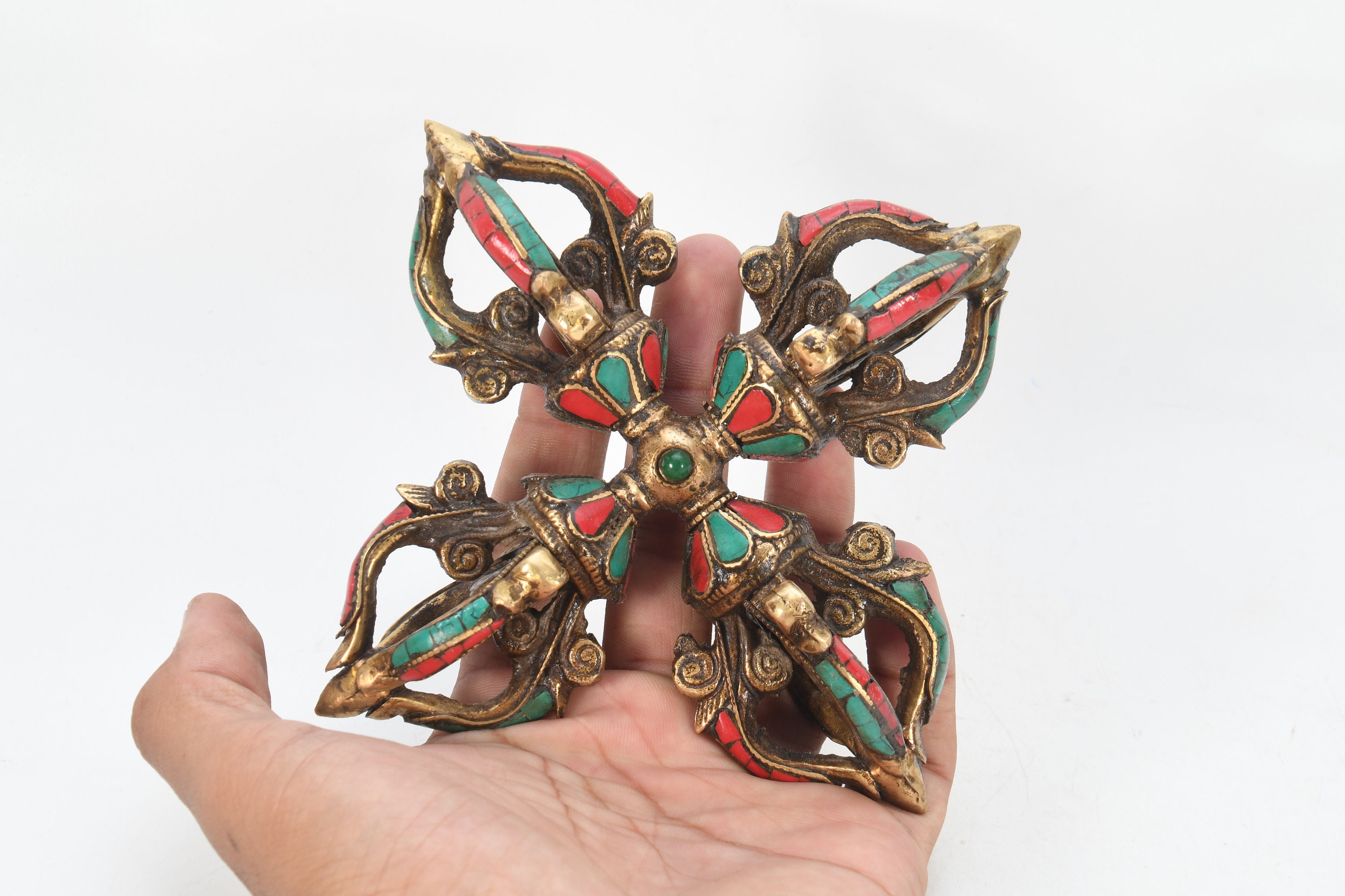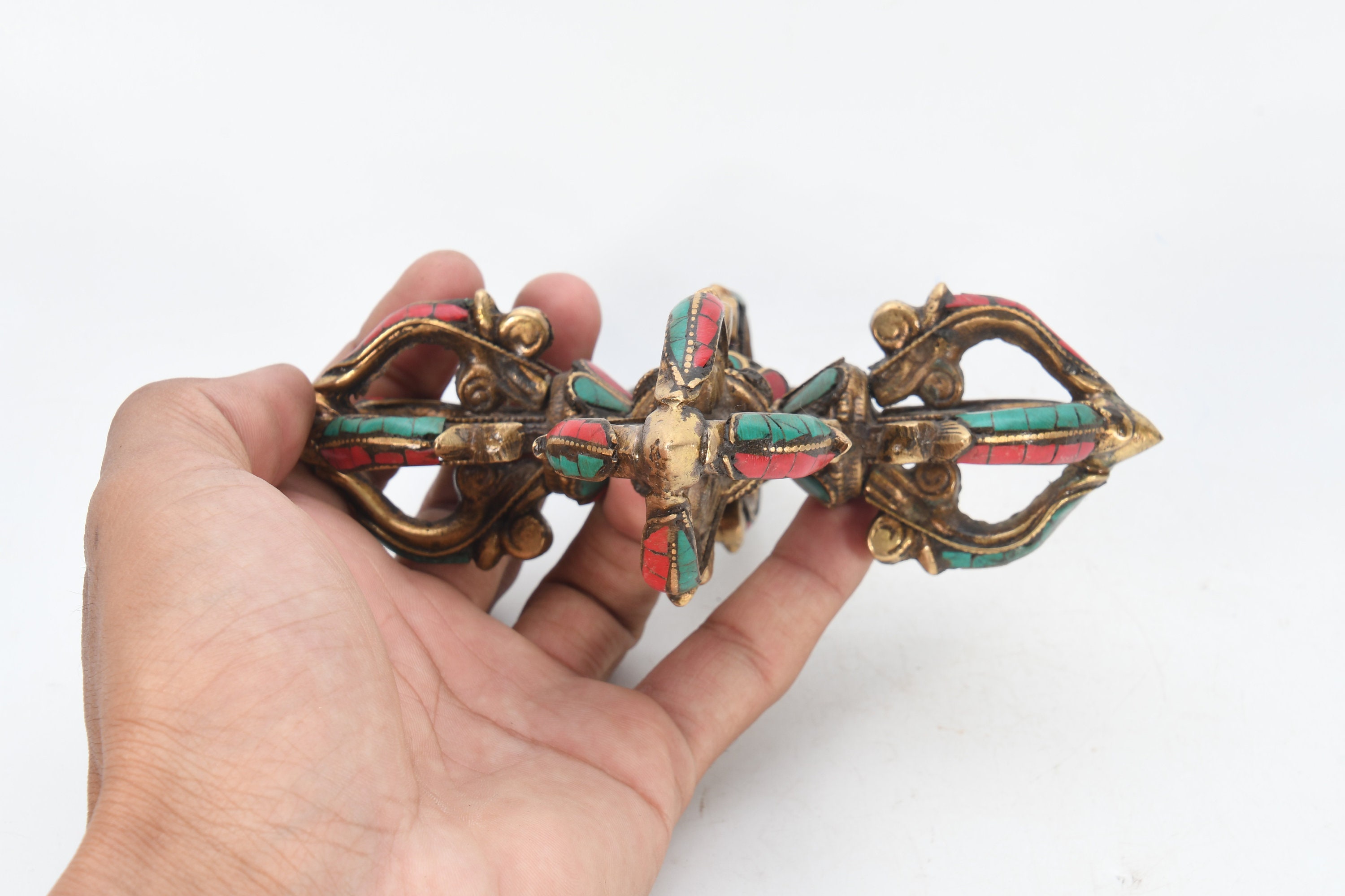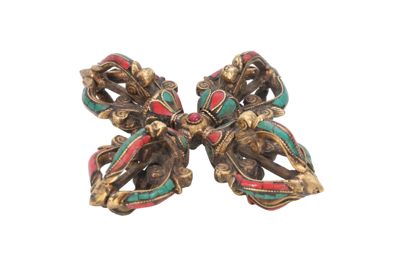 Turquoise Brass Double Dorje – Tibetan Buddhism Vajra, Nepal