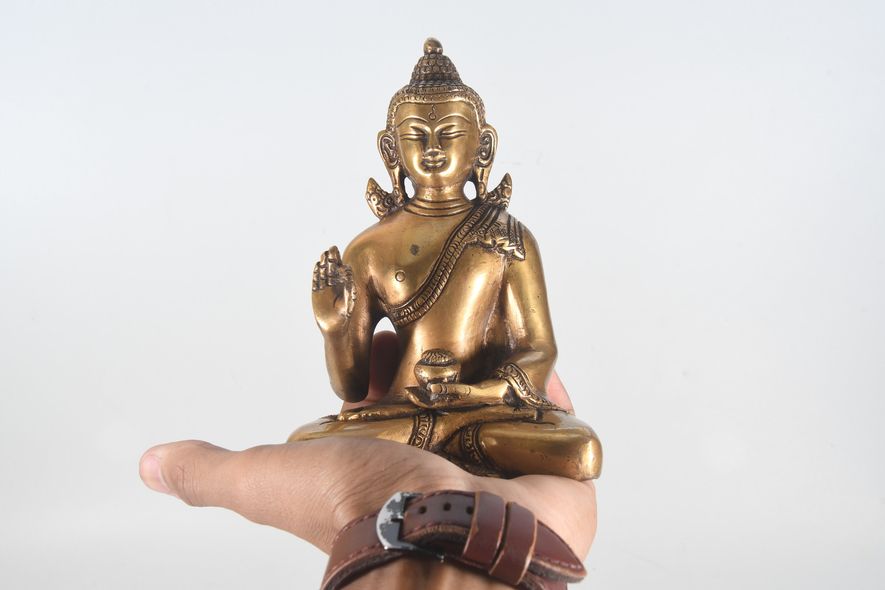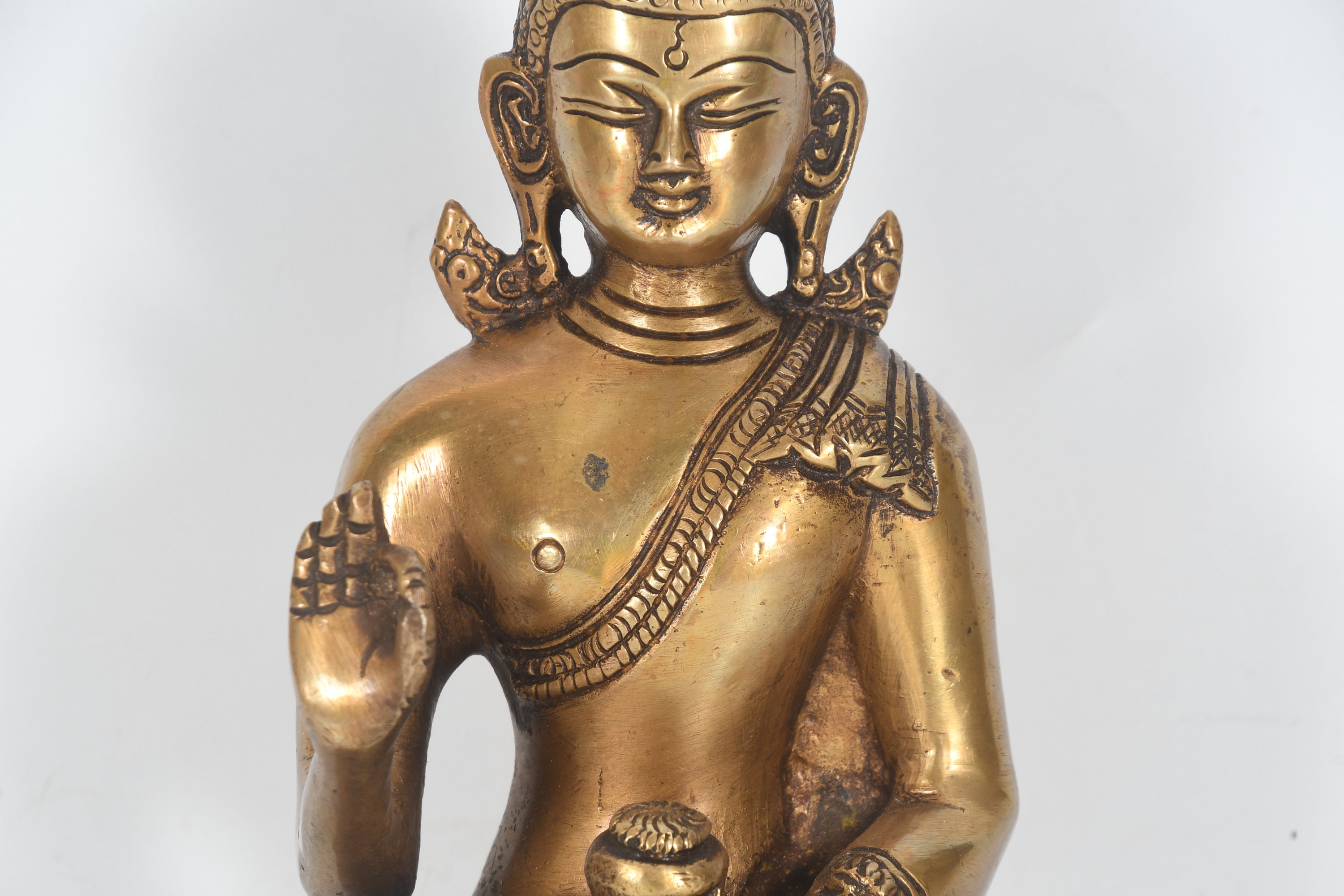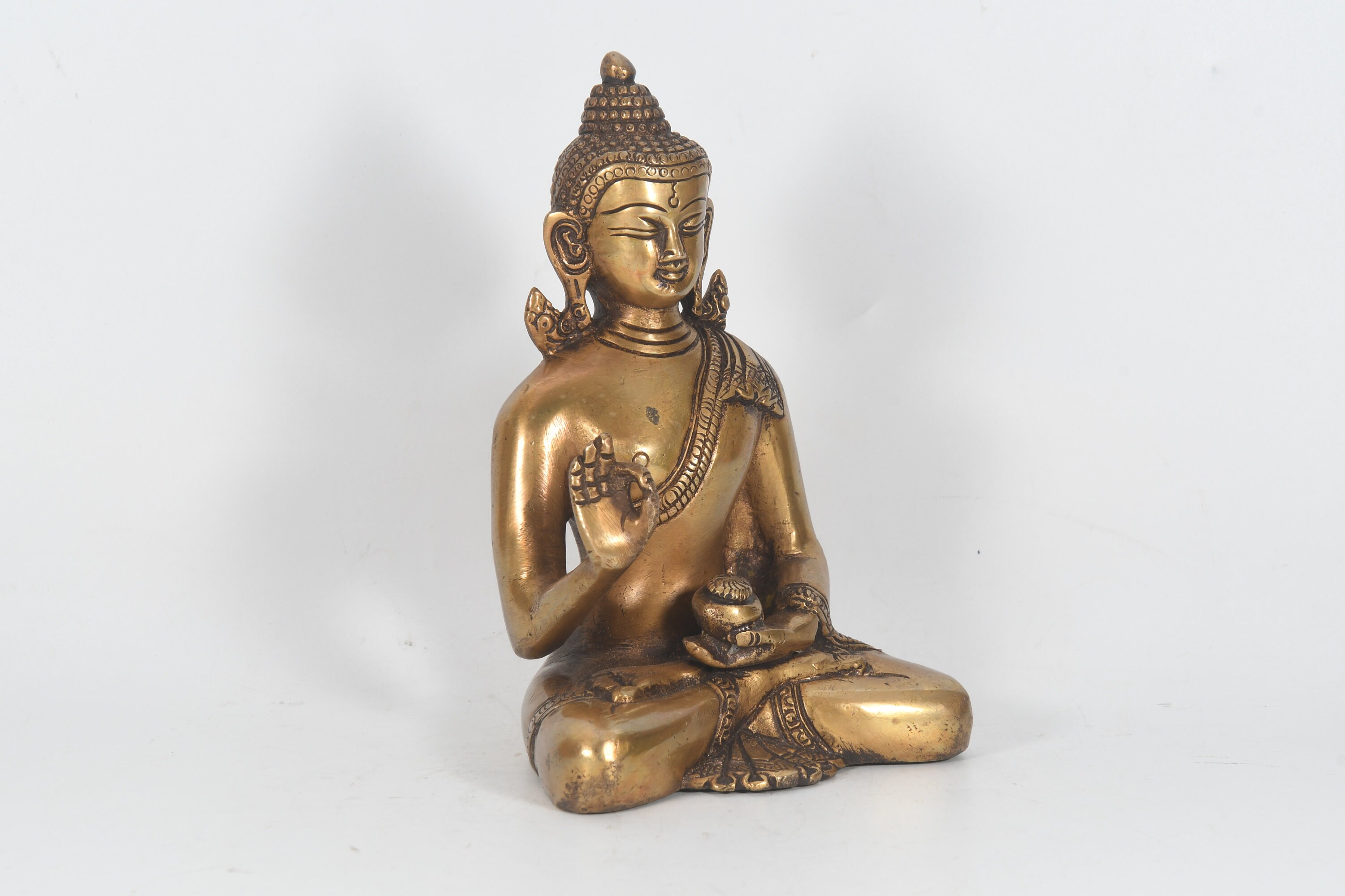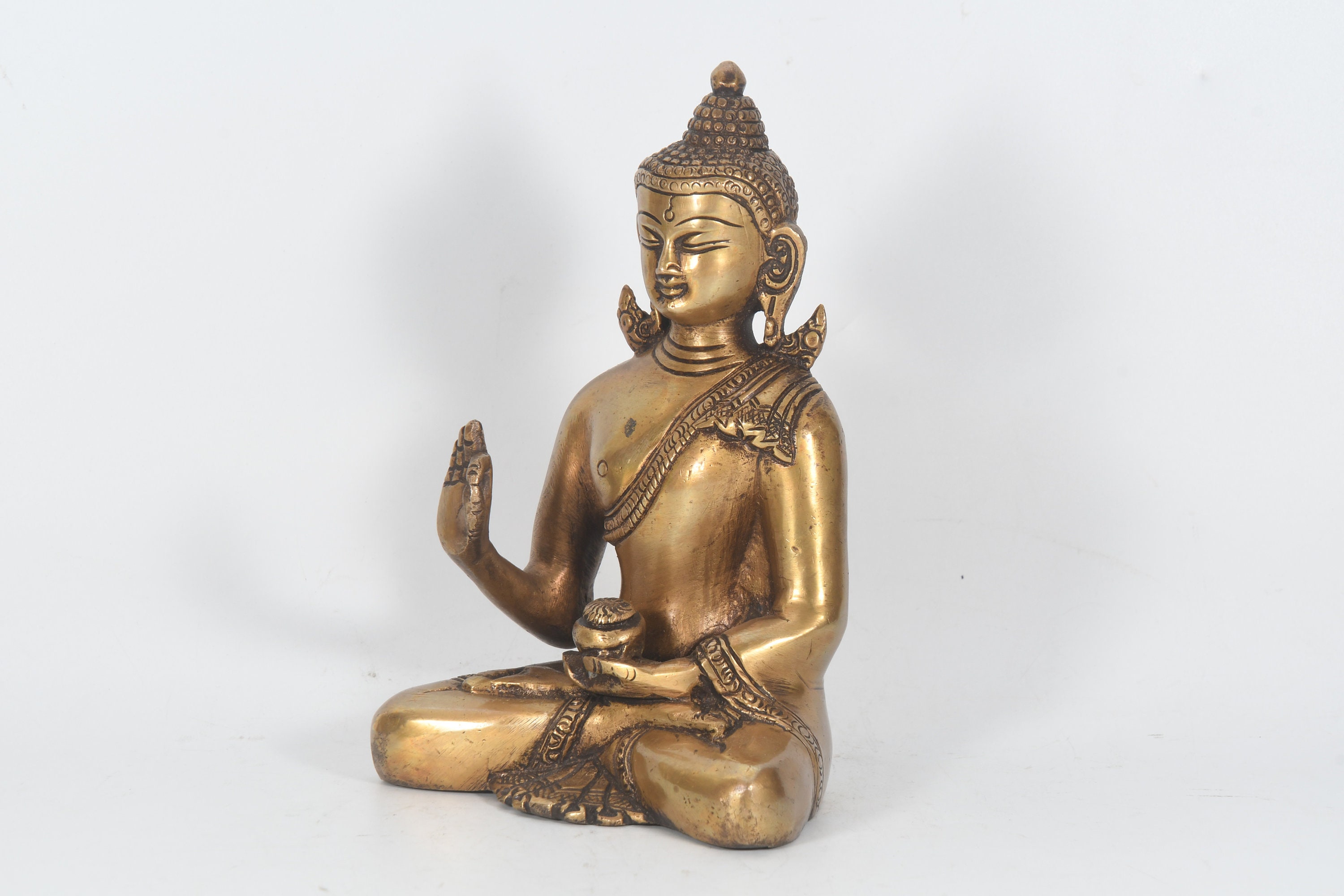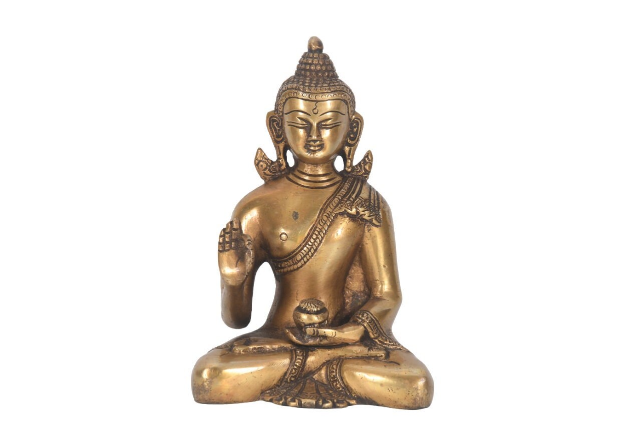 Antique Brass Sitting Buddha Statue: Tibetan Meditation Decor, Nepal