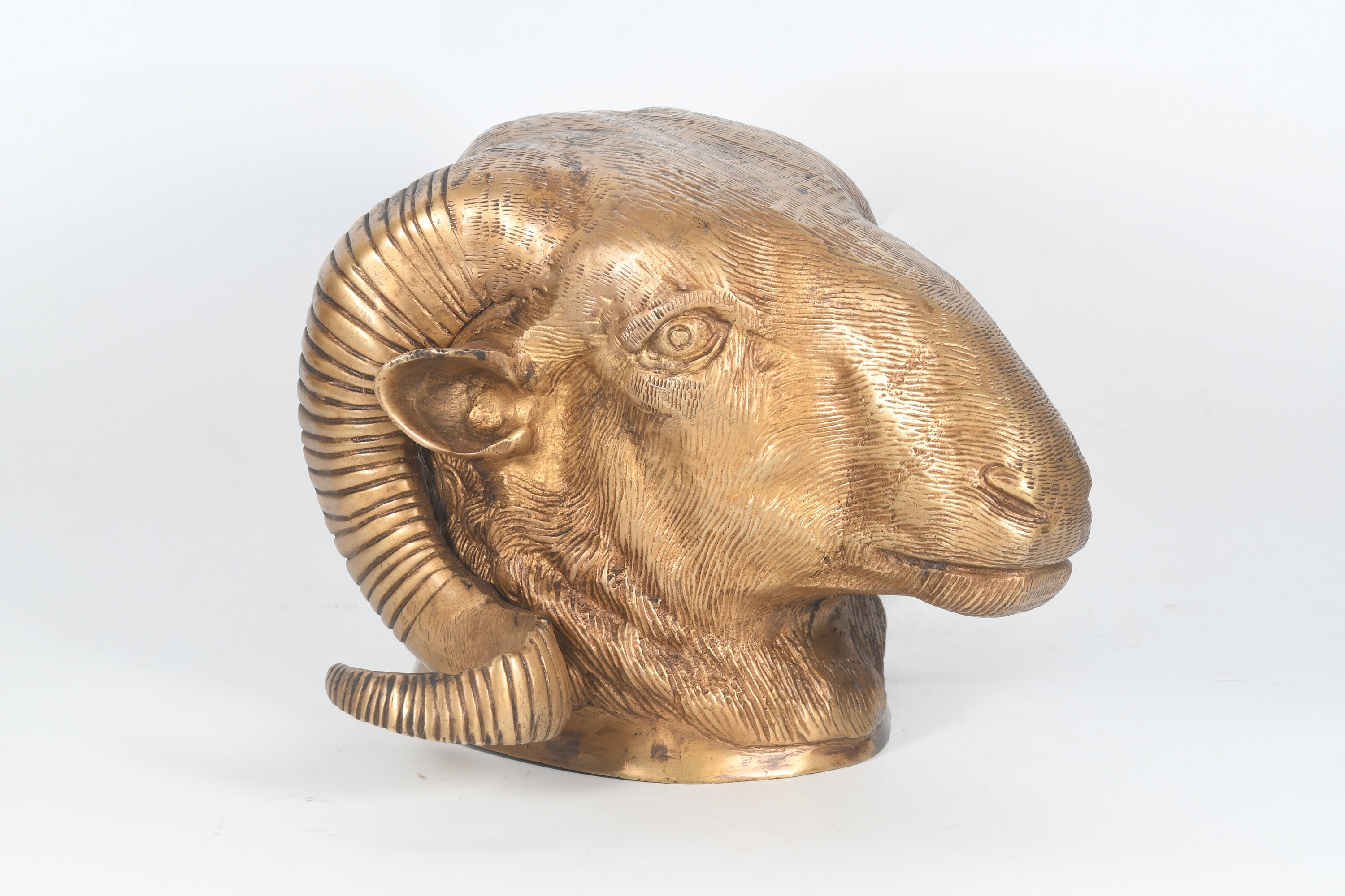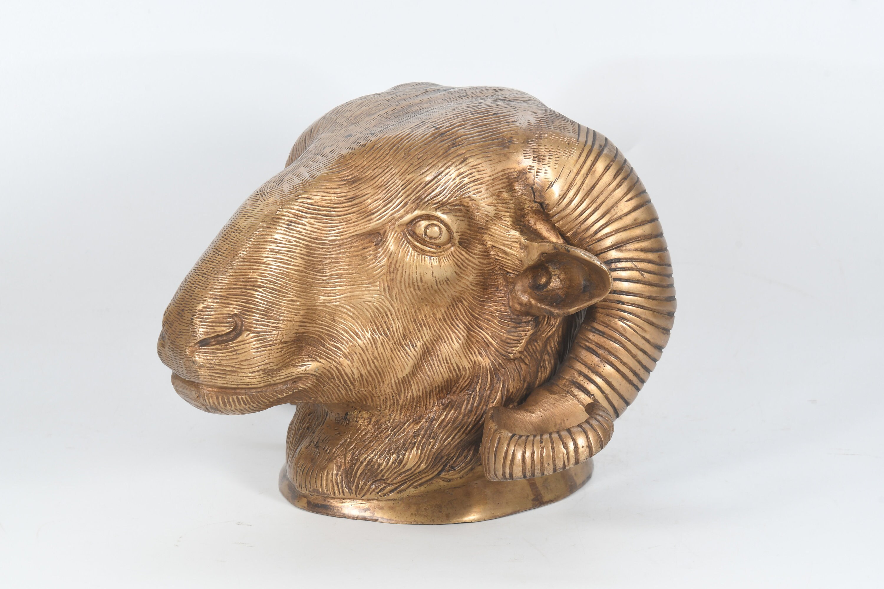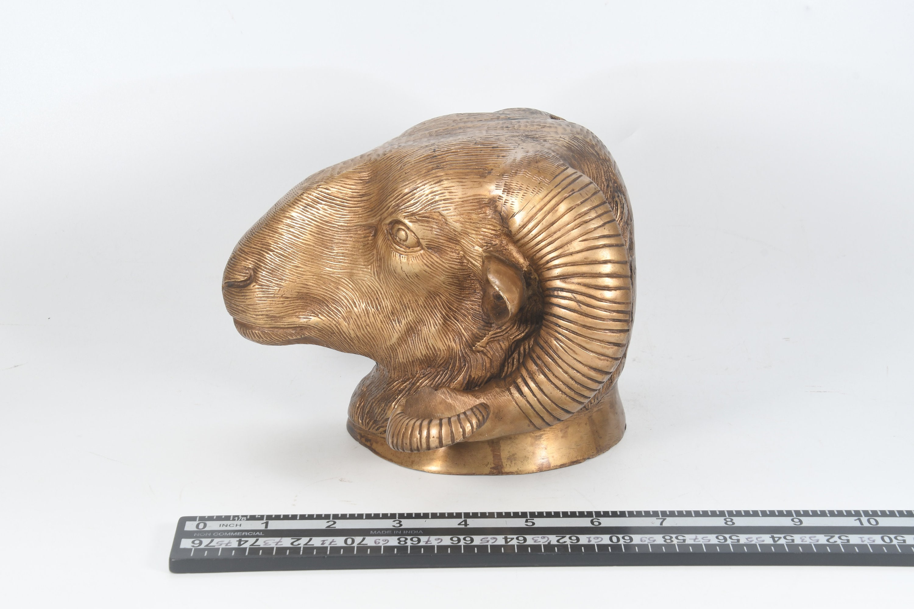 Antique Handcarved Brass Sheep Head Vintage Wall Home Decor Tribal Art Nepal