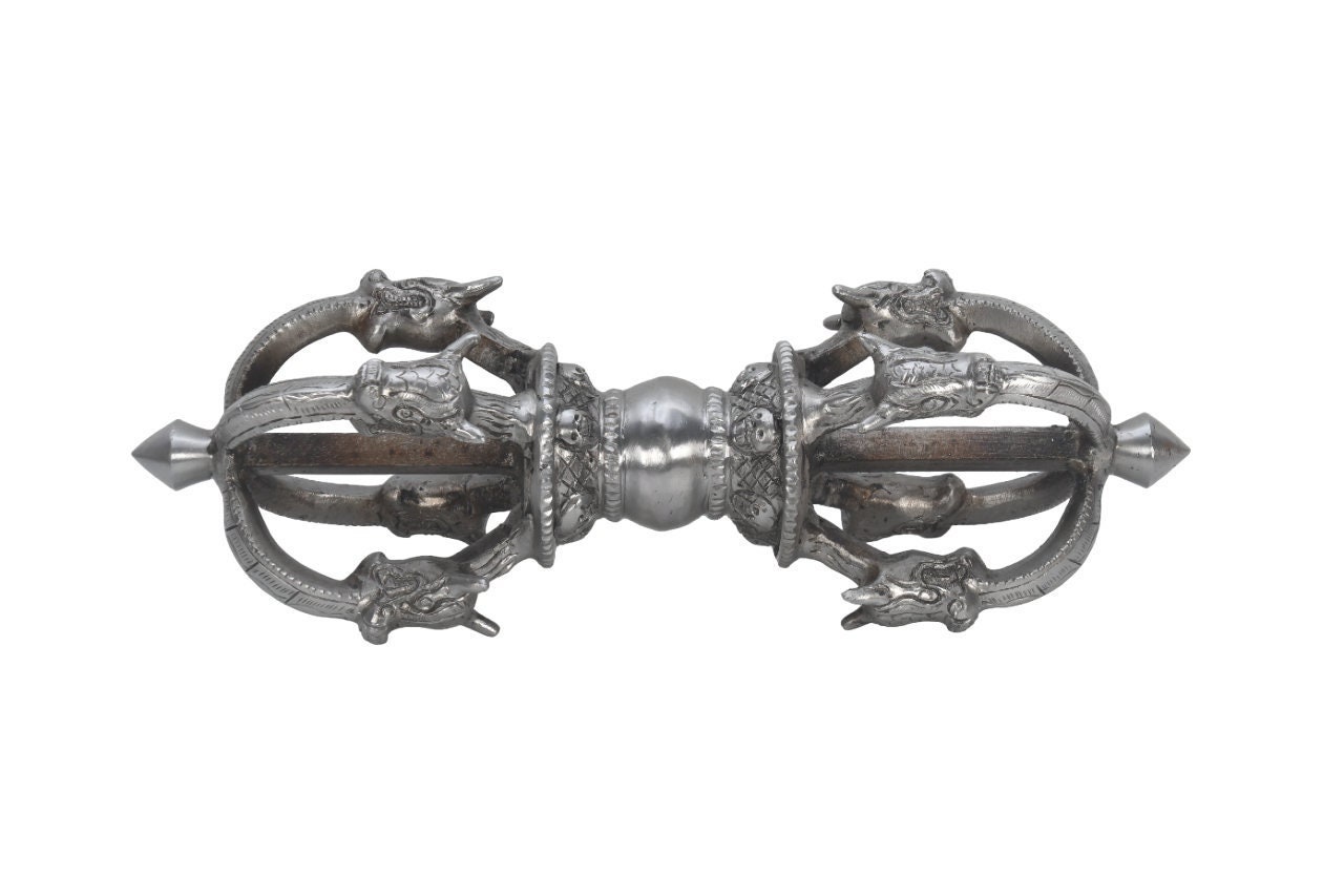 Vajra is a Sanskrit word meaning both thunderbolt and diamond. It is a weapon that is used as a ritual object to symbolize both the properties of a diamond (indestructibility) and a thunderbolt (irresistible force). The five-pronged vajra is the most commonly seen vajra.