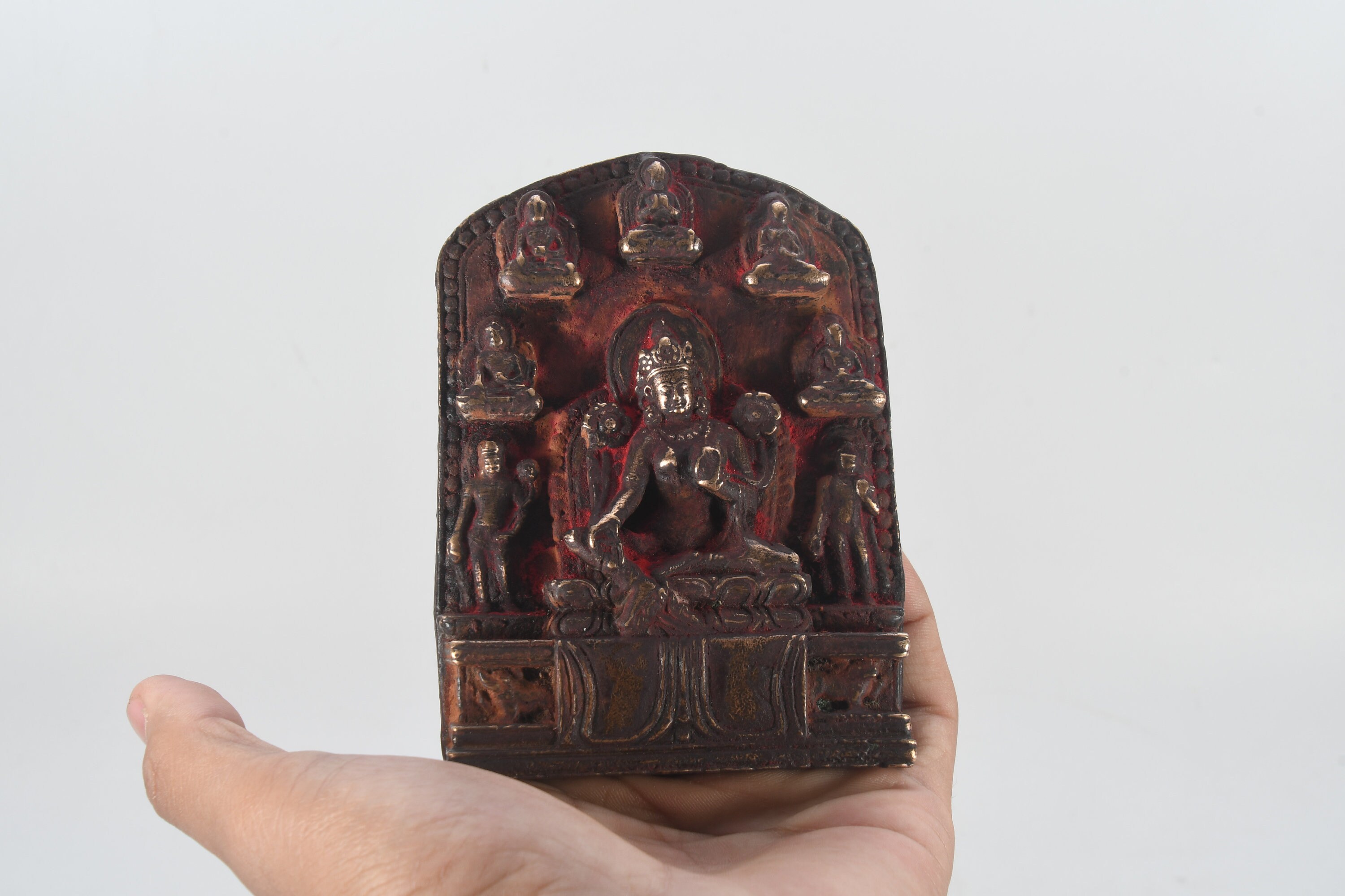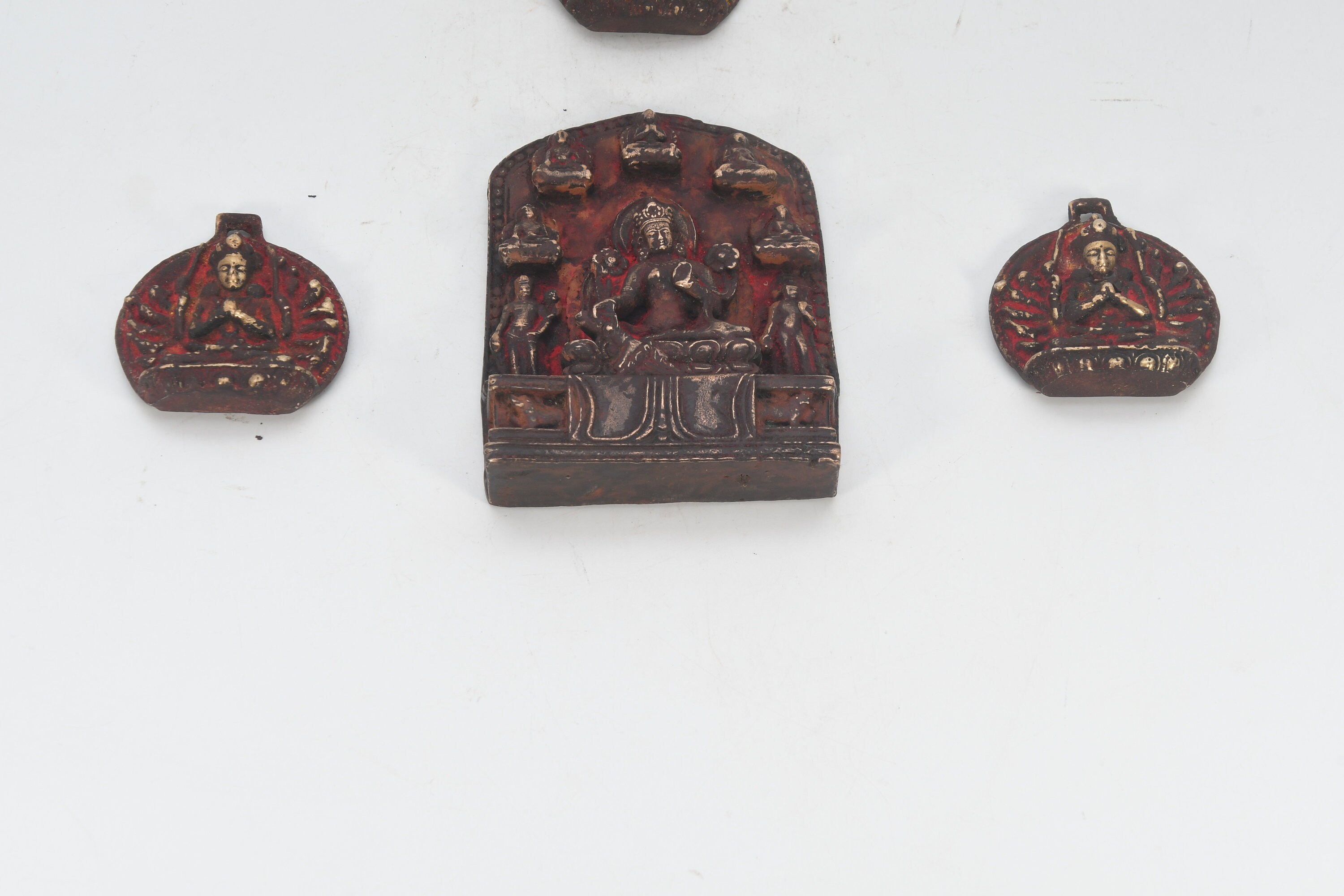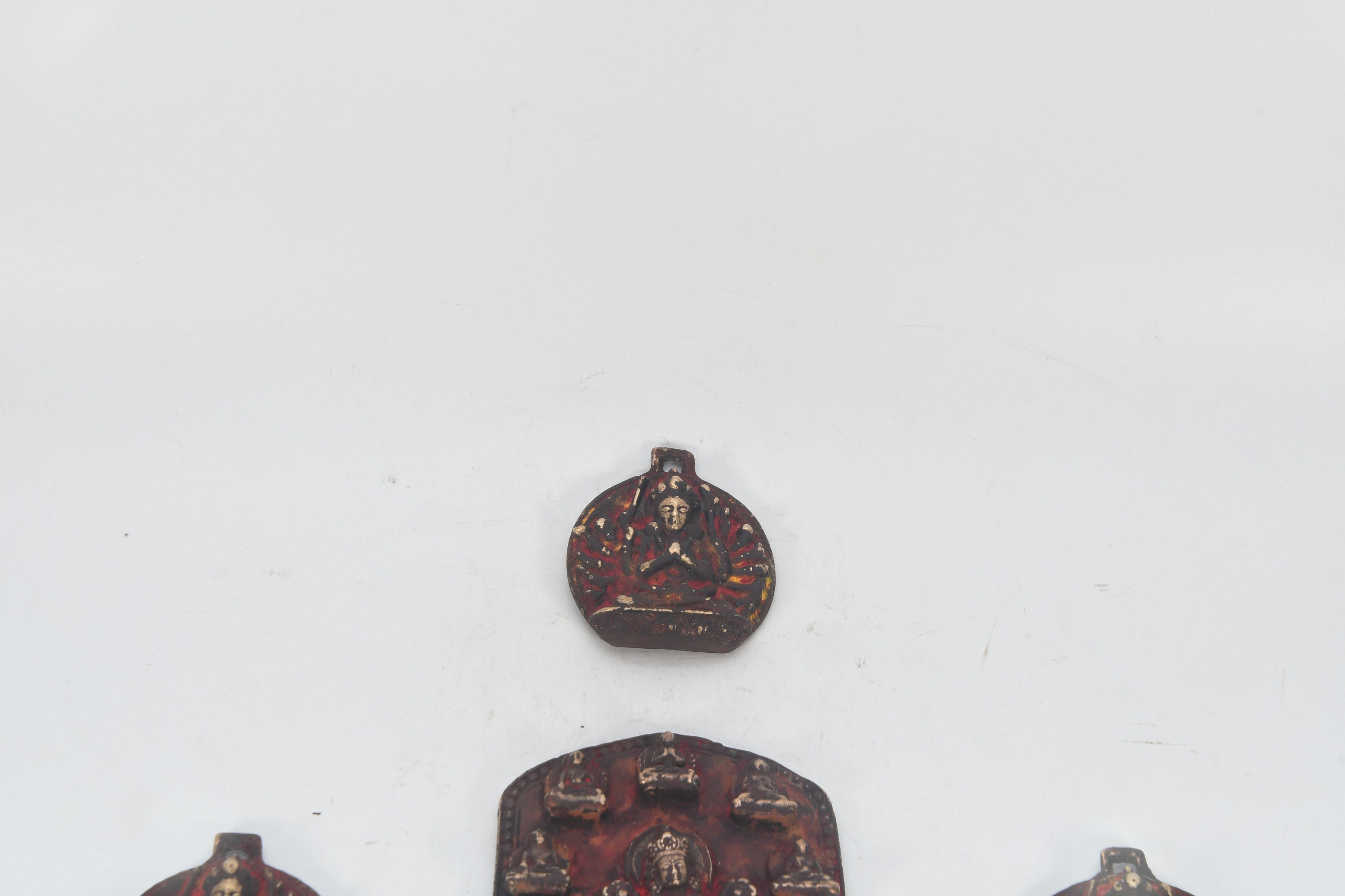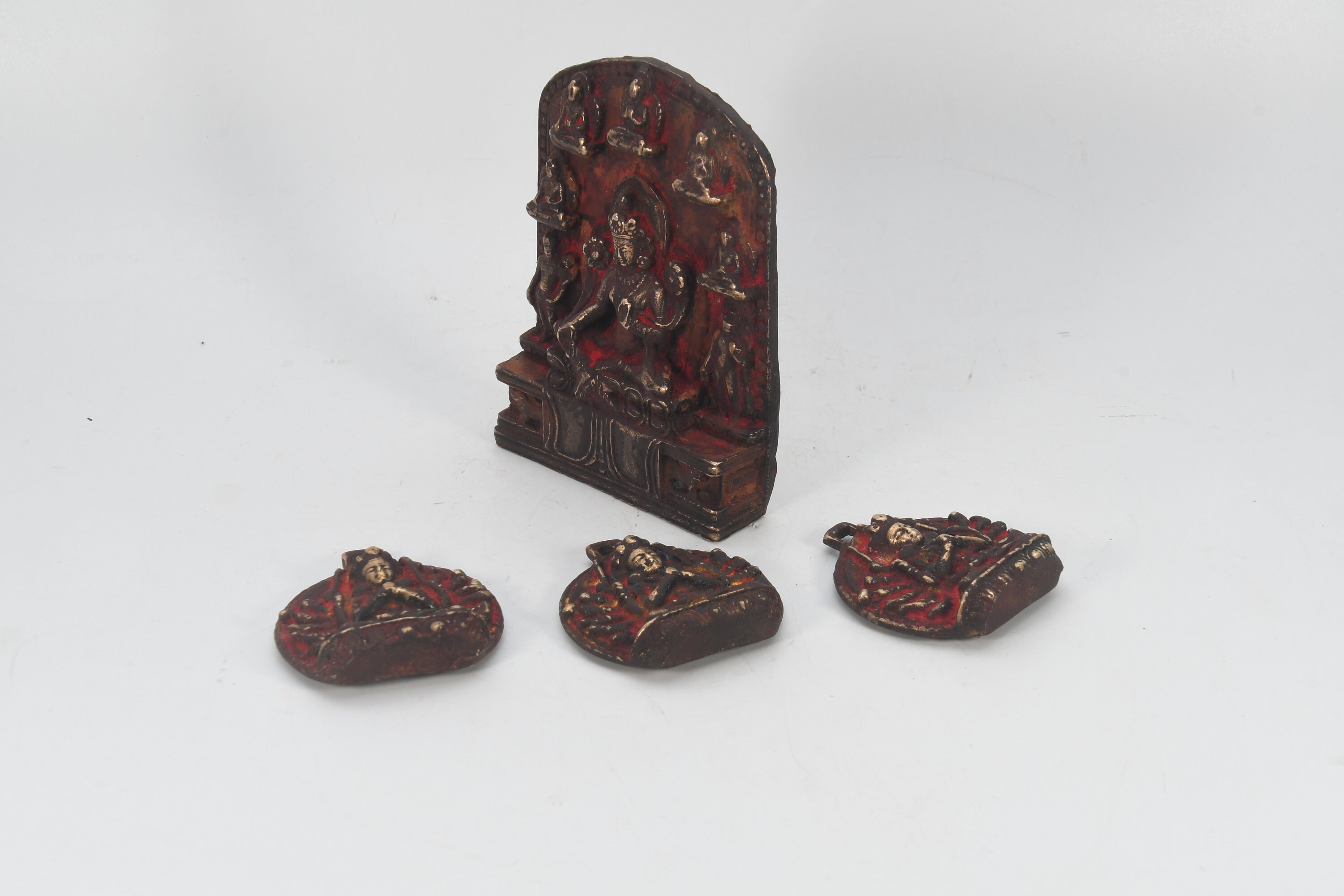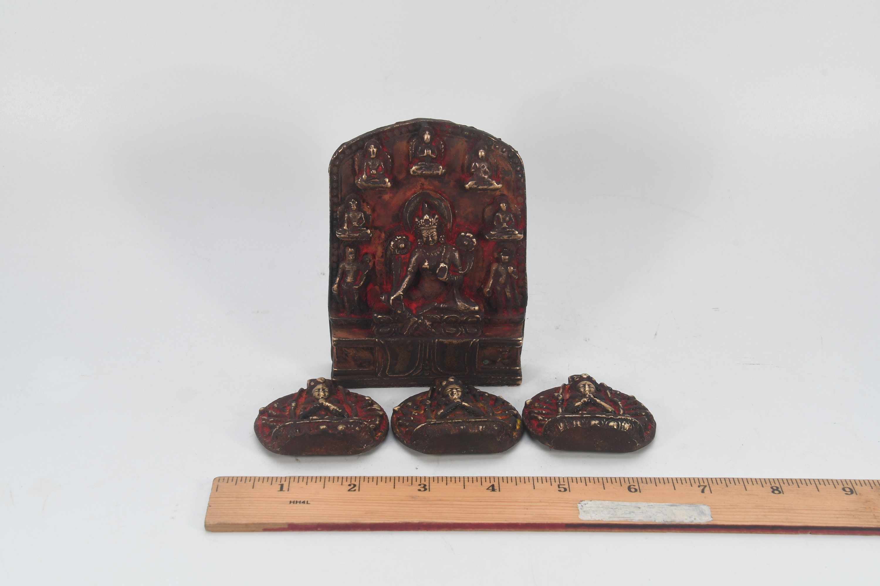 Antique Handcarved Brass Seven God with three mini Sculpture Figurine Decor Nepal