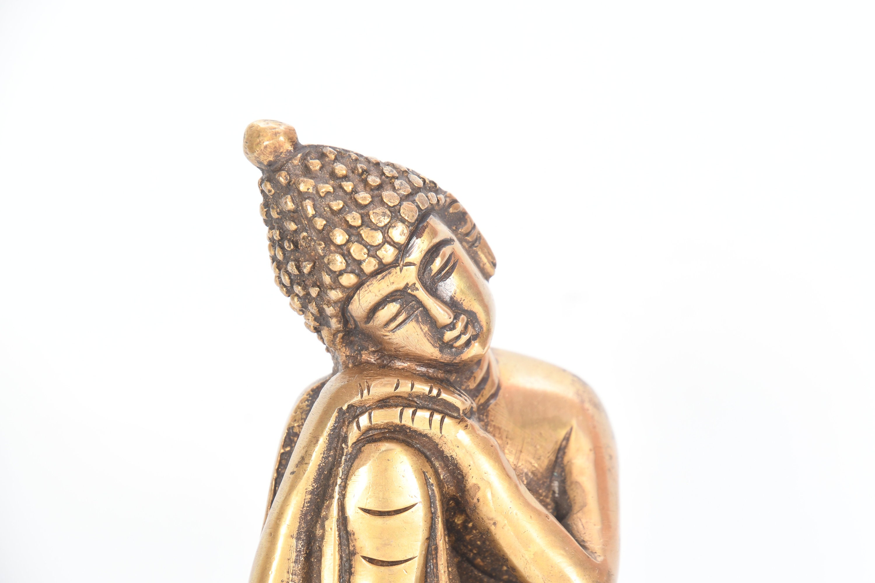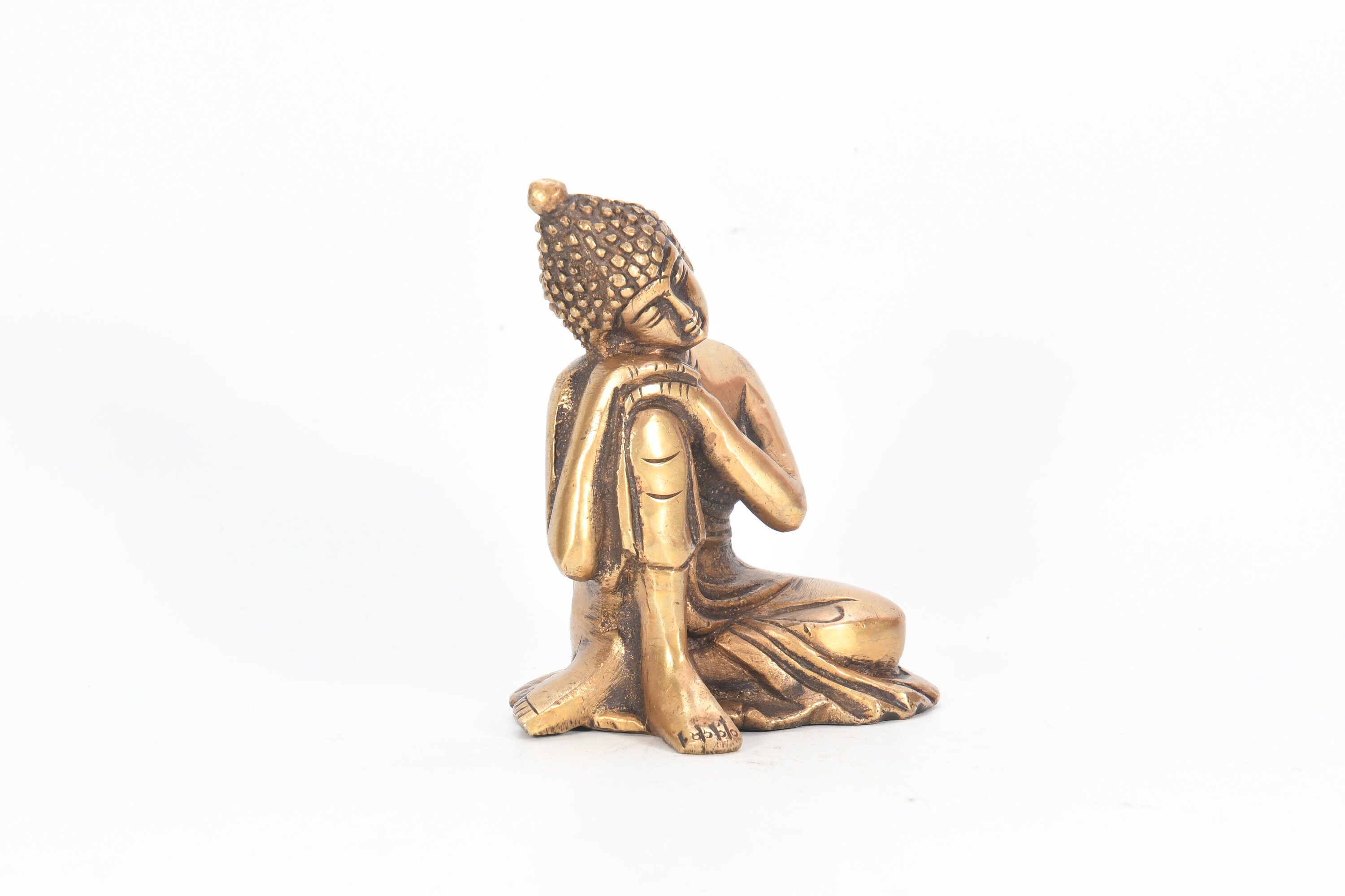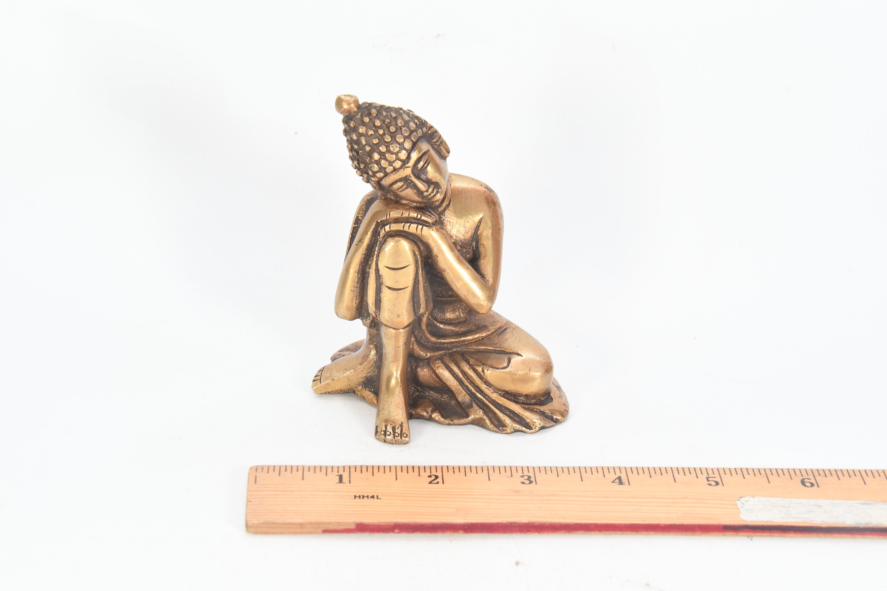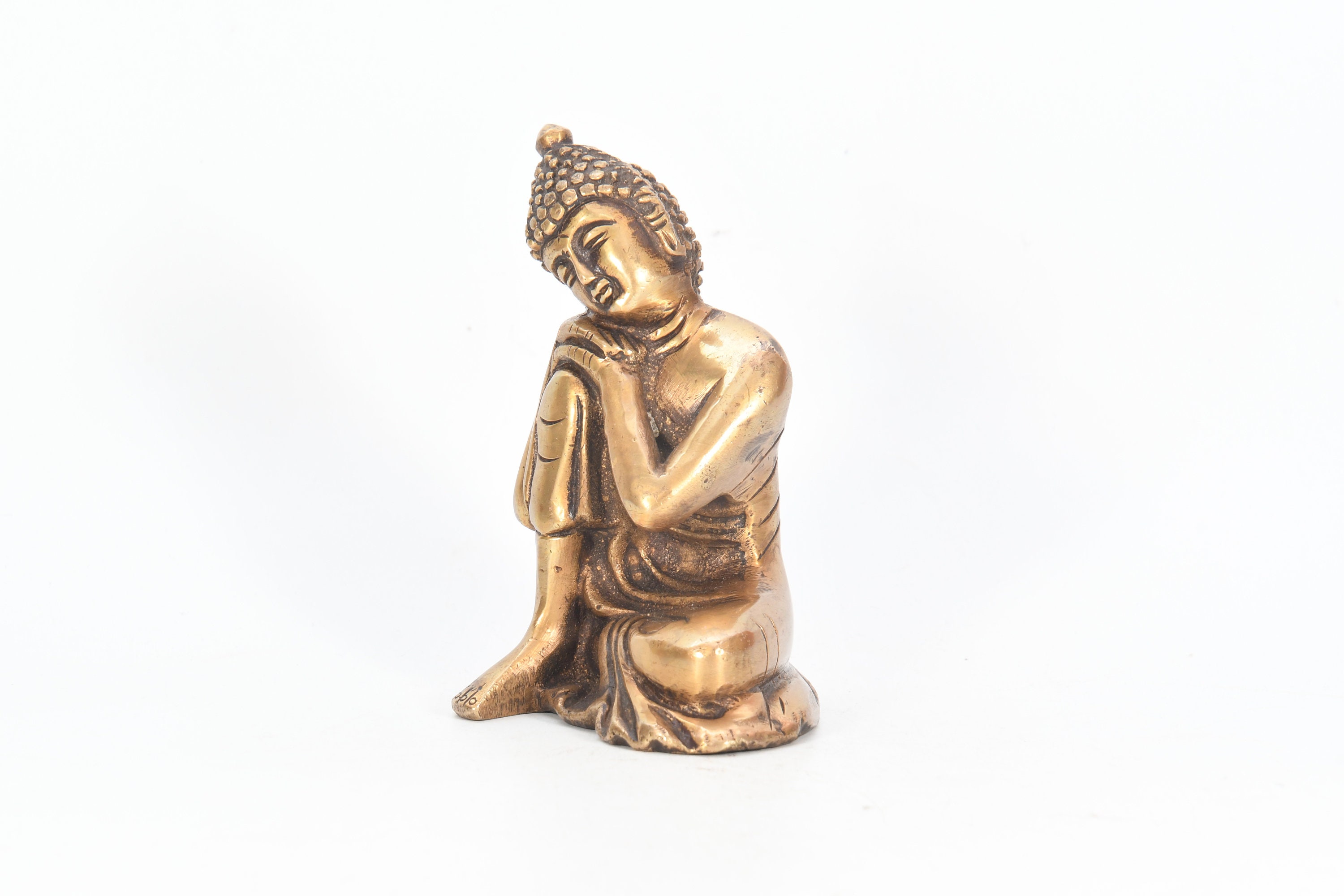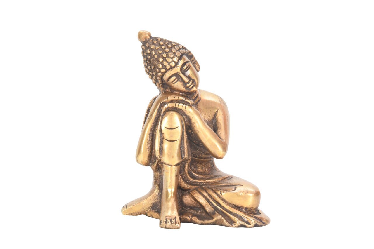 Handcarved Brass Sleeping Buddha Statue, Meditation Art
