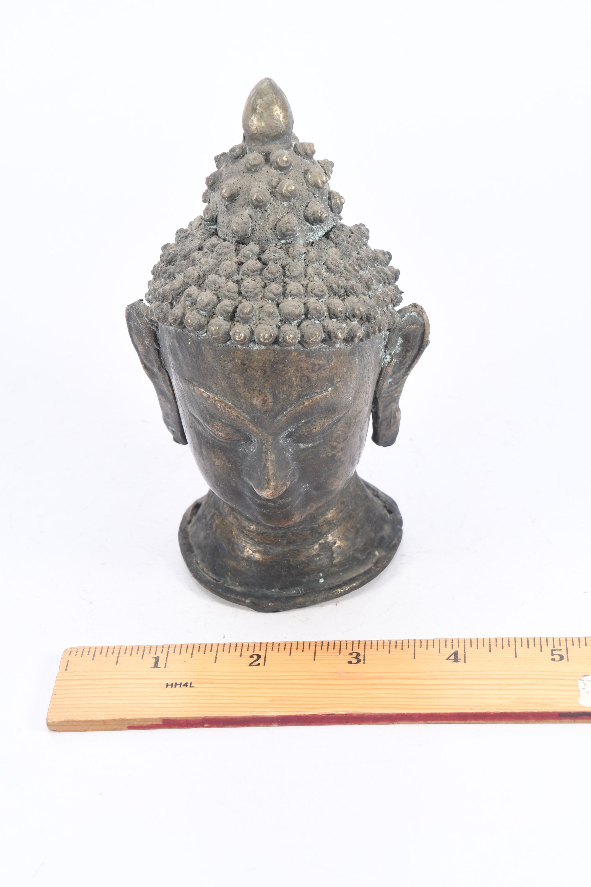 Brass Buddha Head Statue, Carved Tibetan Sculpture, Home Decor