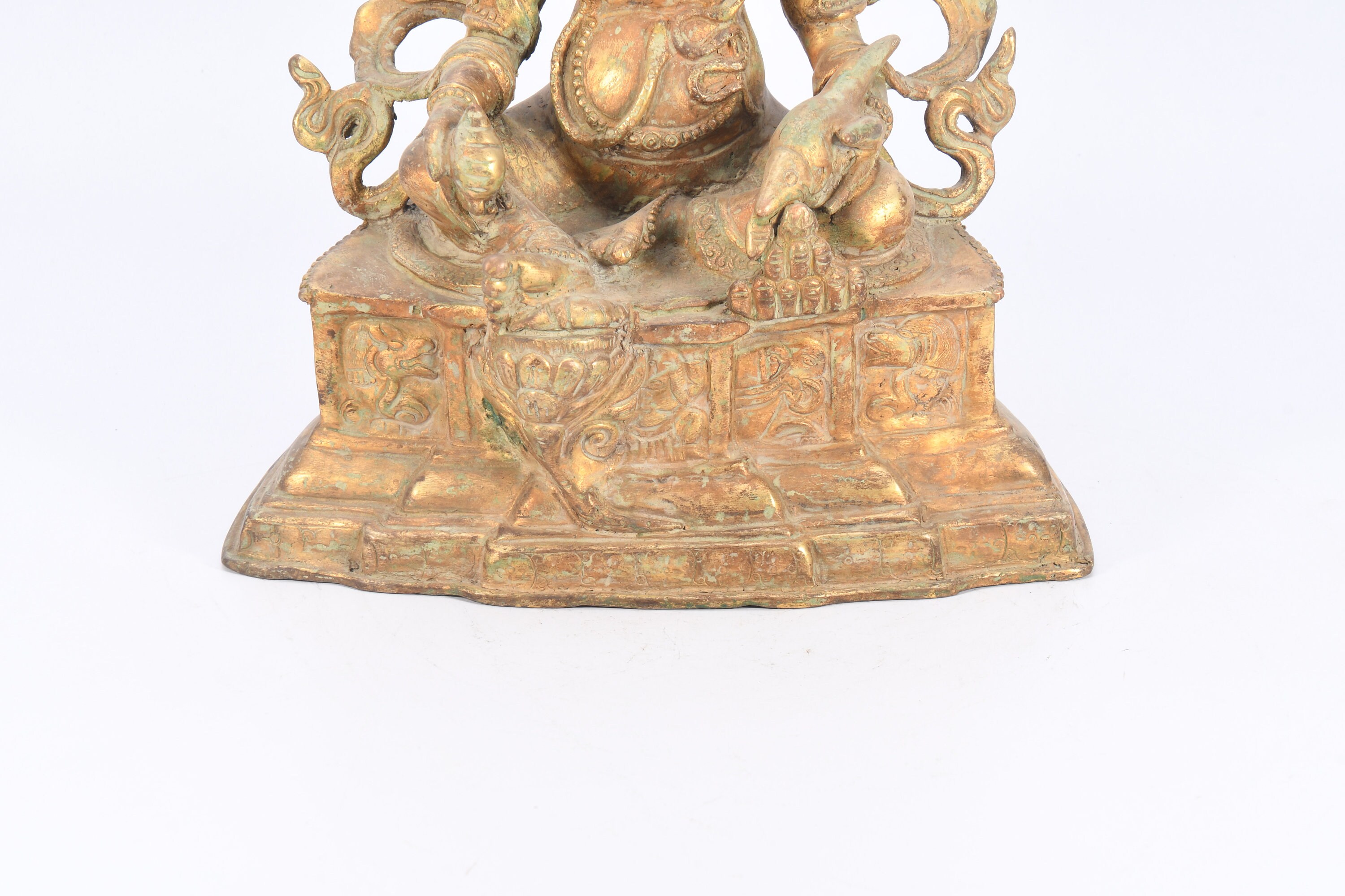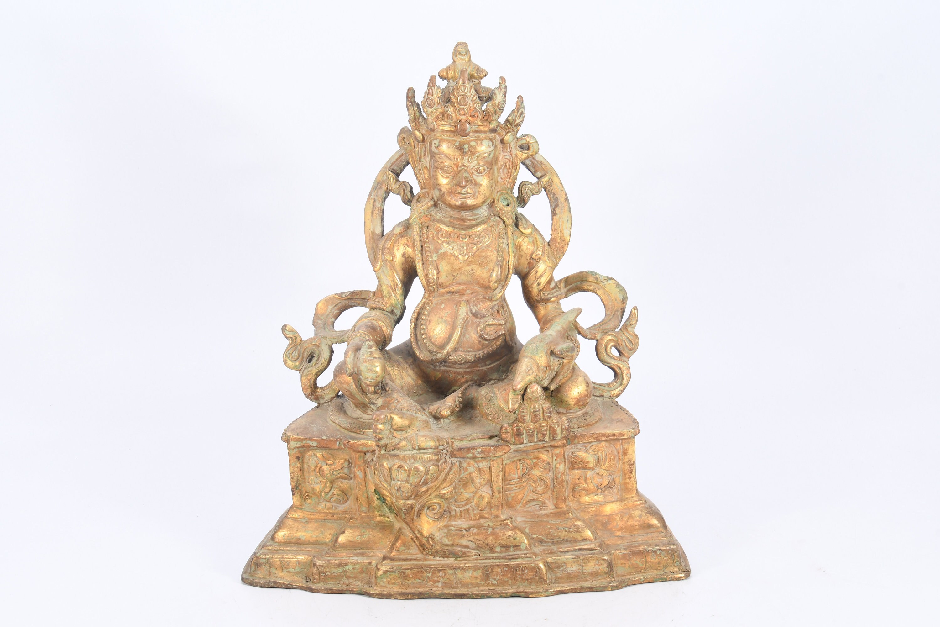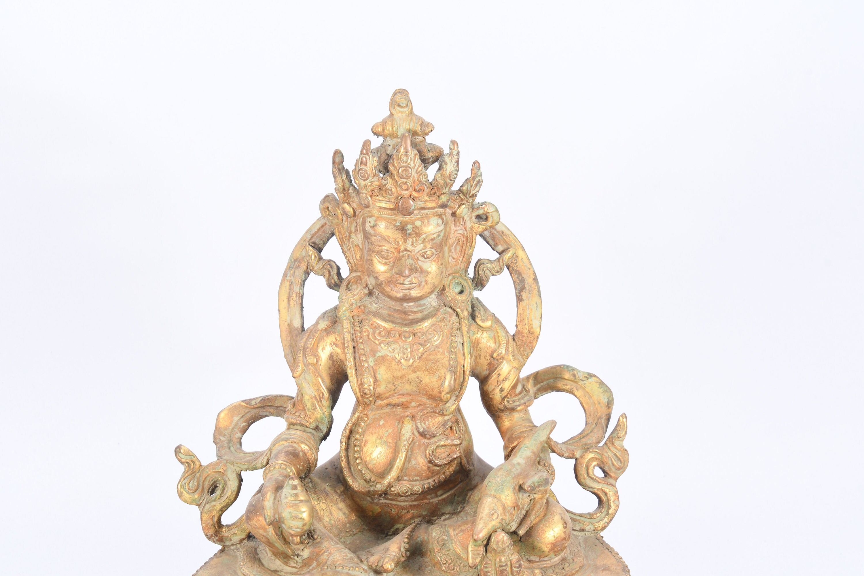 The Yellow Jambhala is considered the most popular and powerful of the Wealth Gods. He is the emanation of Buddha Ratnasambhava. He can remove poverty within the six realms, increasing virtues, life span, and wisdom.