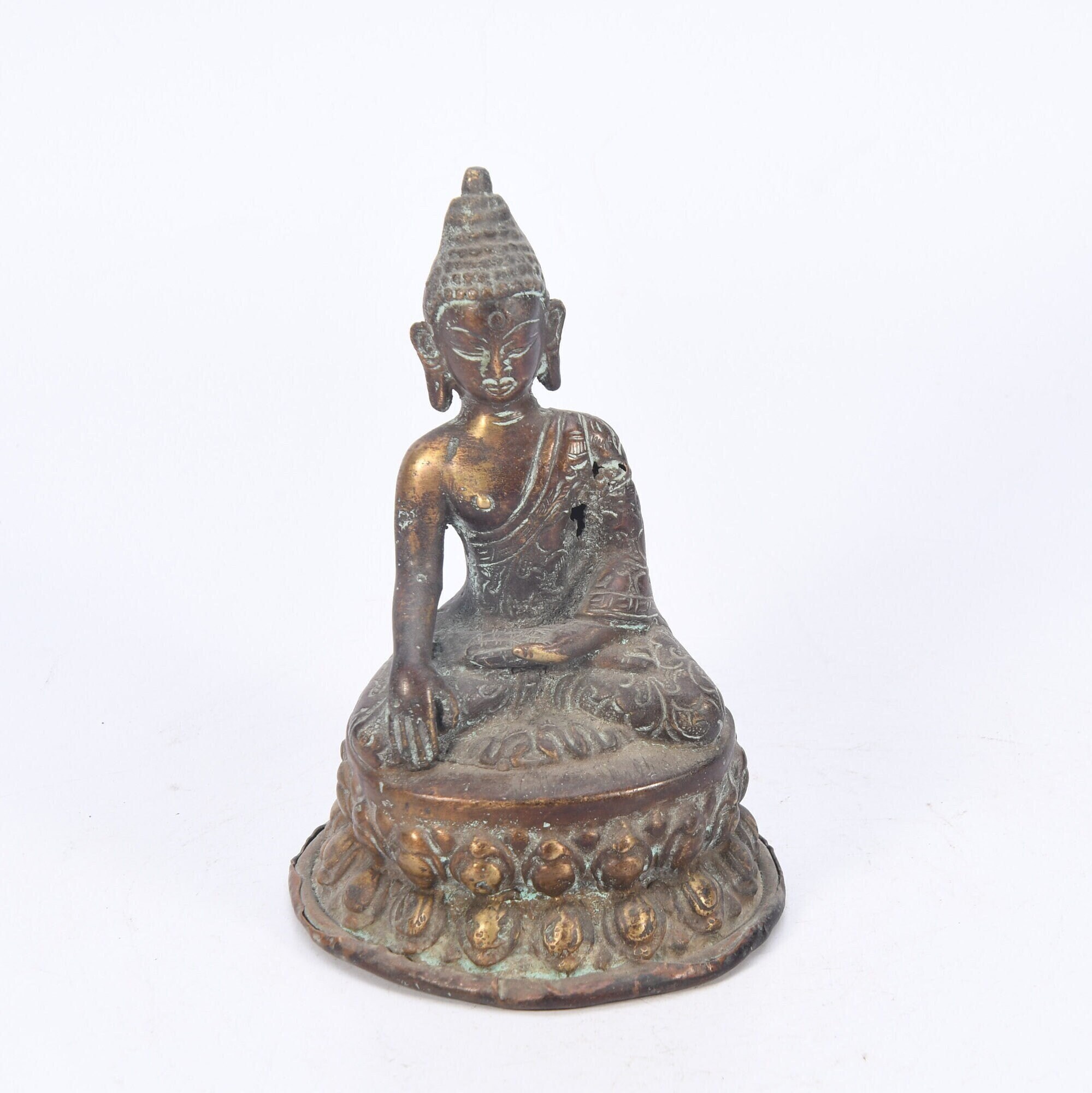 Bronze Carved Sitting Buddha Sculpture Handmade Traditional Ethnic Crafts and Collectibles Nepal