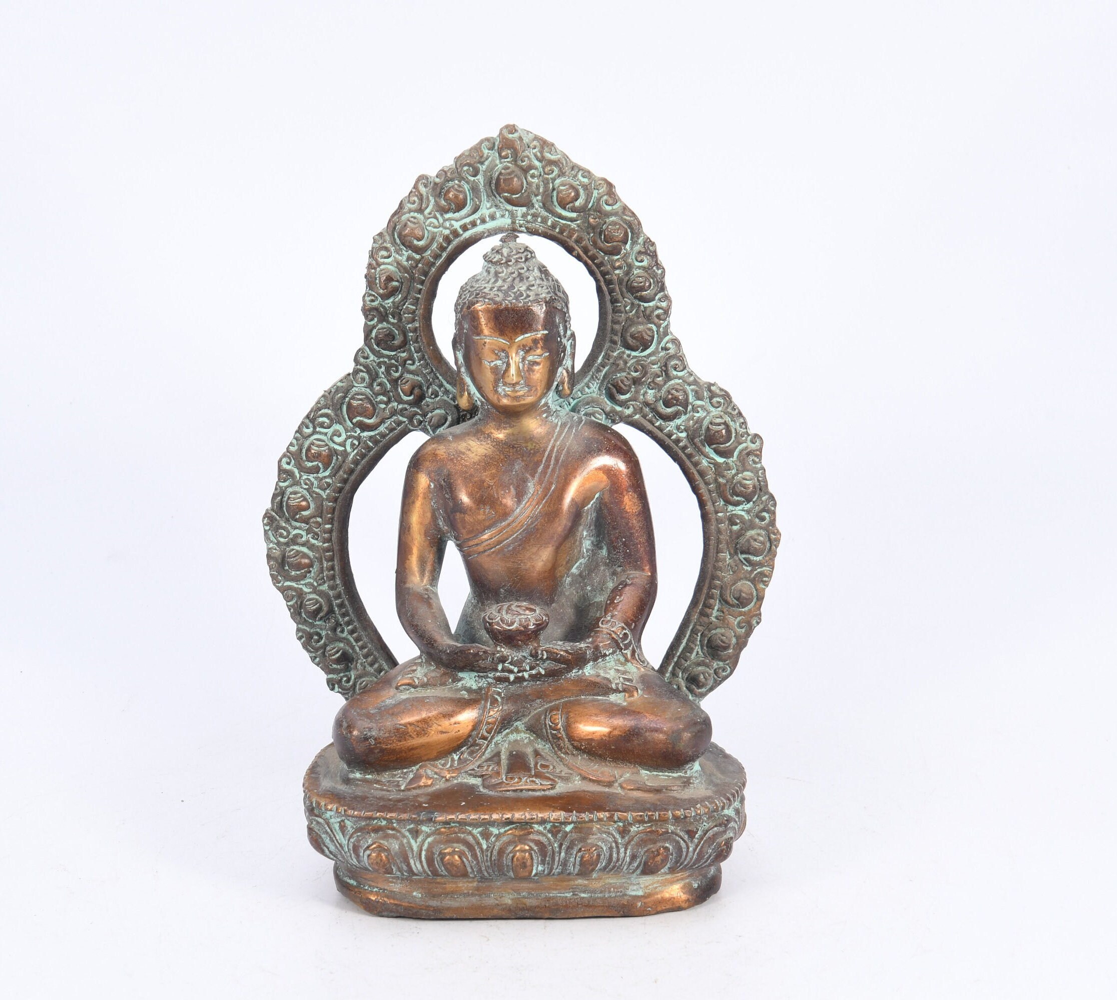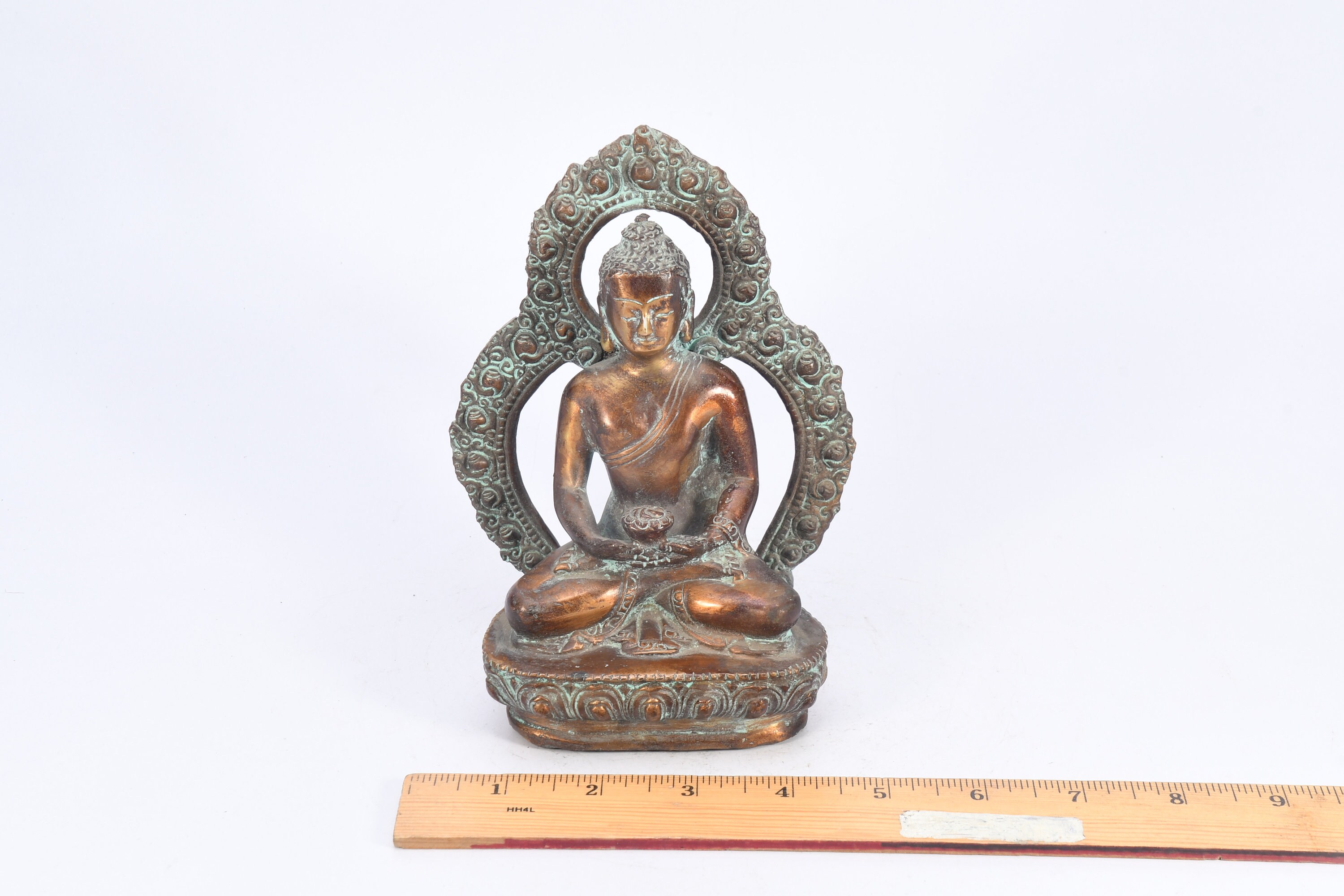 Copper Crafted Buddhism Antique Meditating Buddha Sculpture Home Decorative Blessing Peace Tibetan Nepal