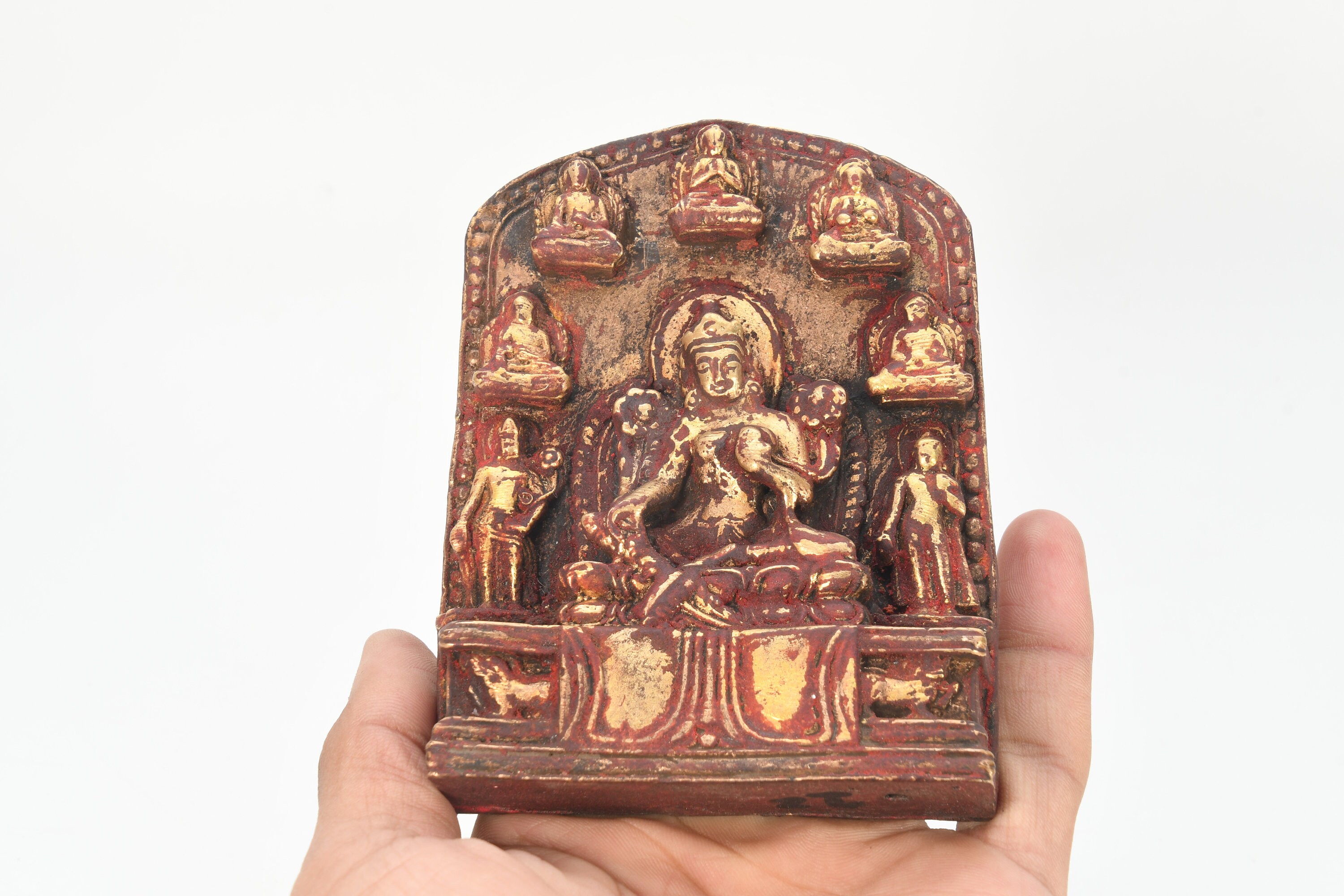 Buddhist Green Tara With Seven Goddess Carved Sculpture Home Decorative Blessing Meditating Nepal