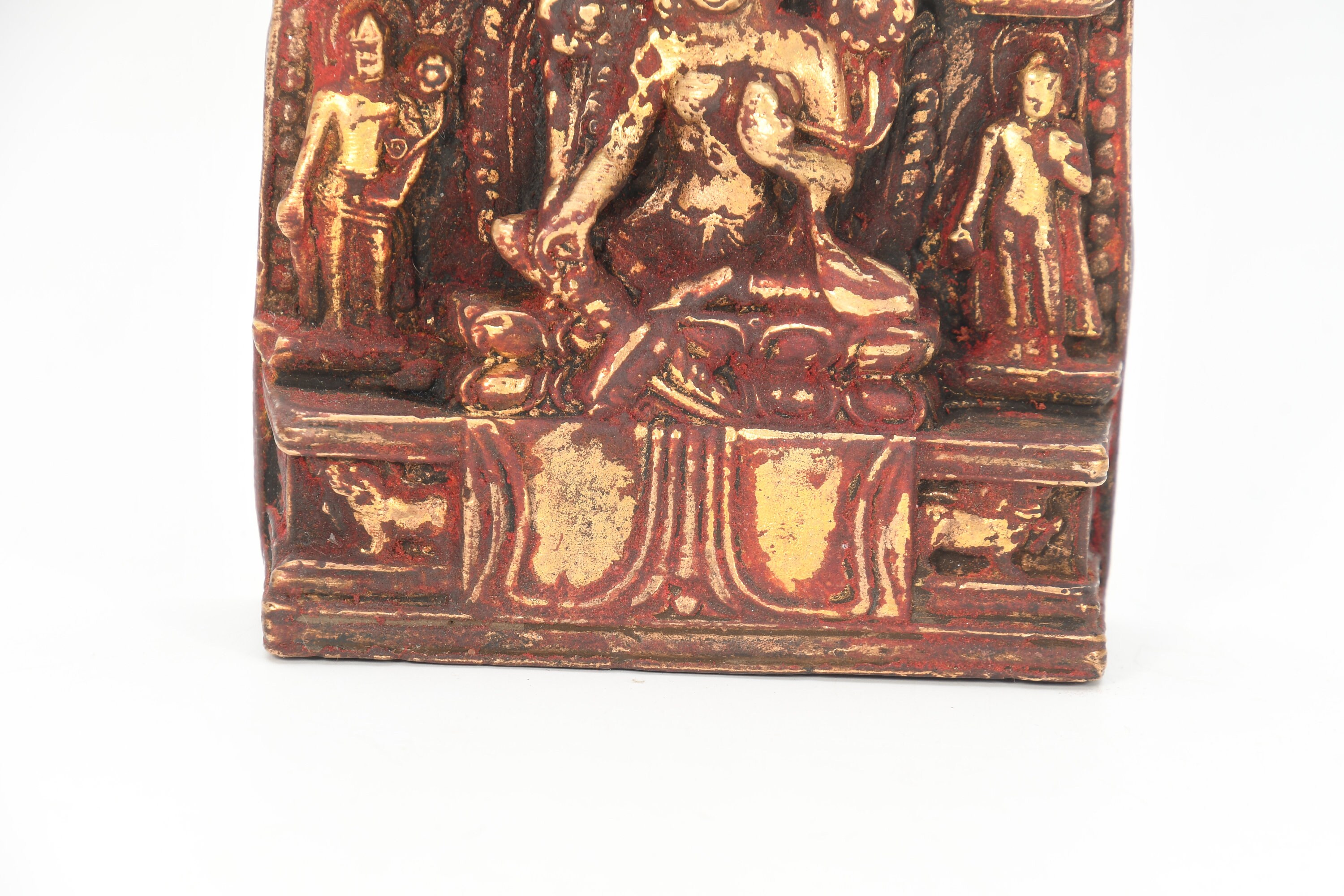 Tibetan Green Tara statue is displaying the Varada mudra with the right hand. This is also known as the “gift-giving” mudra. This venerable mudra provides further assurances to her devotees that she is ready to instantly spring to their assistance. Her left hand is displaying the Abhaya mudra. This mudra is also known as the symbol of protection and fearlessness.