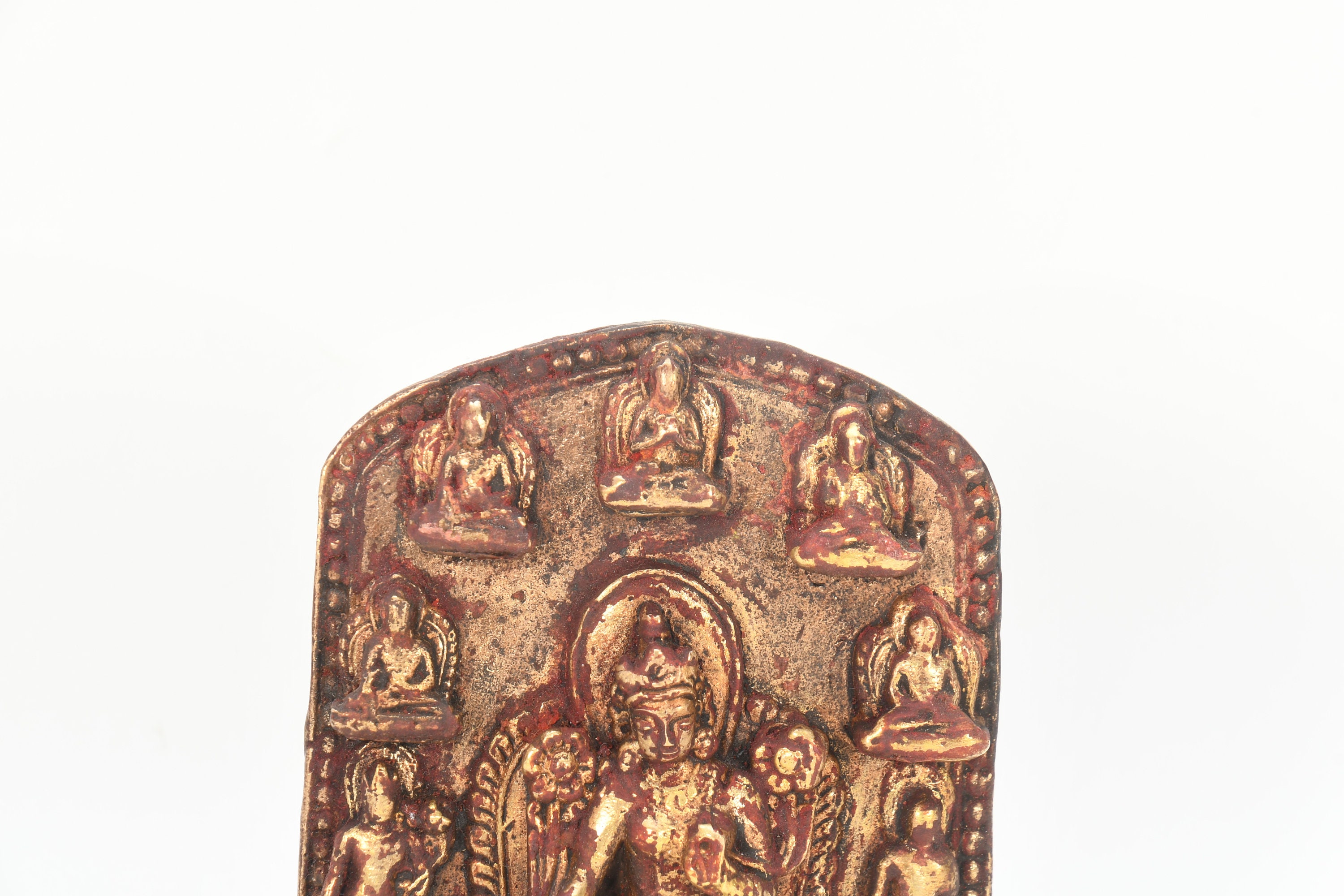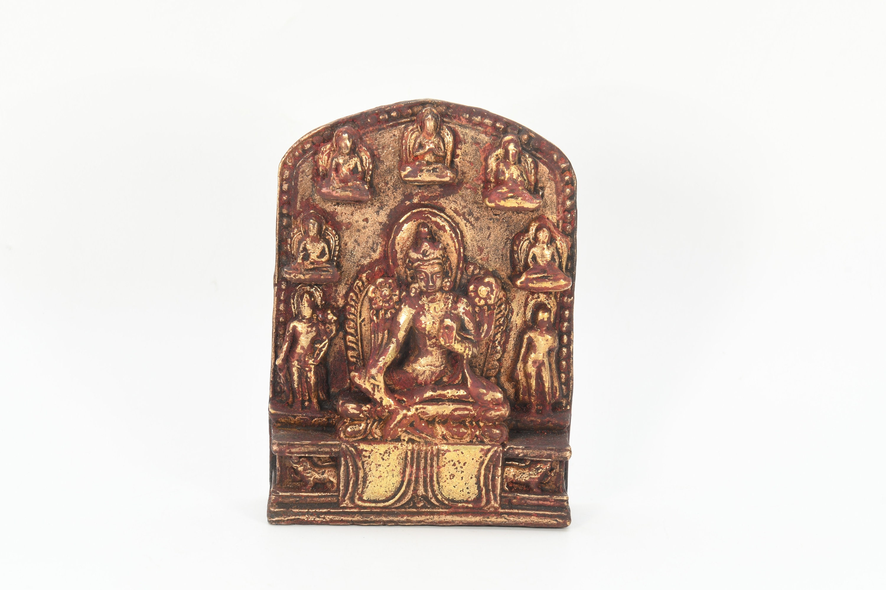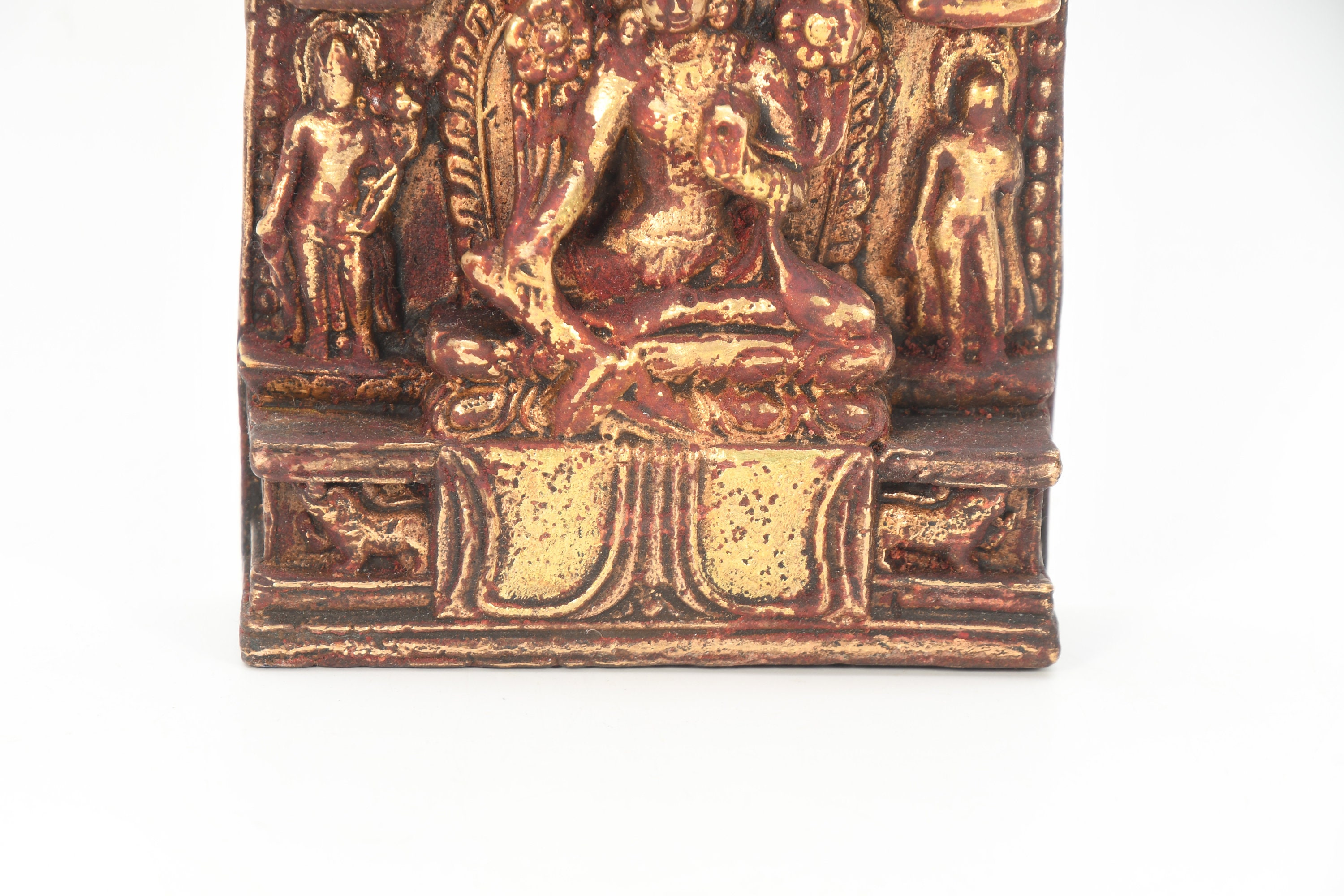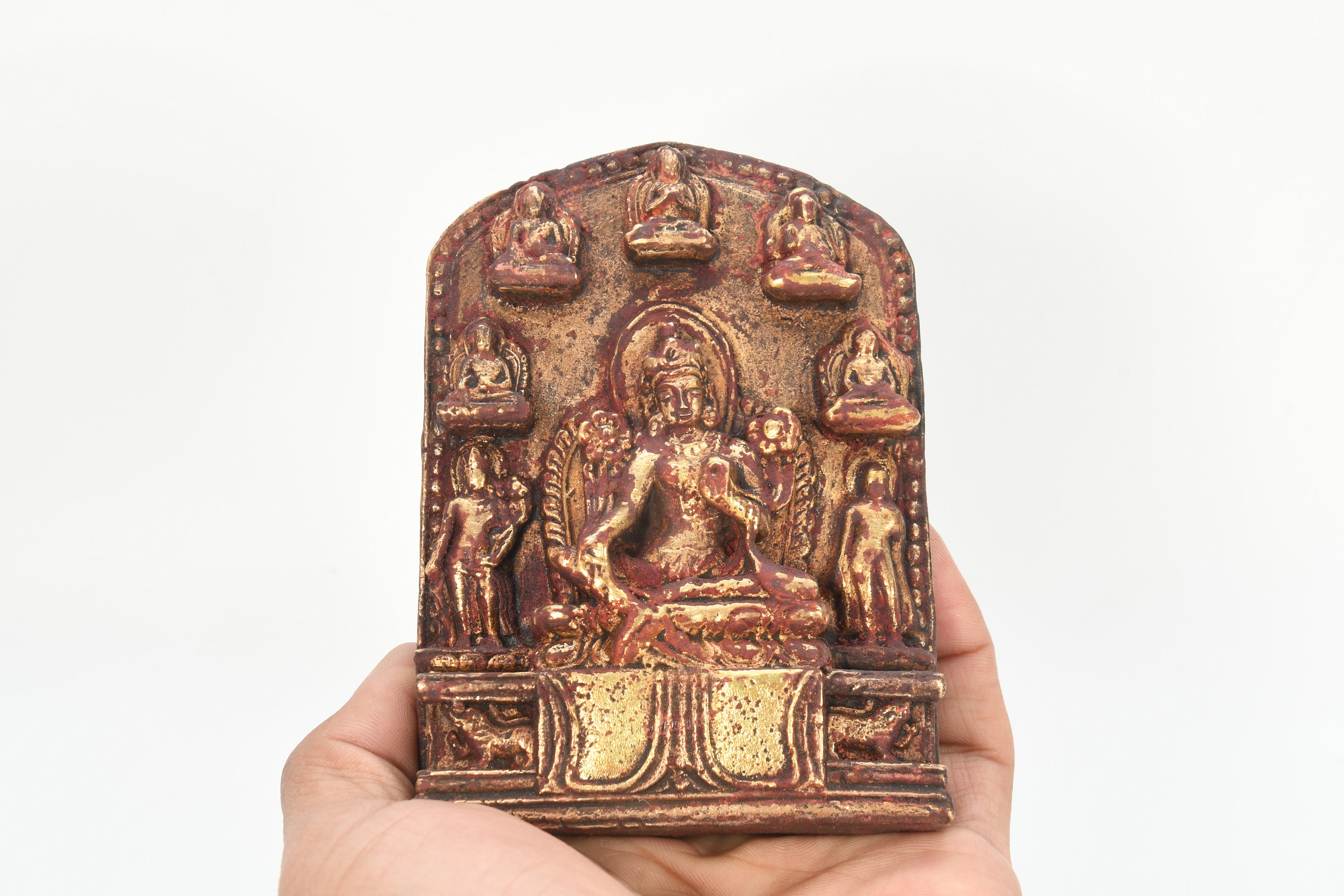Tibetan Green Tara statue is displaying the Varada mudra with the right hand. This is also known as the “gift-giving” mudra. This venerable mudra provides further assurances to her devotees that she is ready to instantly spring to their assistance. Her left hand is displaying the Abhaya mudra. This mudra is also known as the symbol of protection and fearlessness.