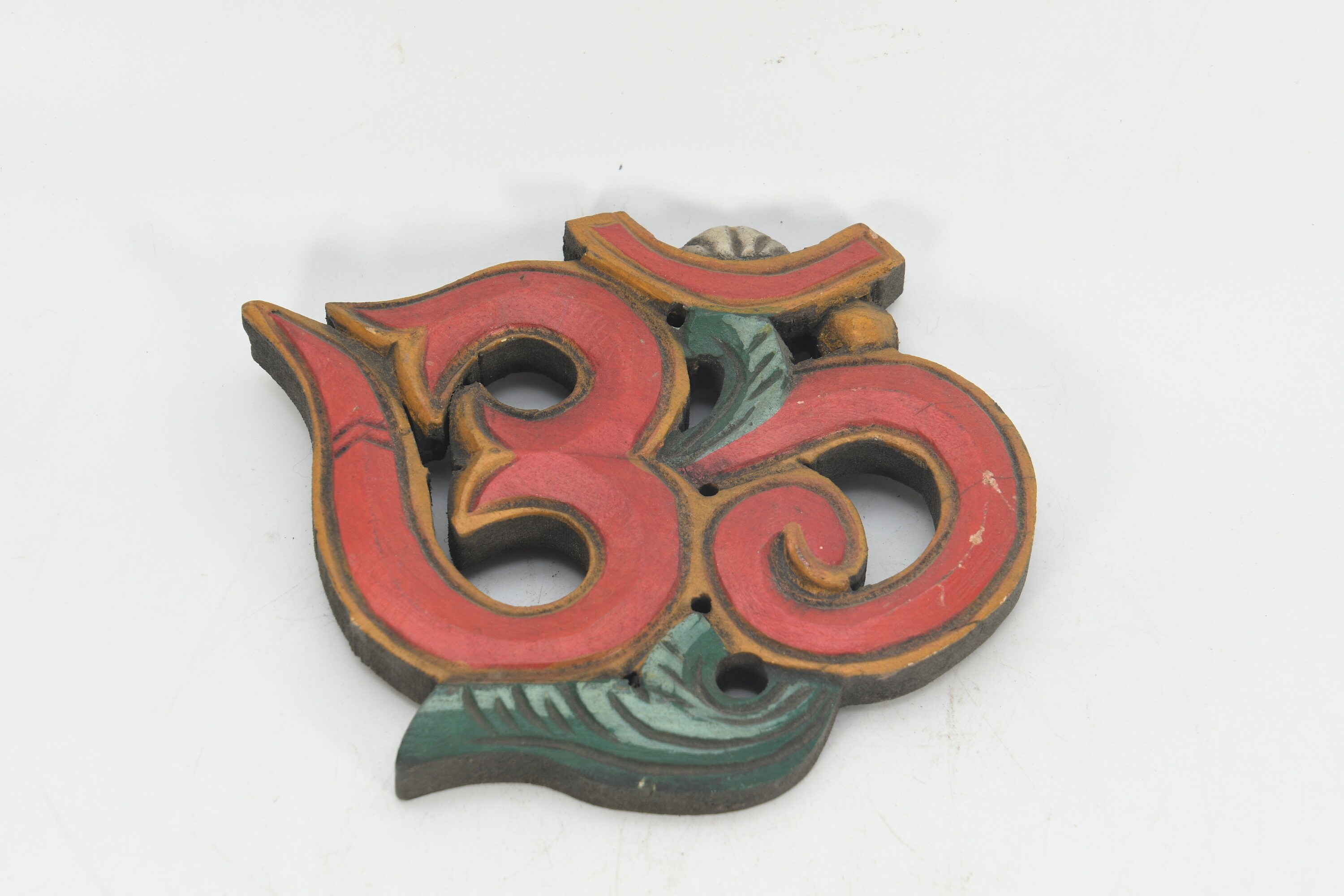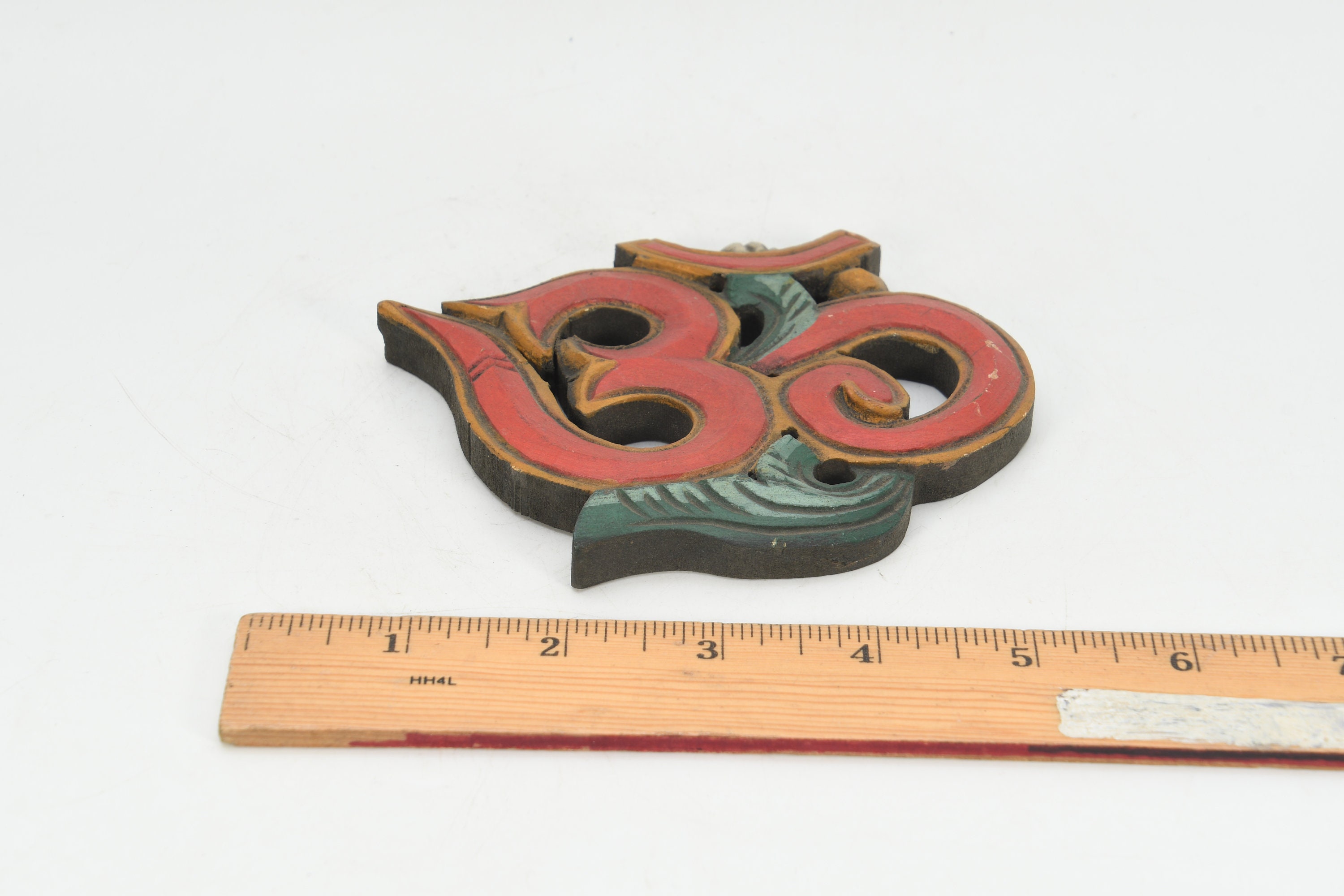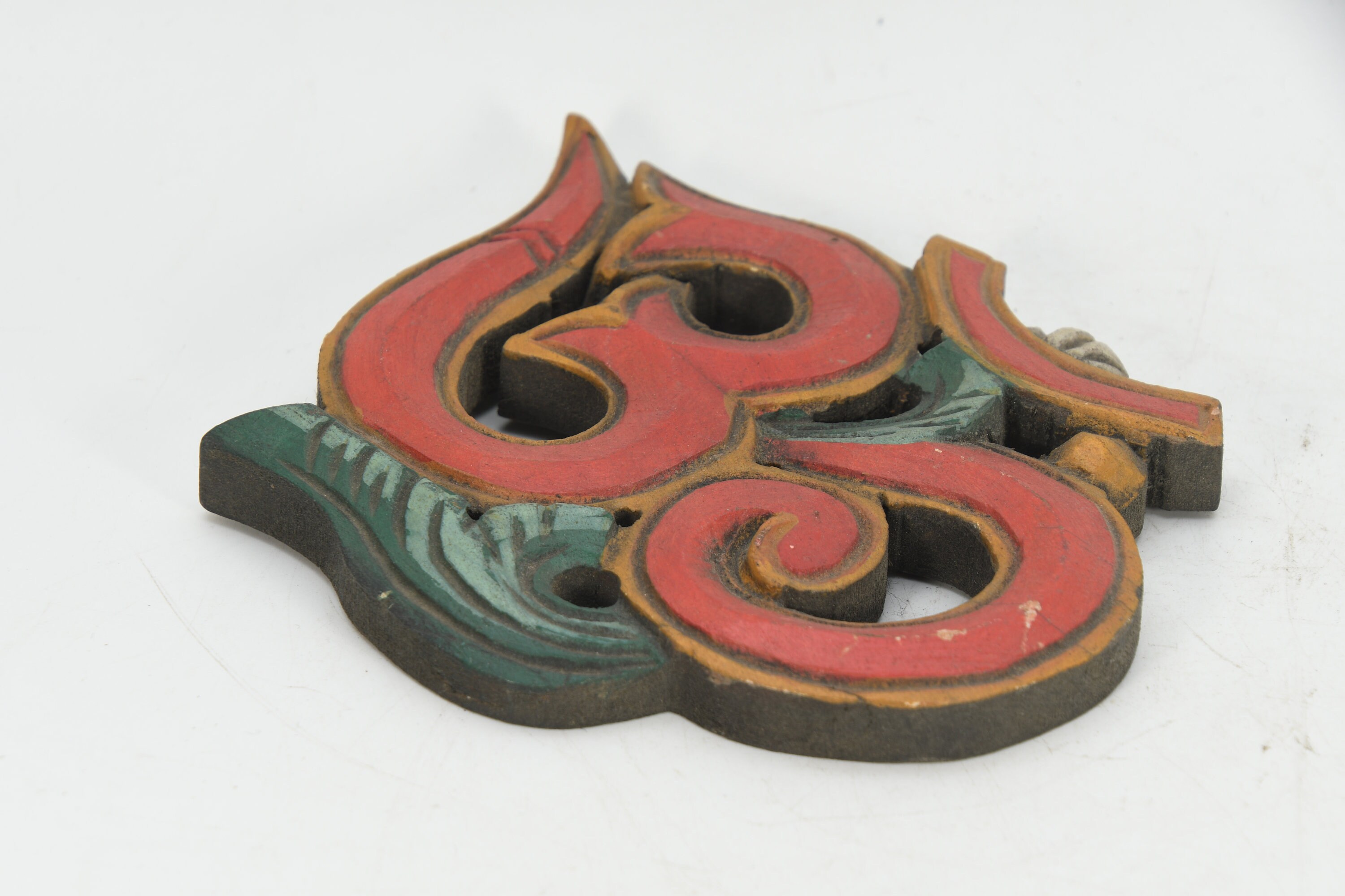 Handcarved Wooden Om Sign, Tibetan Wall Decor