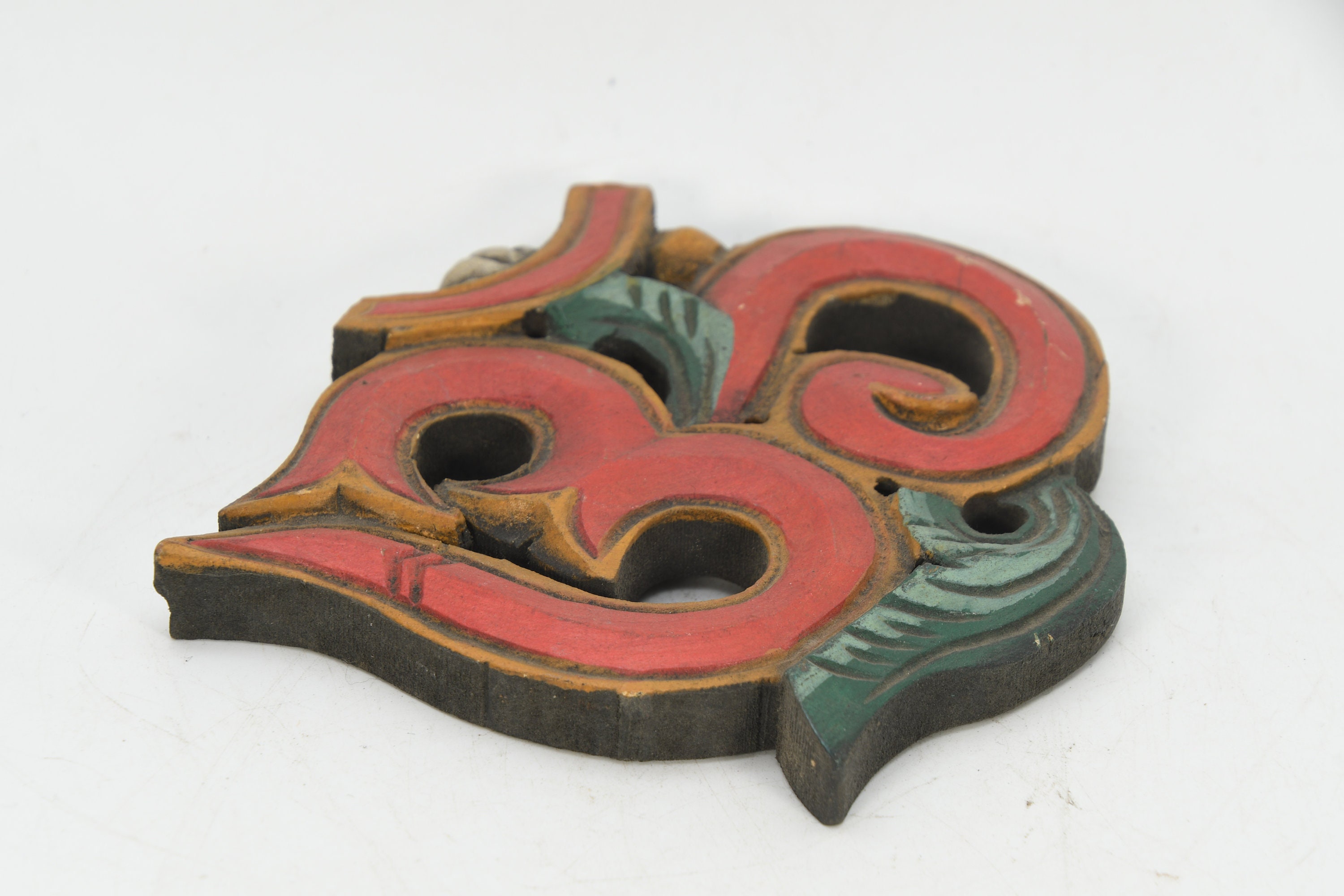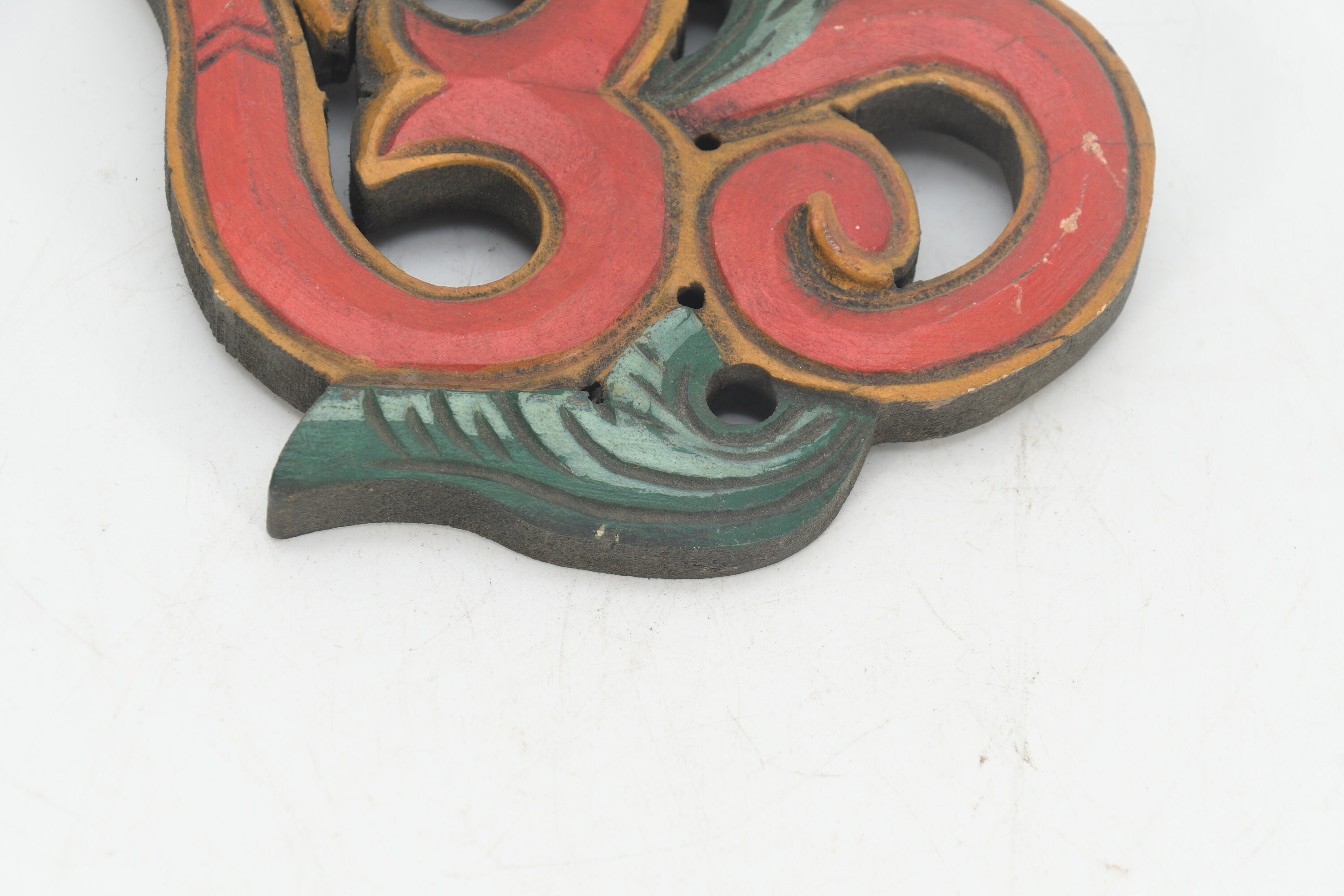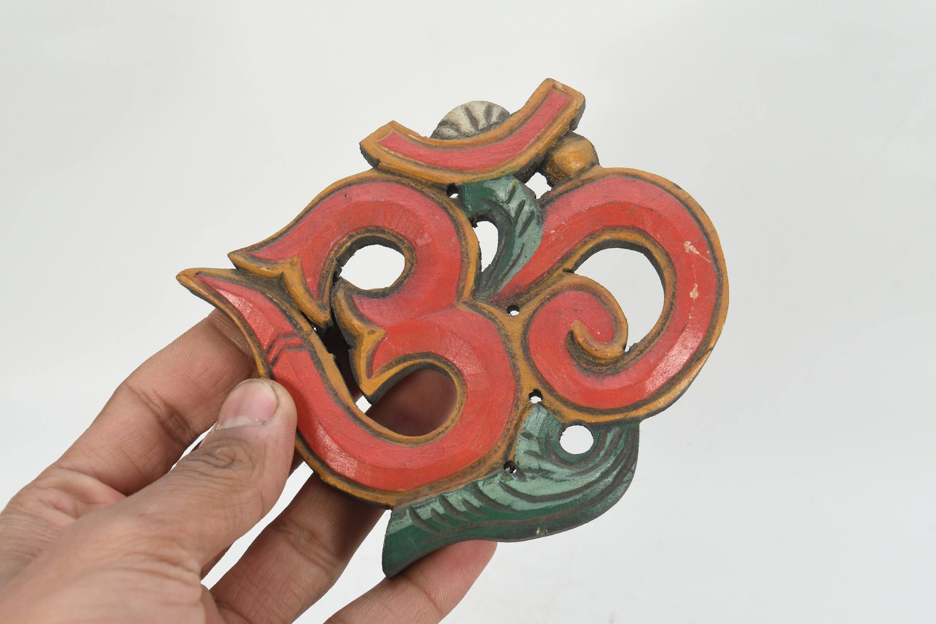 Handcarved Wooden Om Sign, Tibetan Wall Decor