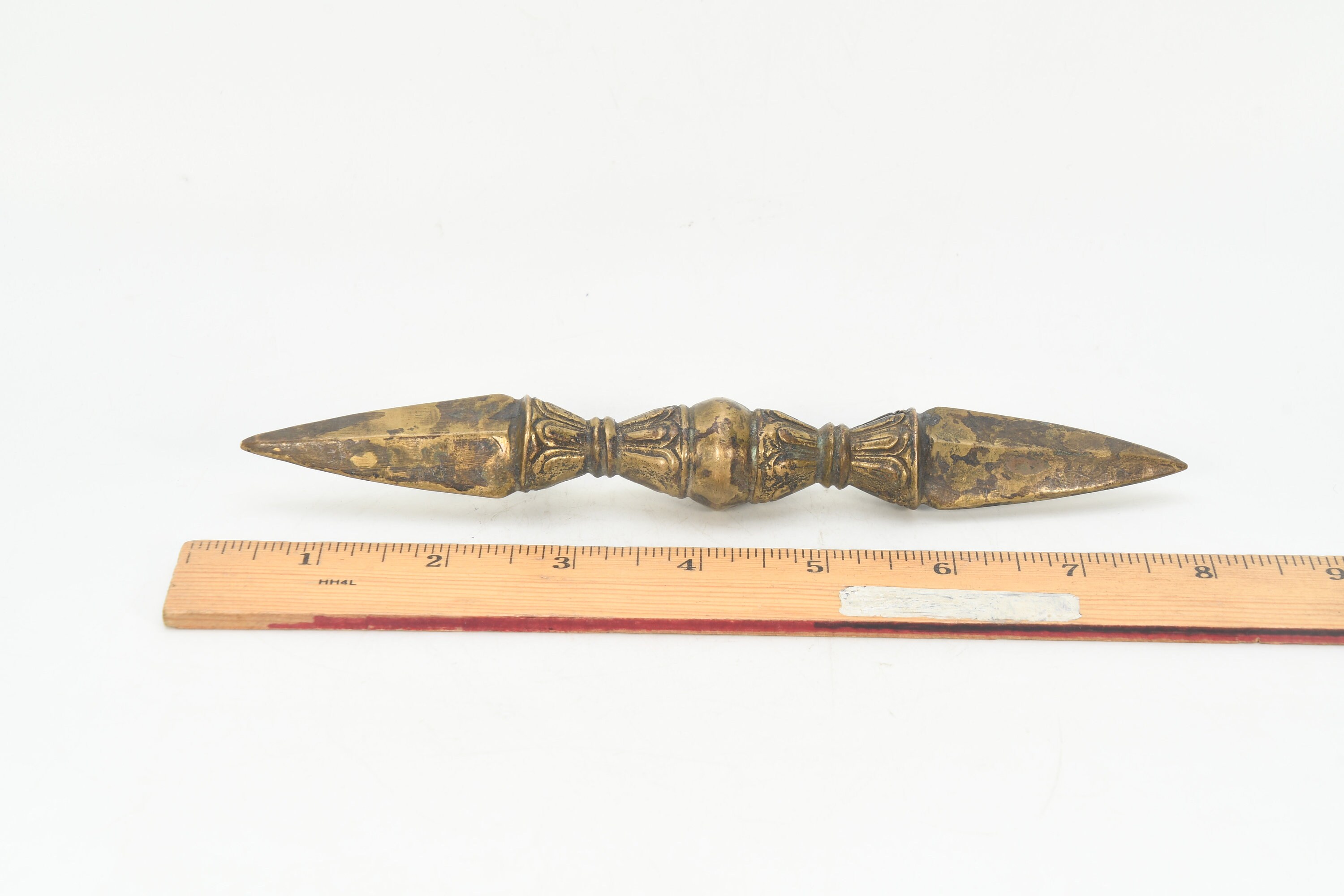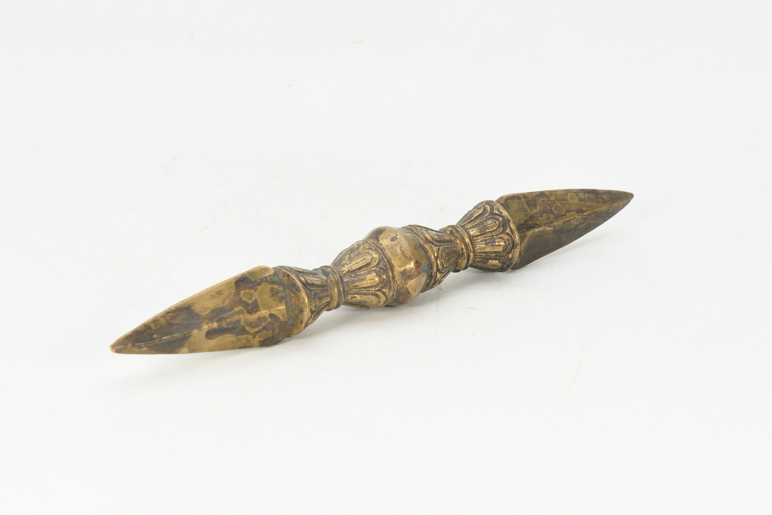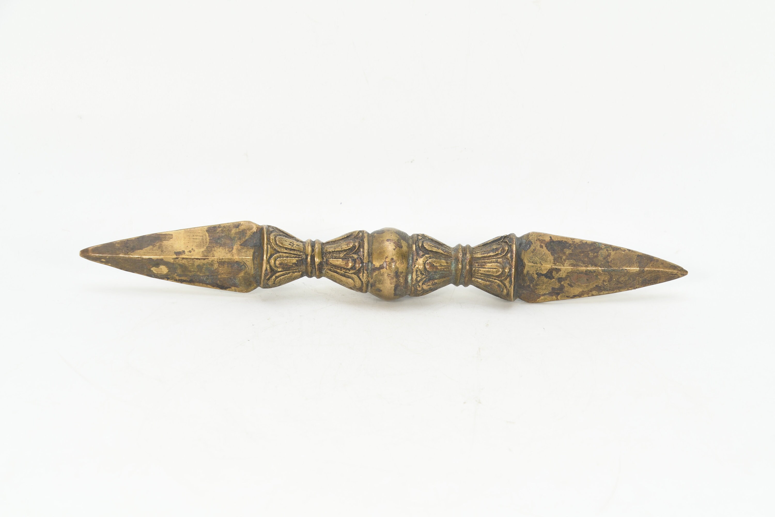 The phurba is also called 'the magic dagger'. 'Phur' is translated from the Sanskrit 'kila' which means peg or nail. The phurba is a three-sided stake that is used in Buddhist rituals.