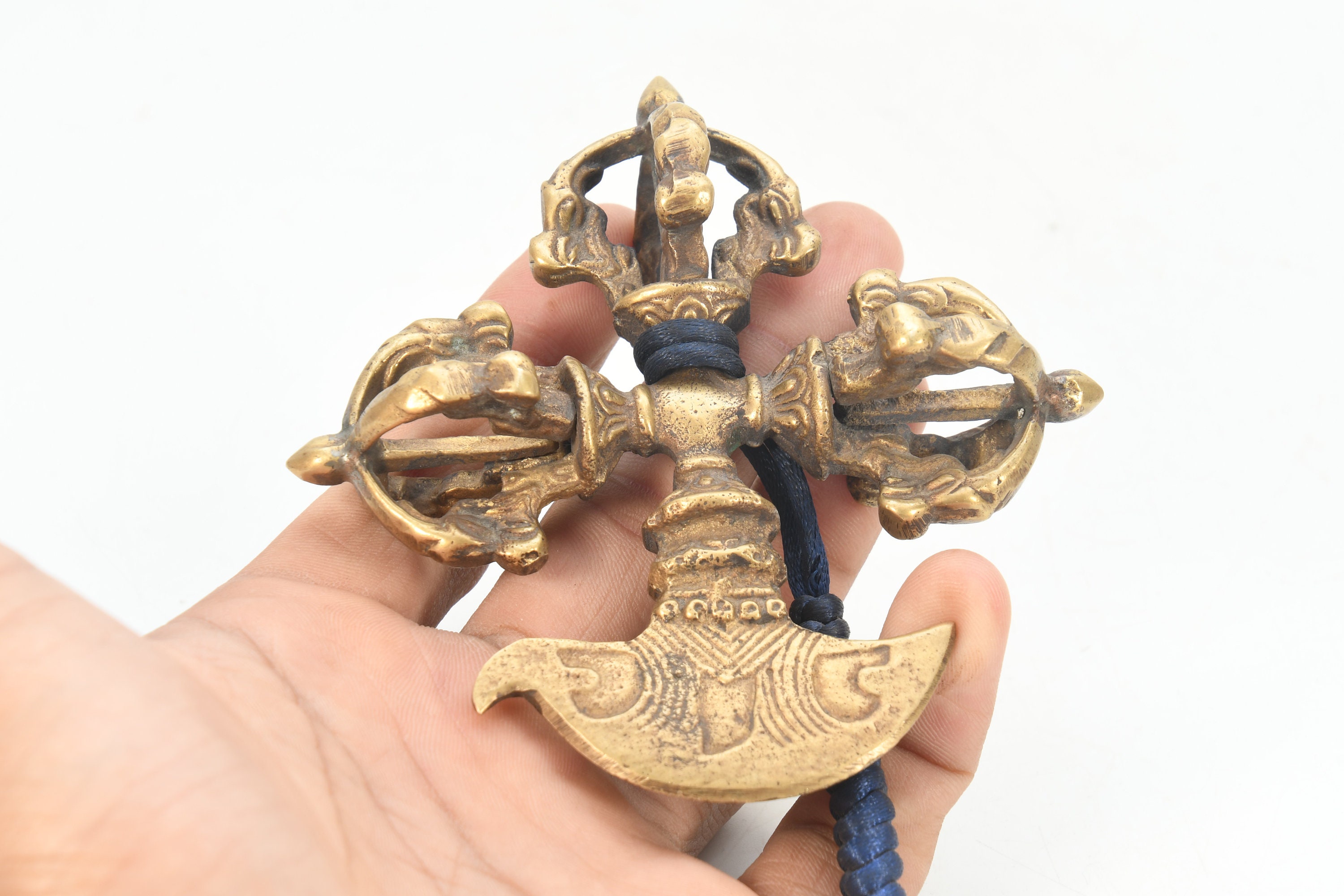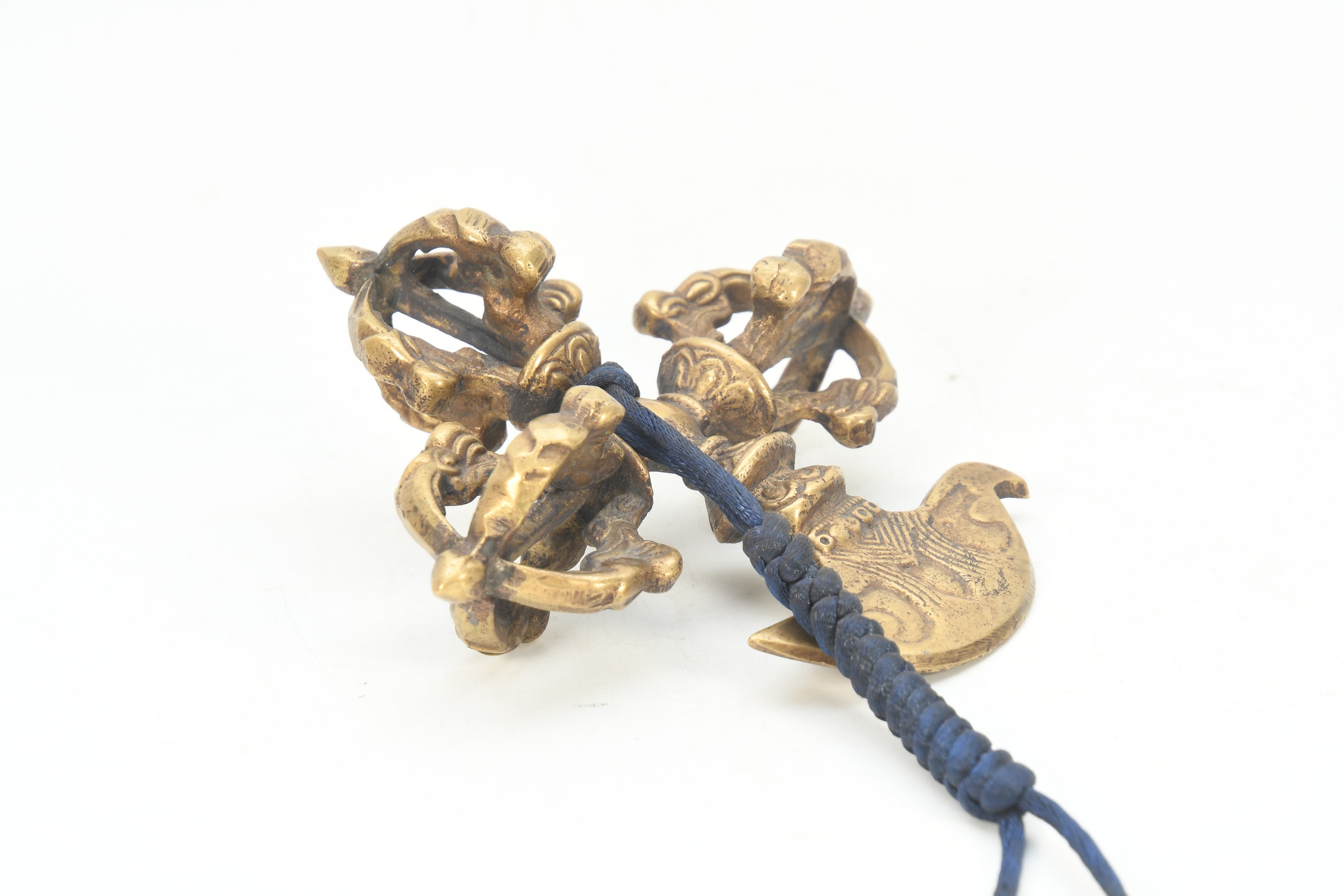Bronze Amulet Tibetan Ritual Double Dorje and Khatvanga Craft Meditation Healer Antique Collectible Nepal