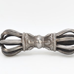 Vajra is a Sanskrit word meaning both thunderbolt and diamond. It is a weapon that is used as a ritual object to symbolize both the properties of a diamond (indestructibility) and a thunderbolt (irresistible force). The five-pronged vajra is the most commonly seen vajra.