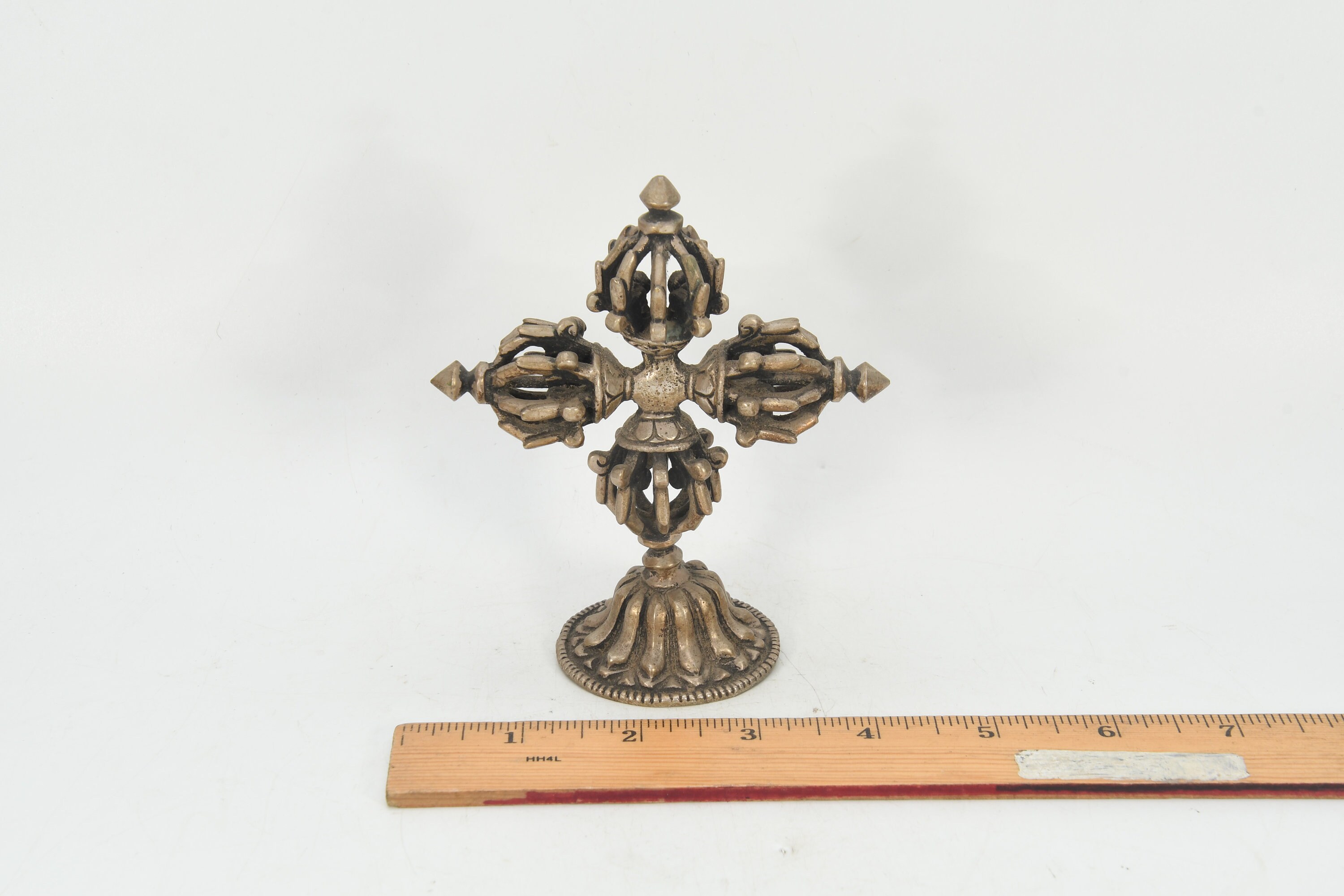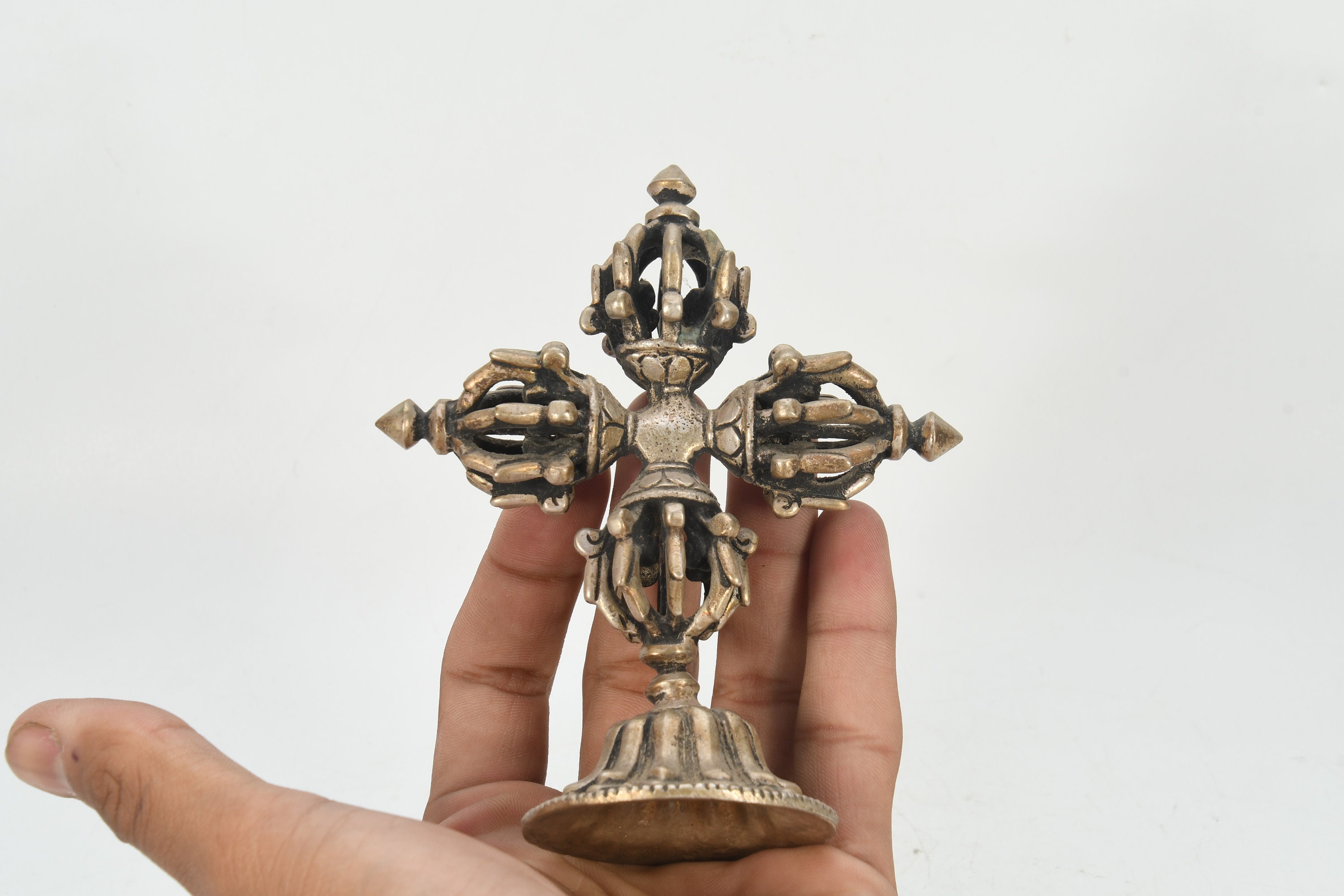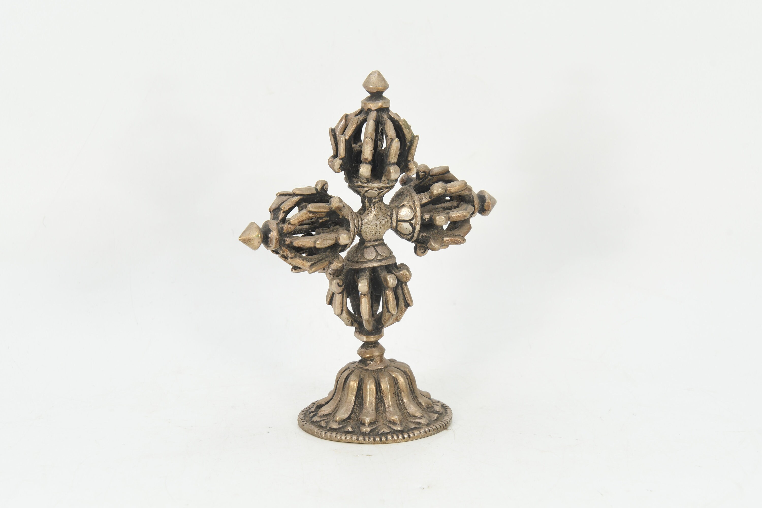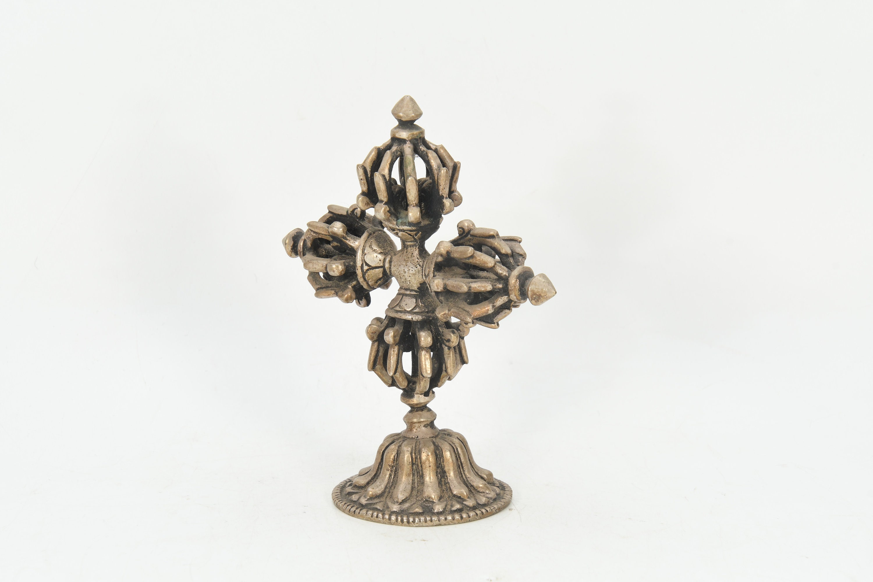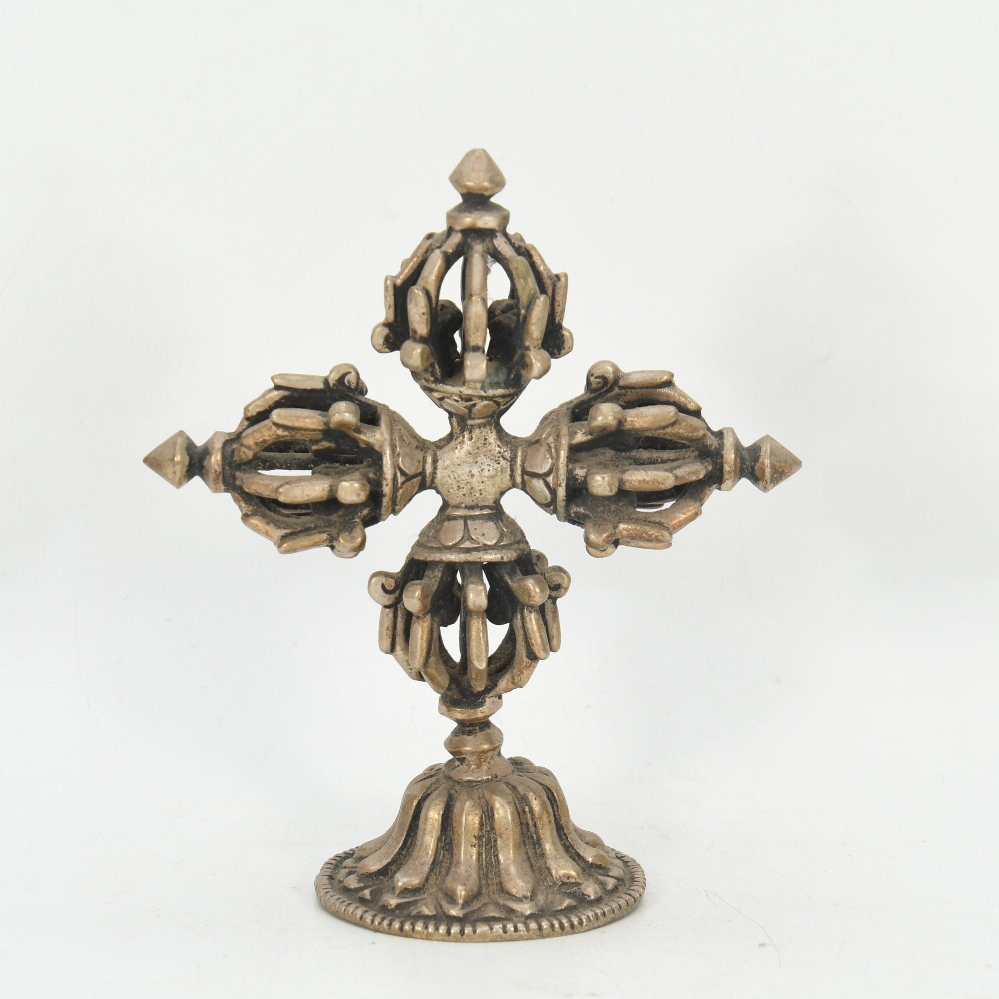 Handmade Double Dorje Tibetan Silver Crafted Religious Meditational Buddhism Vajrayana Arts and Collectible Nepal