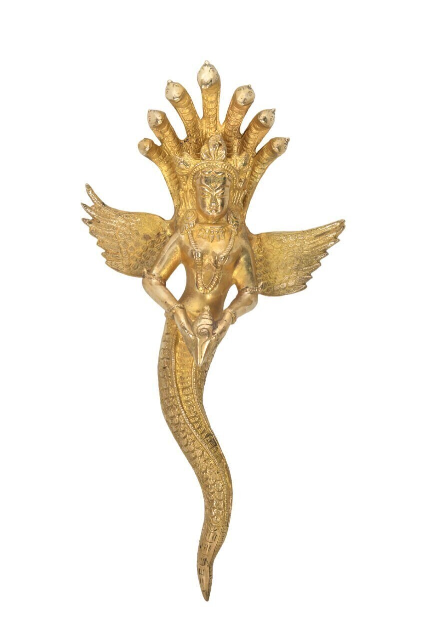 Goddess Nagkanya is a deity in Hindu mythology who is often associated with serpents or nagas. She is believed to be the daughter of the serpent king, Shesha Nag. Nagkanya is often depicted as a beautiful woman with a serpent's tail, and she is worshiped for protection against snake bites and for fertility.