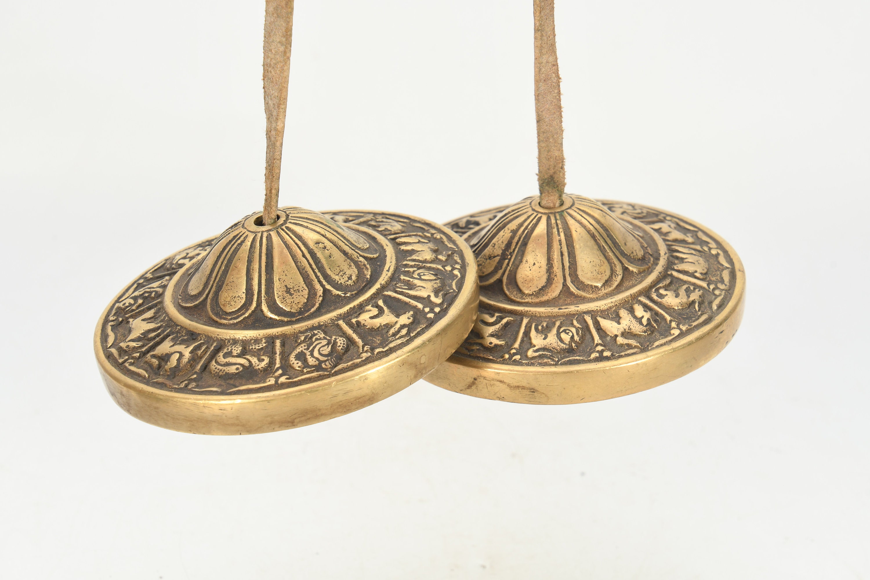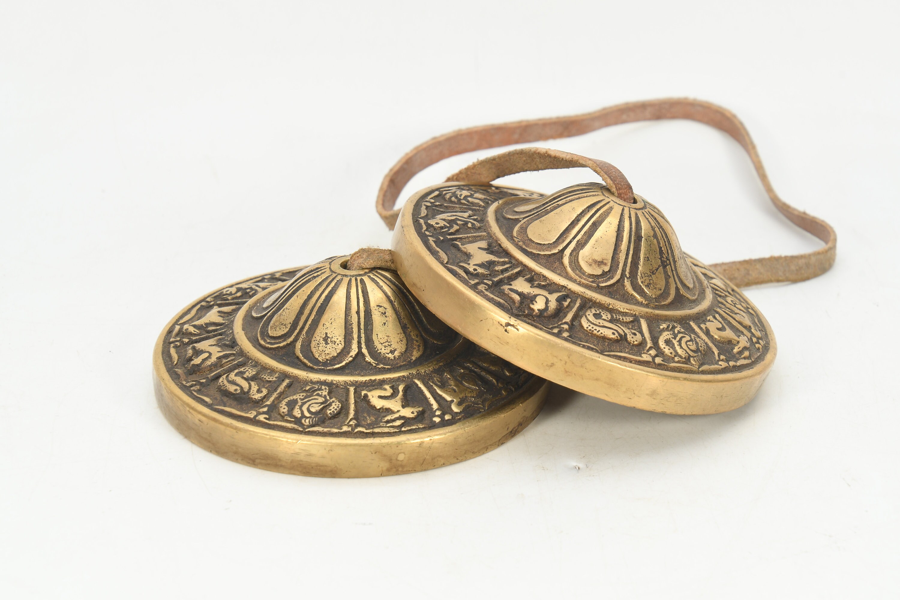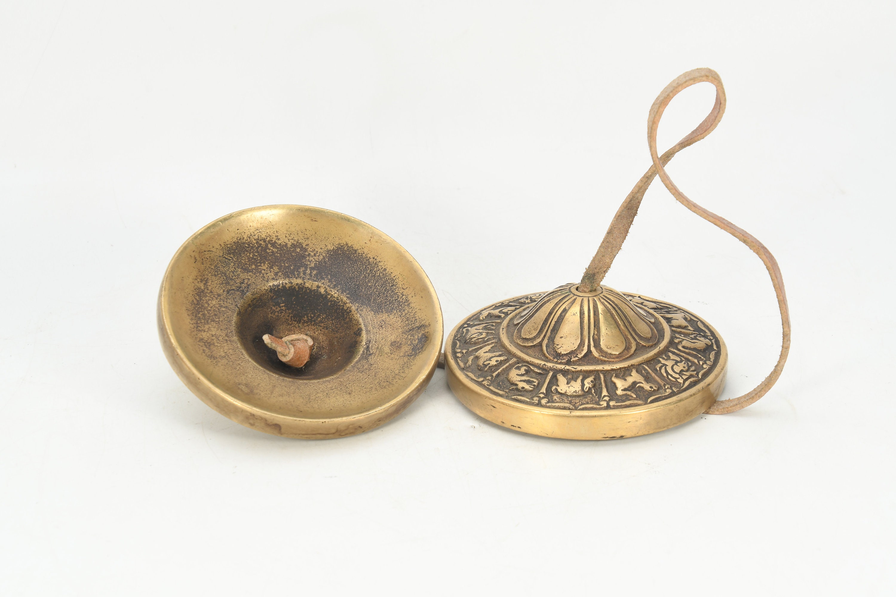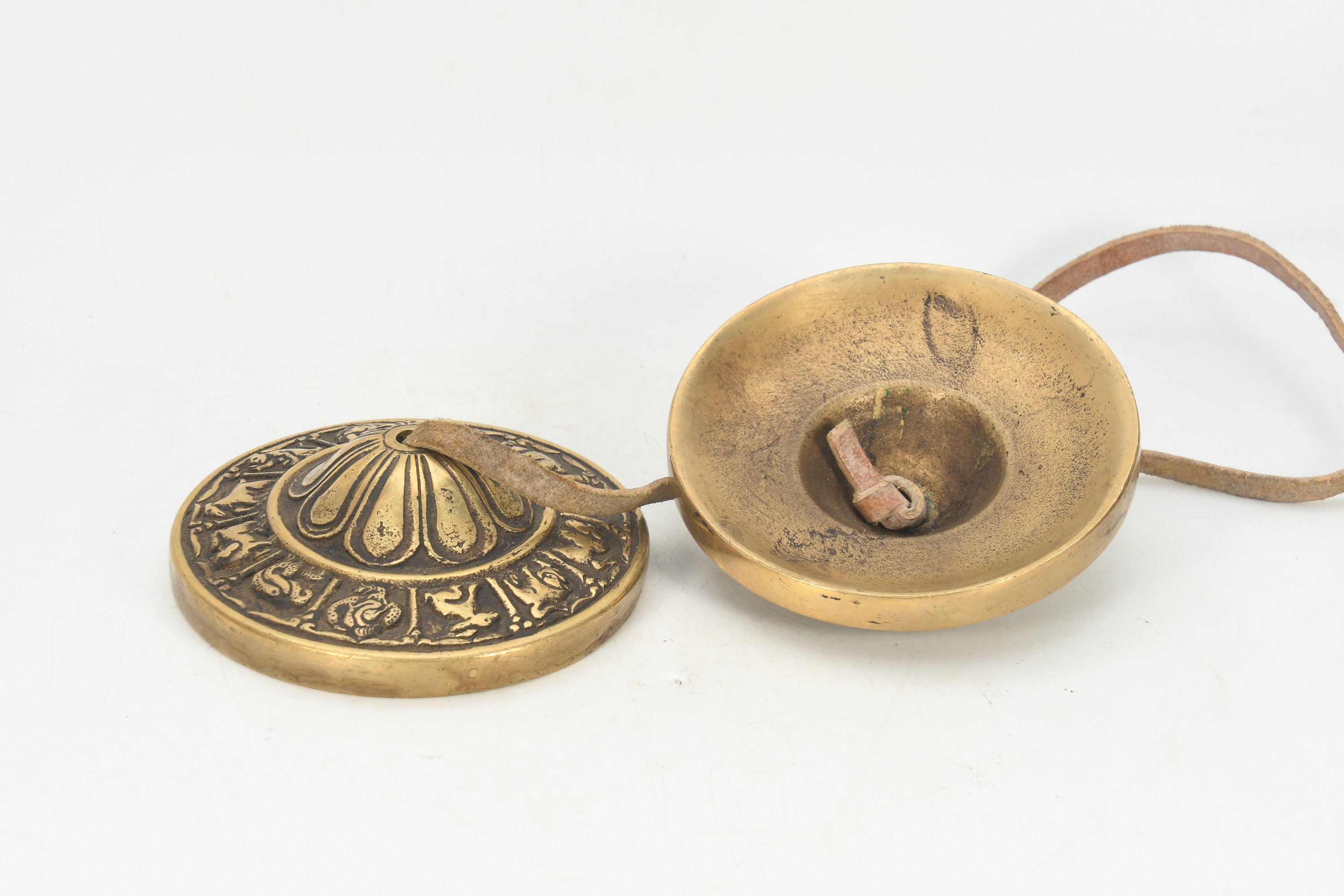 Tingsha cymbal is used to start and end a period of meditation or spiritual practice. It's used in meditation, yoga, massage sessions, sound healing, and sound clearing for crystals, jewelry, room/space, and chakras. The sound is made by holding the leather cord in each hand and striking the bell edges together. To clear crystals and jewelry, chime the bells near them from one to three times. Listen to your intuition for the right number of times that are needed to clear the energy.