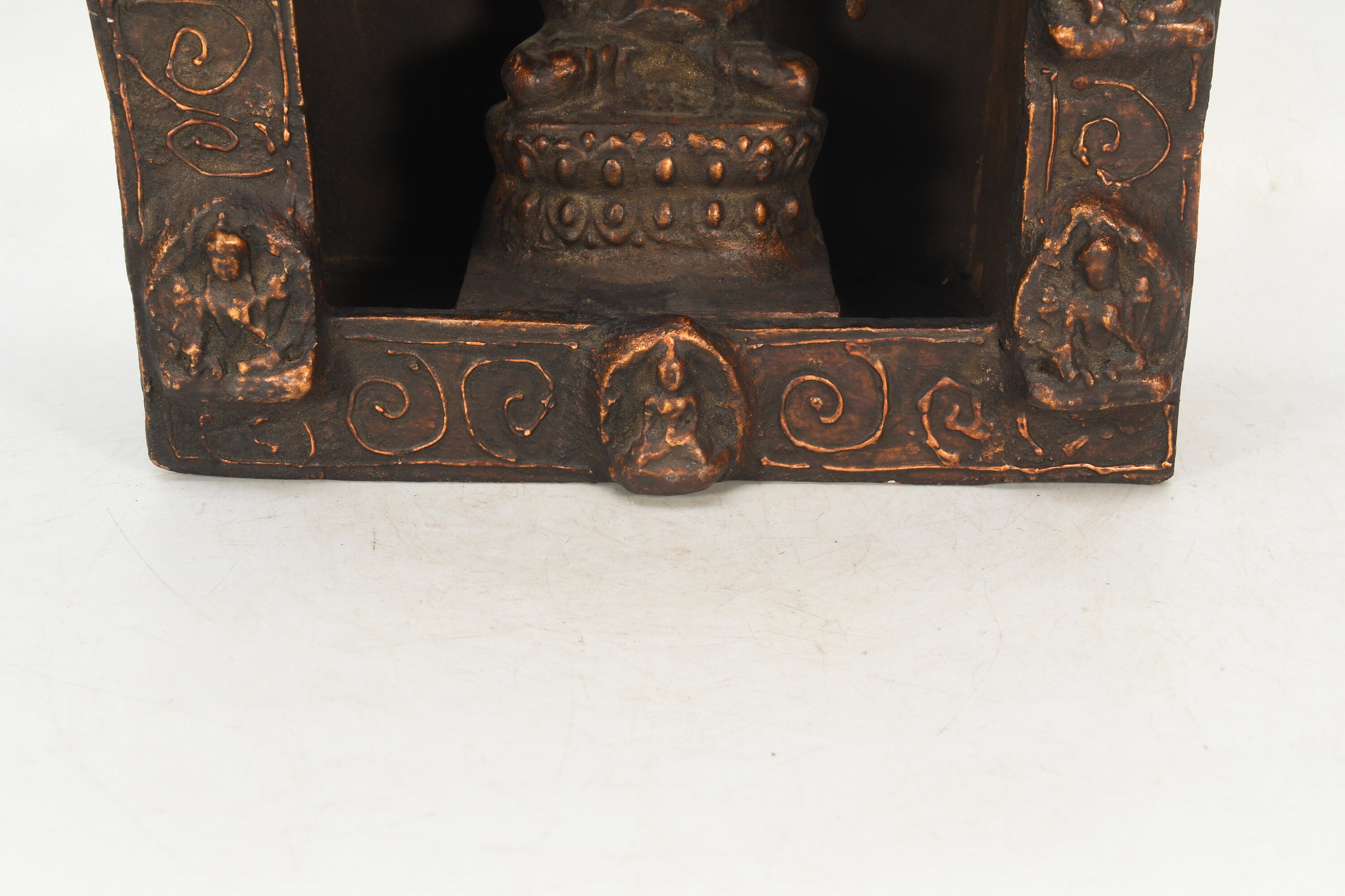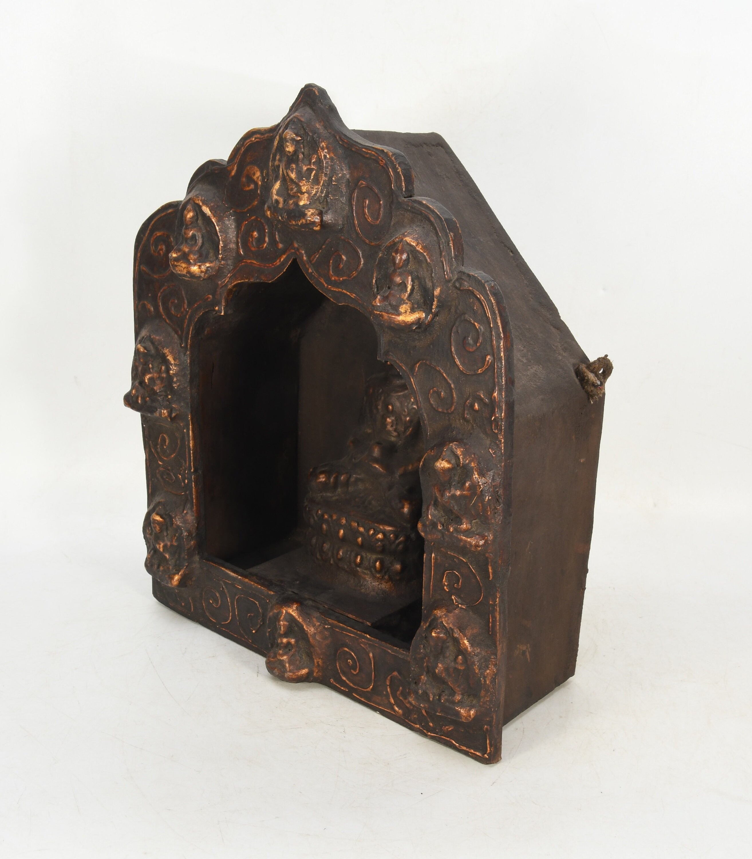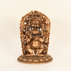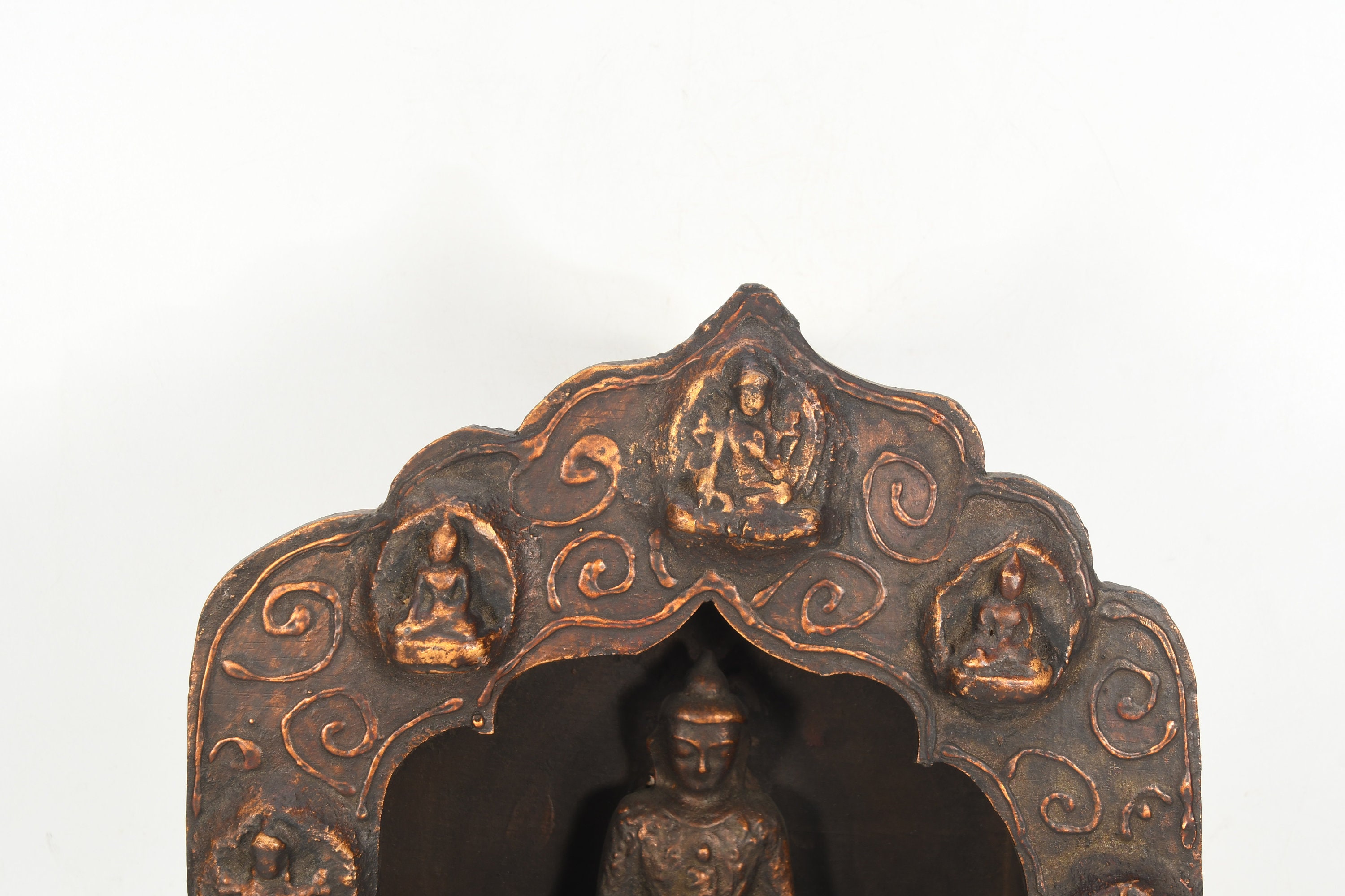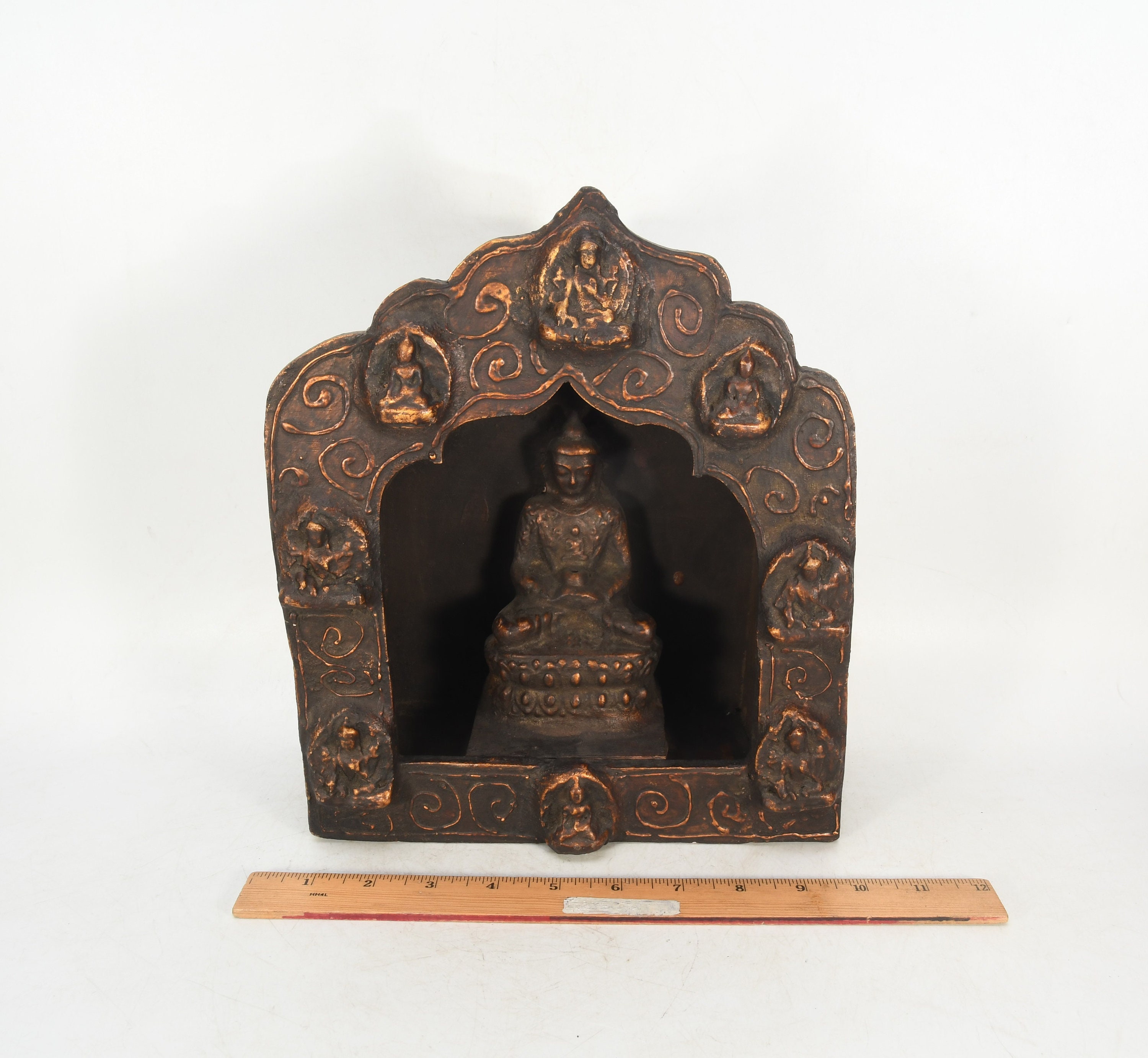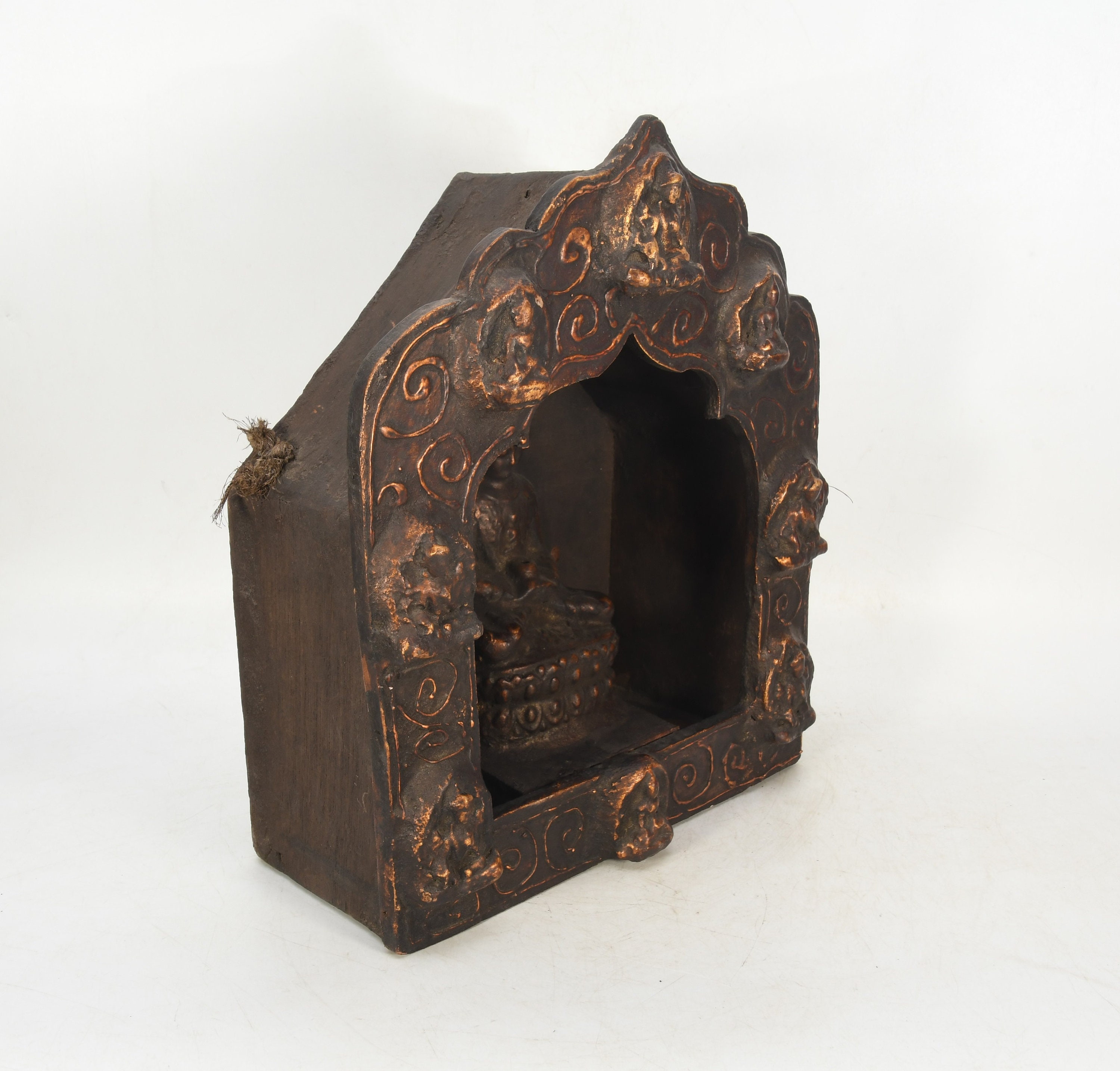 Sitting Buddha Clay Crafted Wooden Back Antique Shakyamuni Buddha Sculpture Traditional Decorative Figurine Nepal