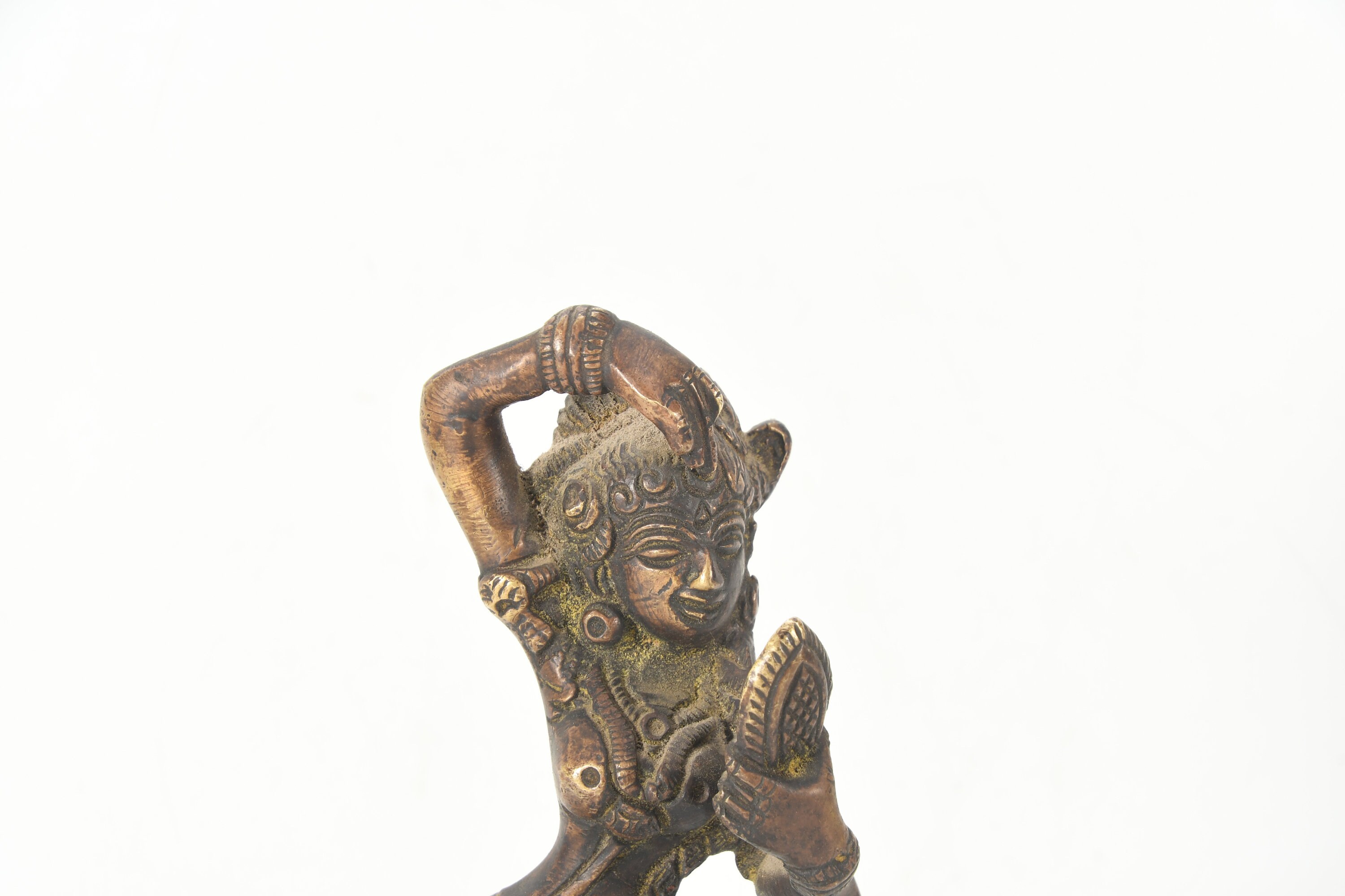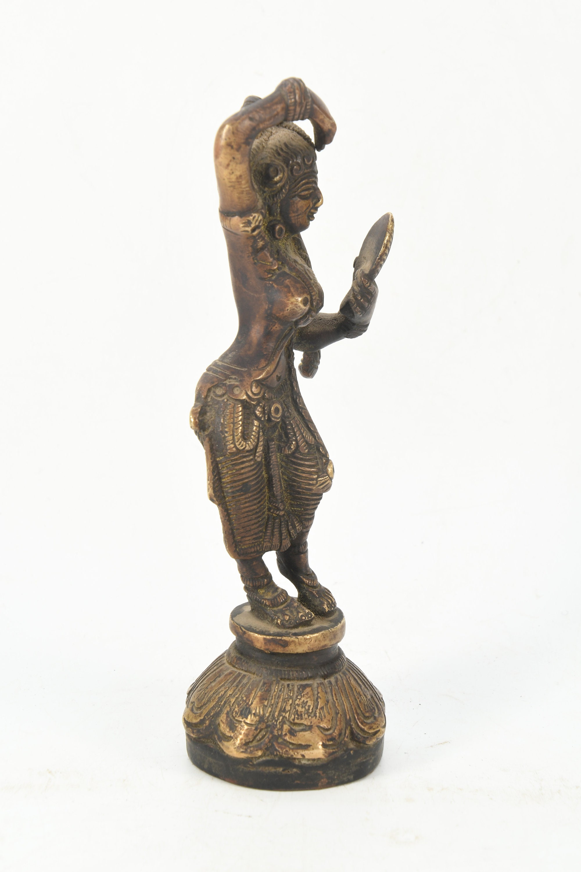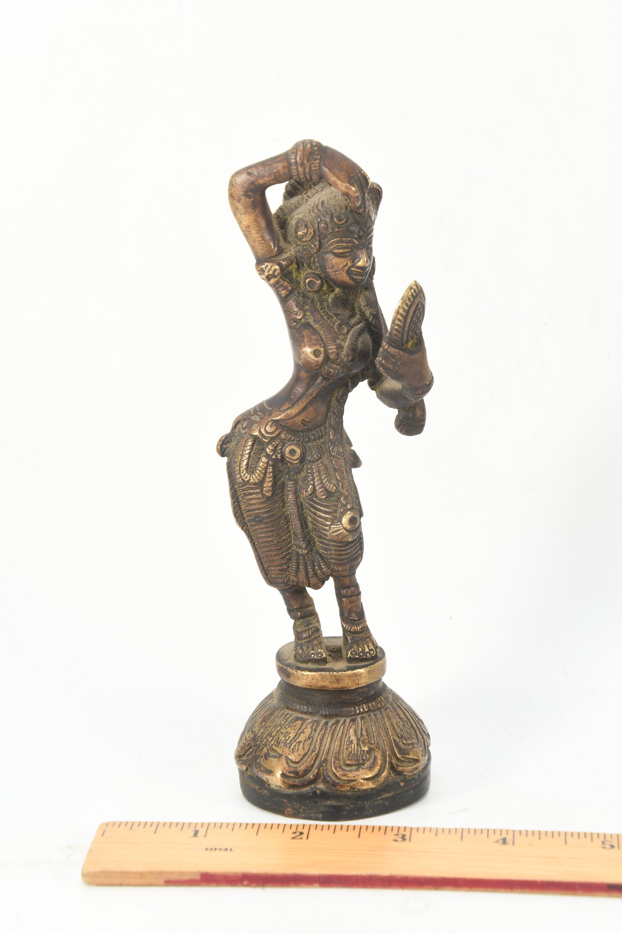 Brass Crafted Standing Apsara Idol applying Vermillion Traditional Antique Decorative Arts and Collectibles Nepal