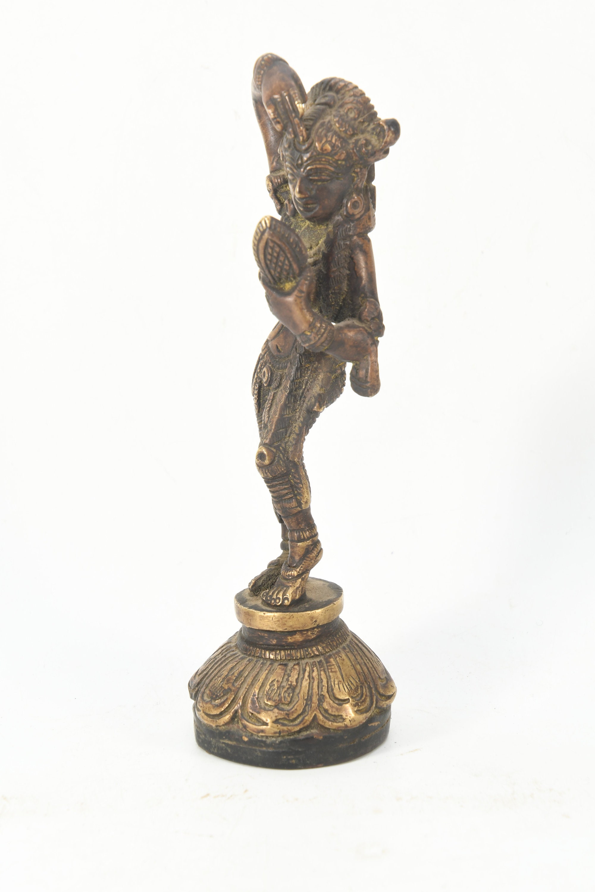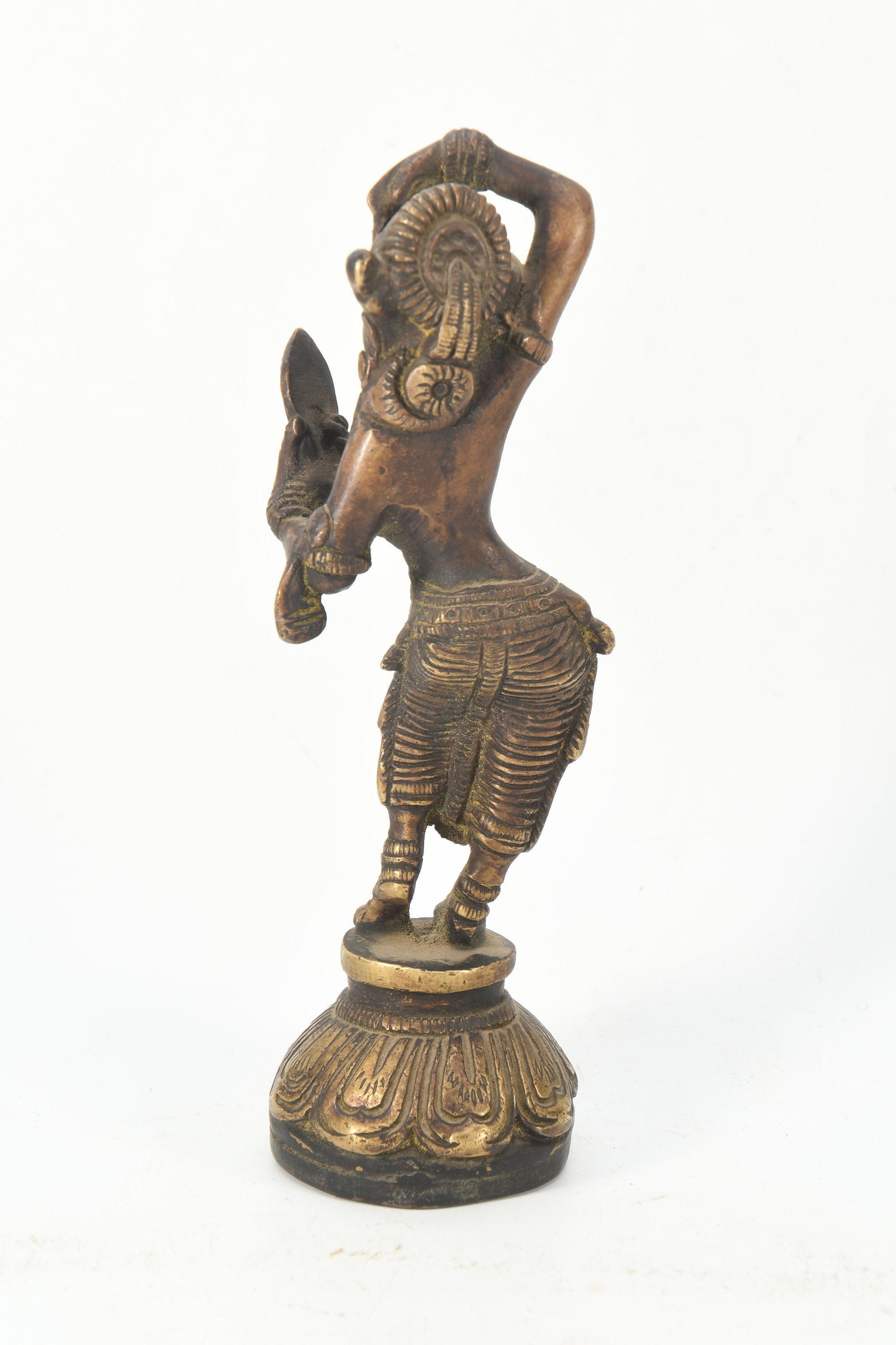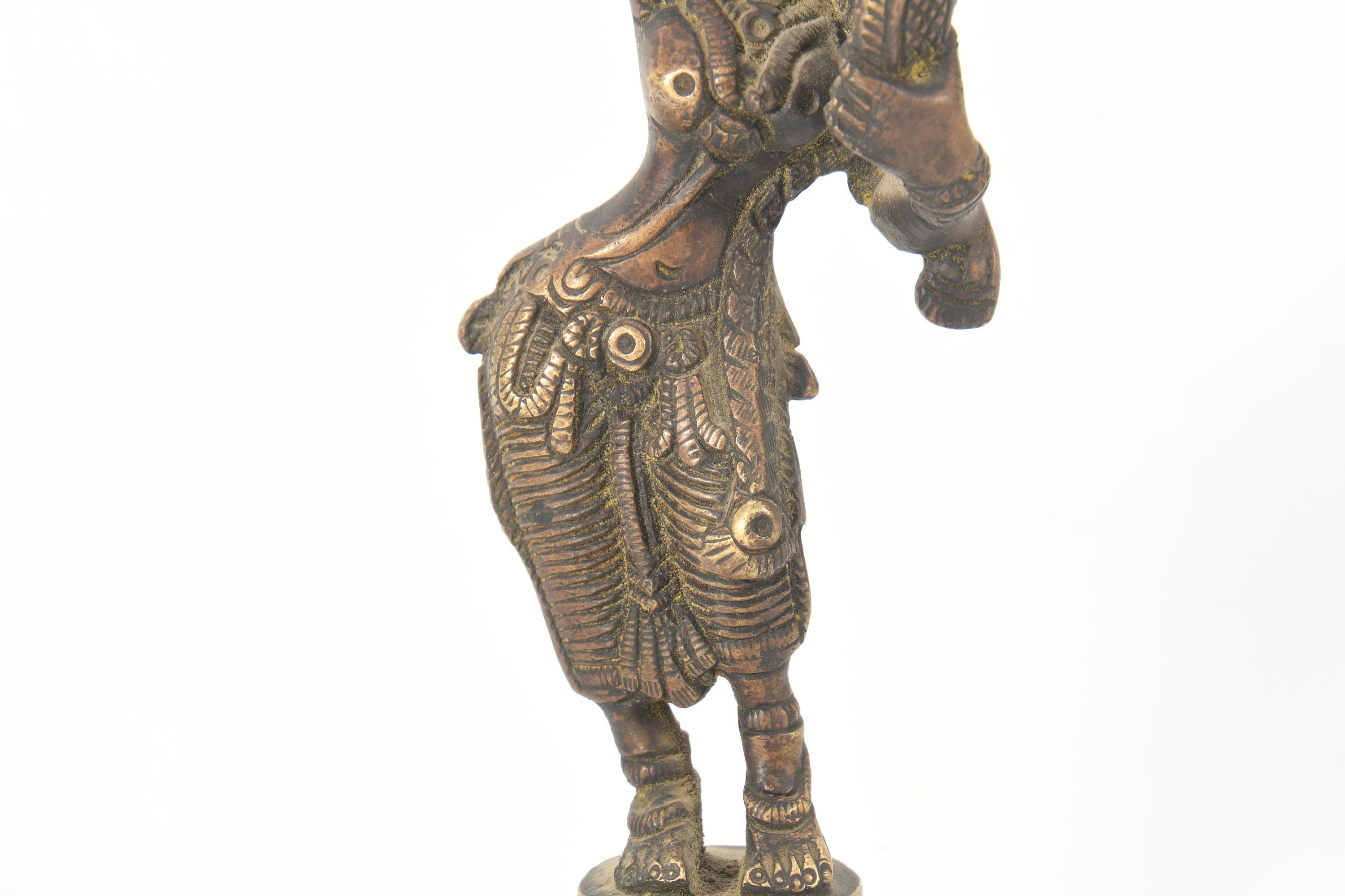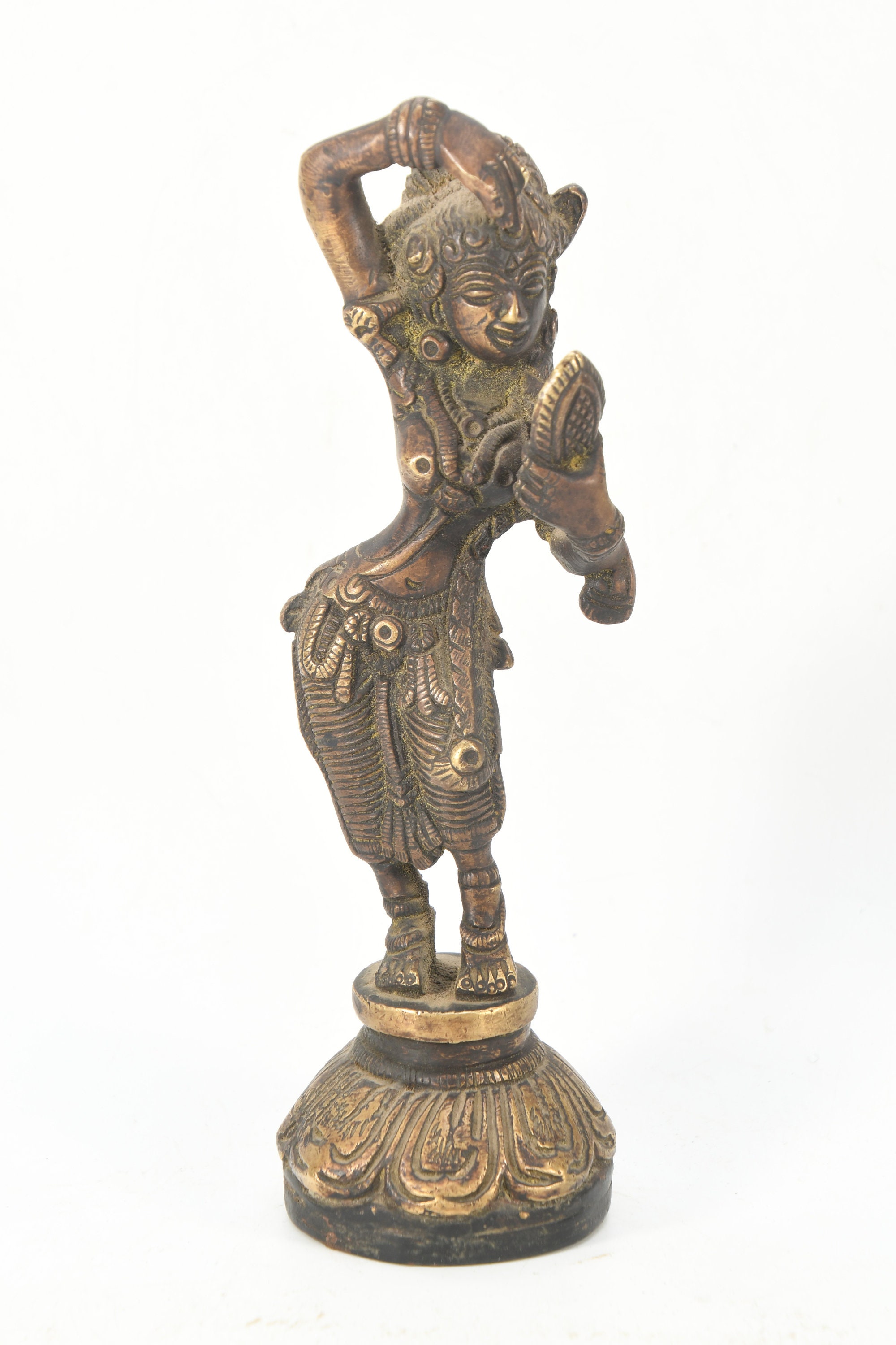 Brass Crafted Standing Apsara Idol applying Vermillion Traditional Antique Decorative Arts and Collectibles Nepal