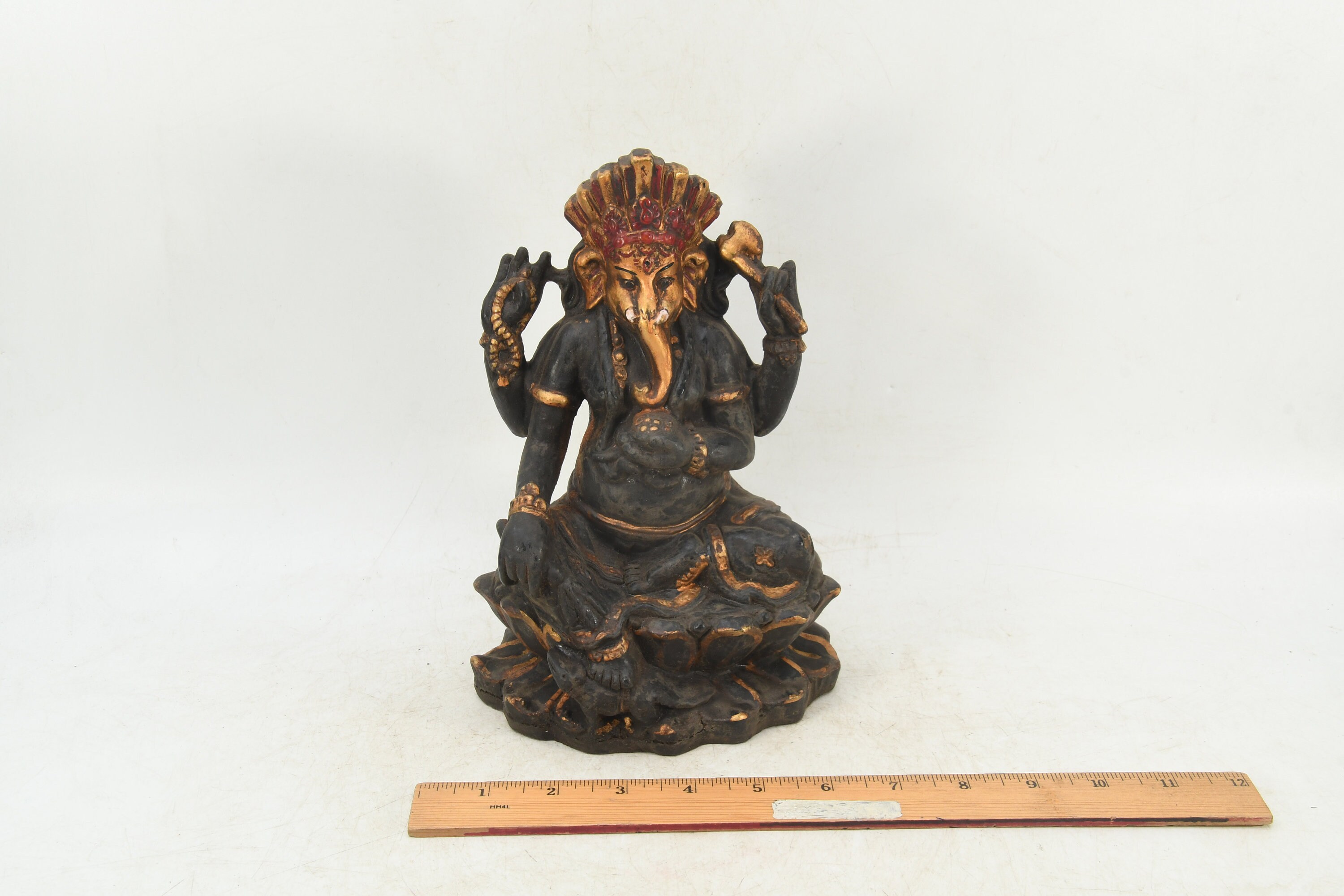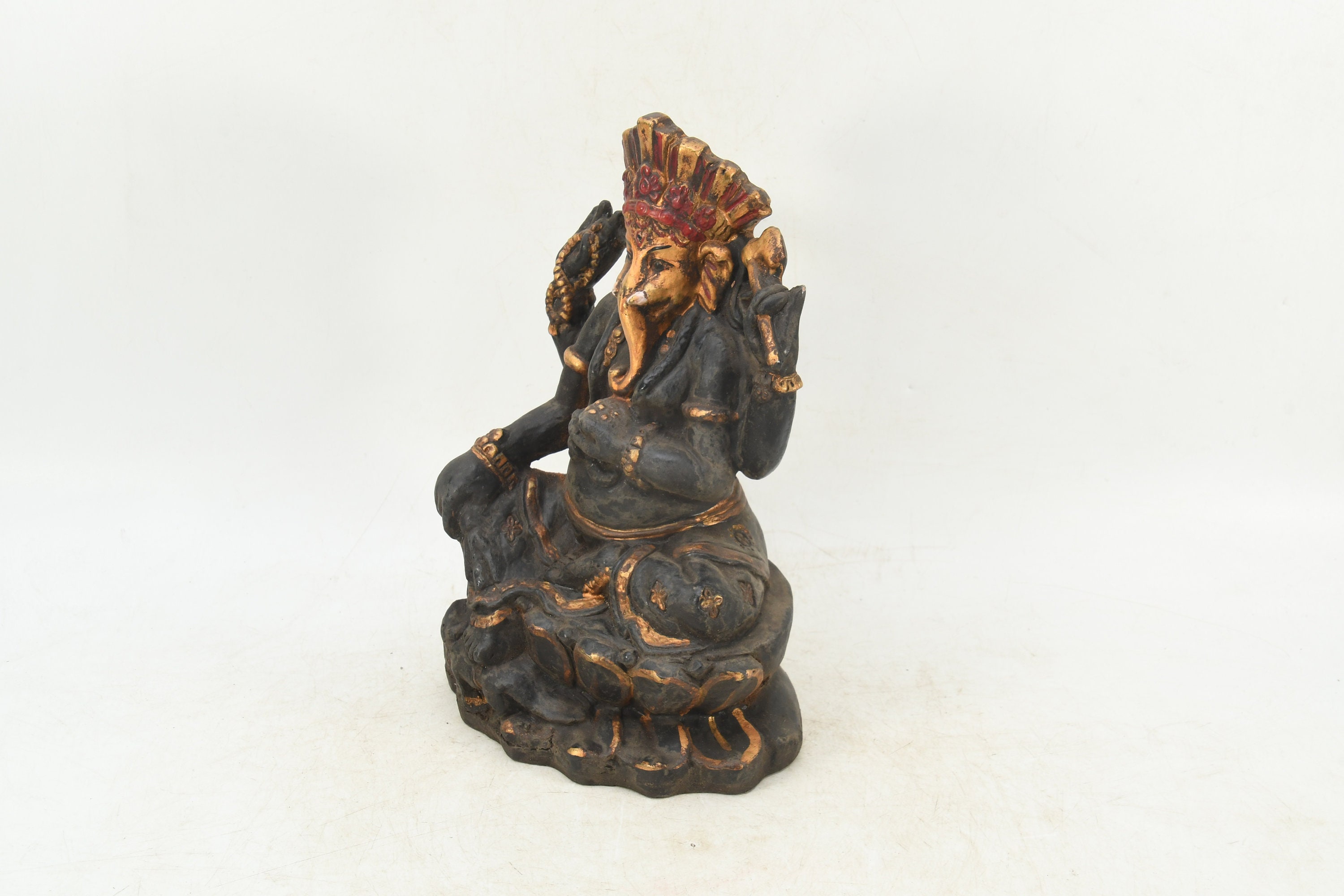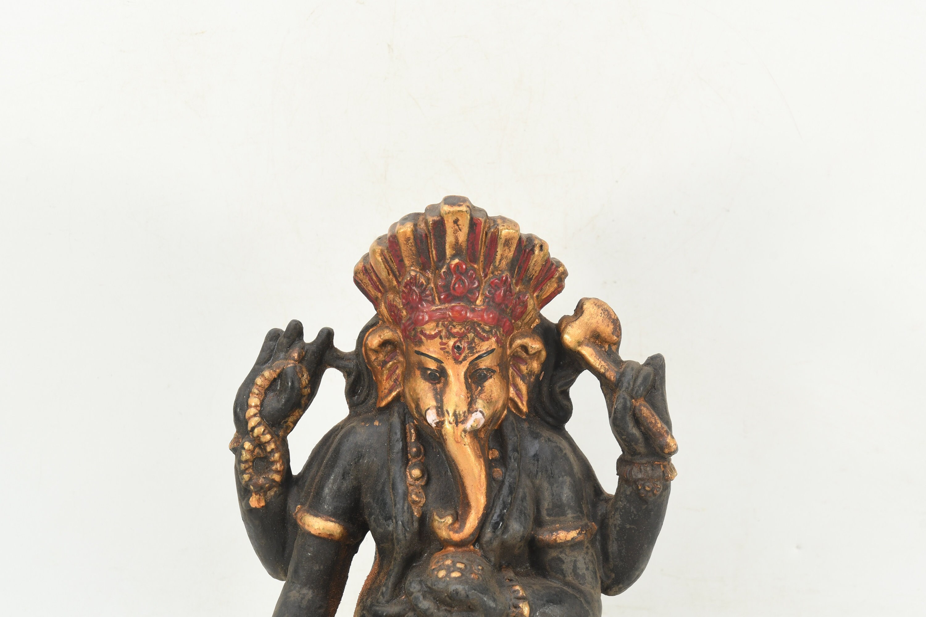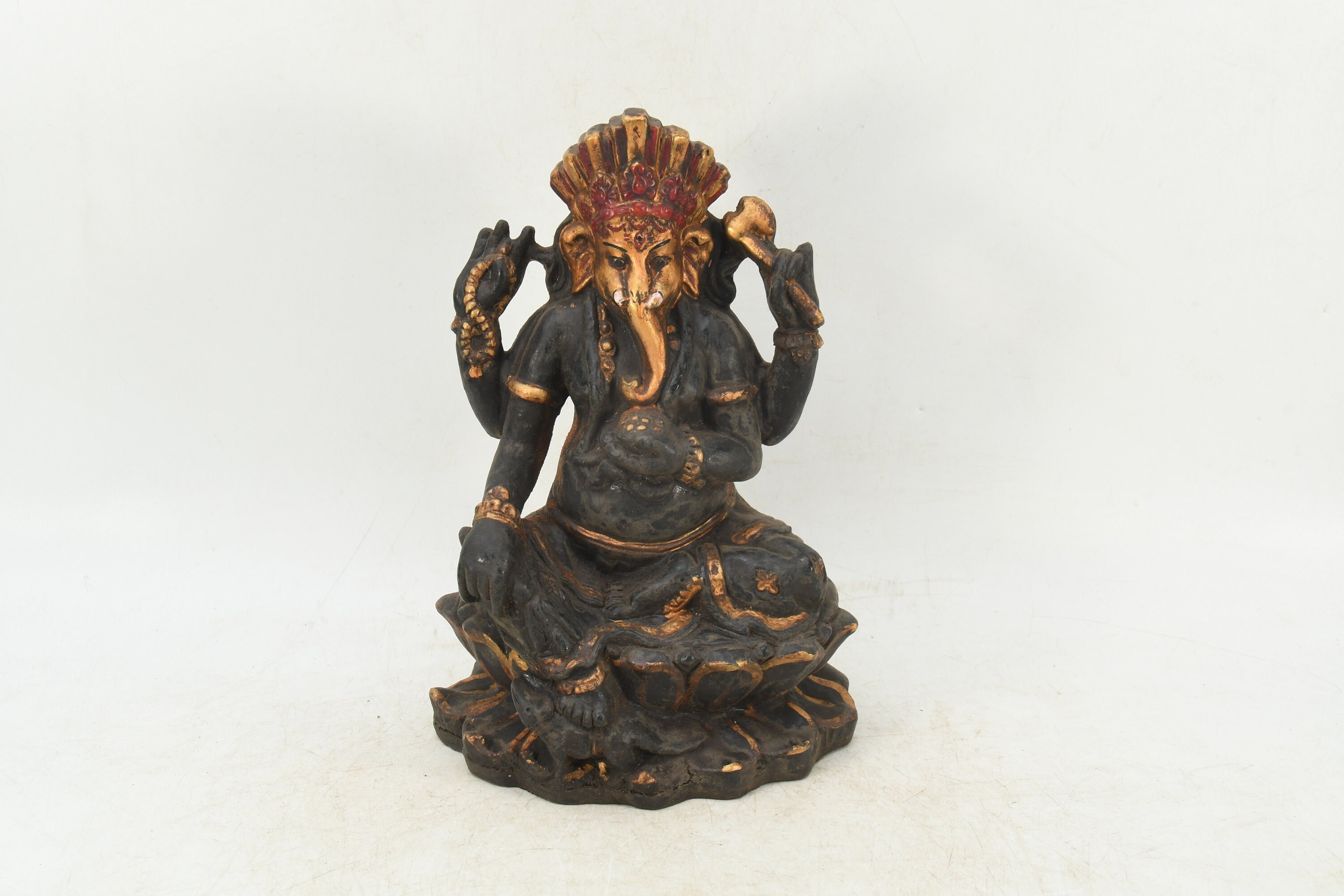Handmade Clay Ganesha Statue, Carved Hindu Sculpture from Nepal