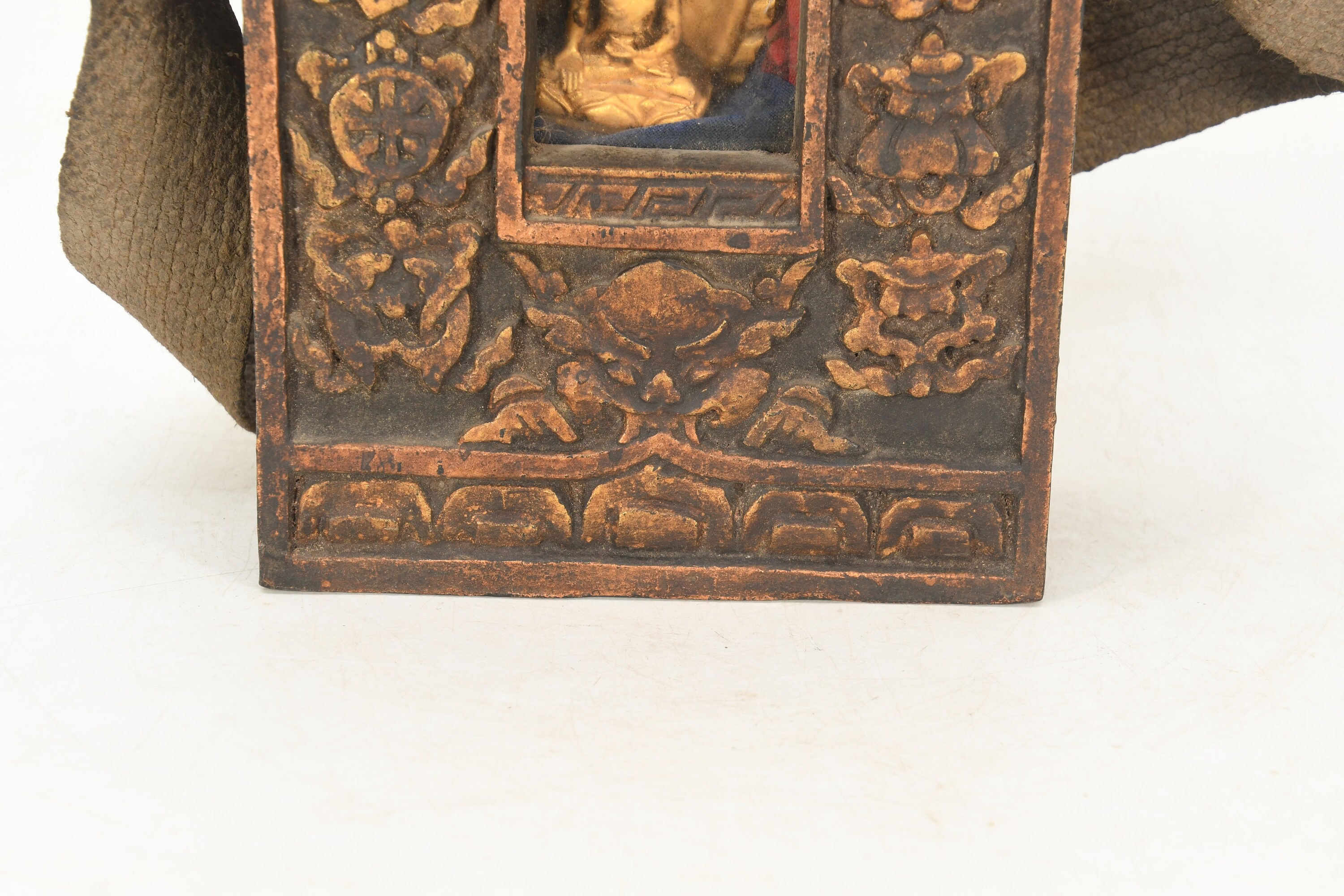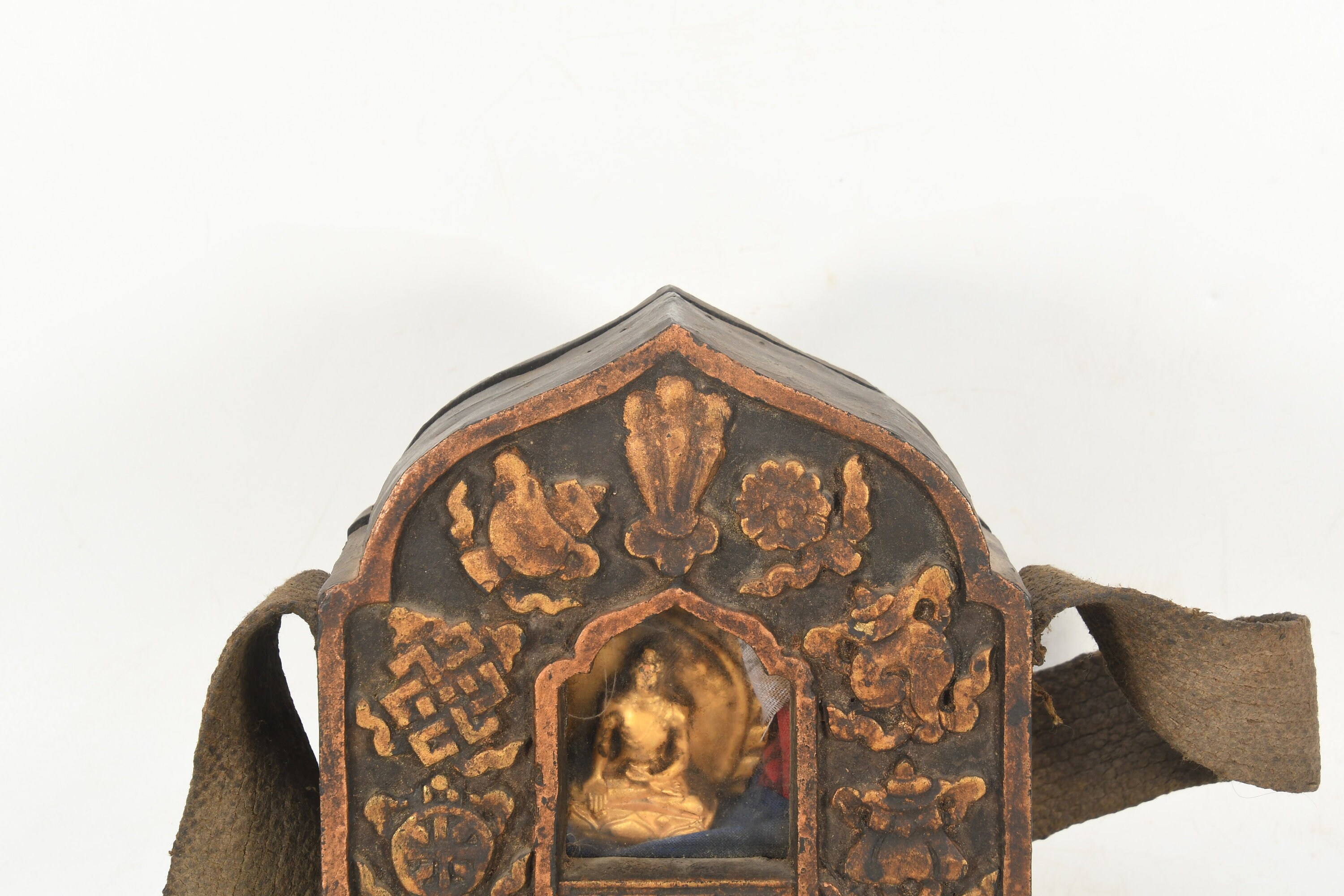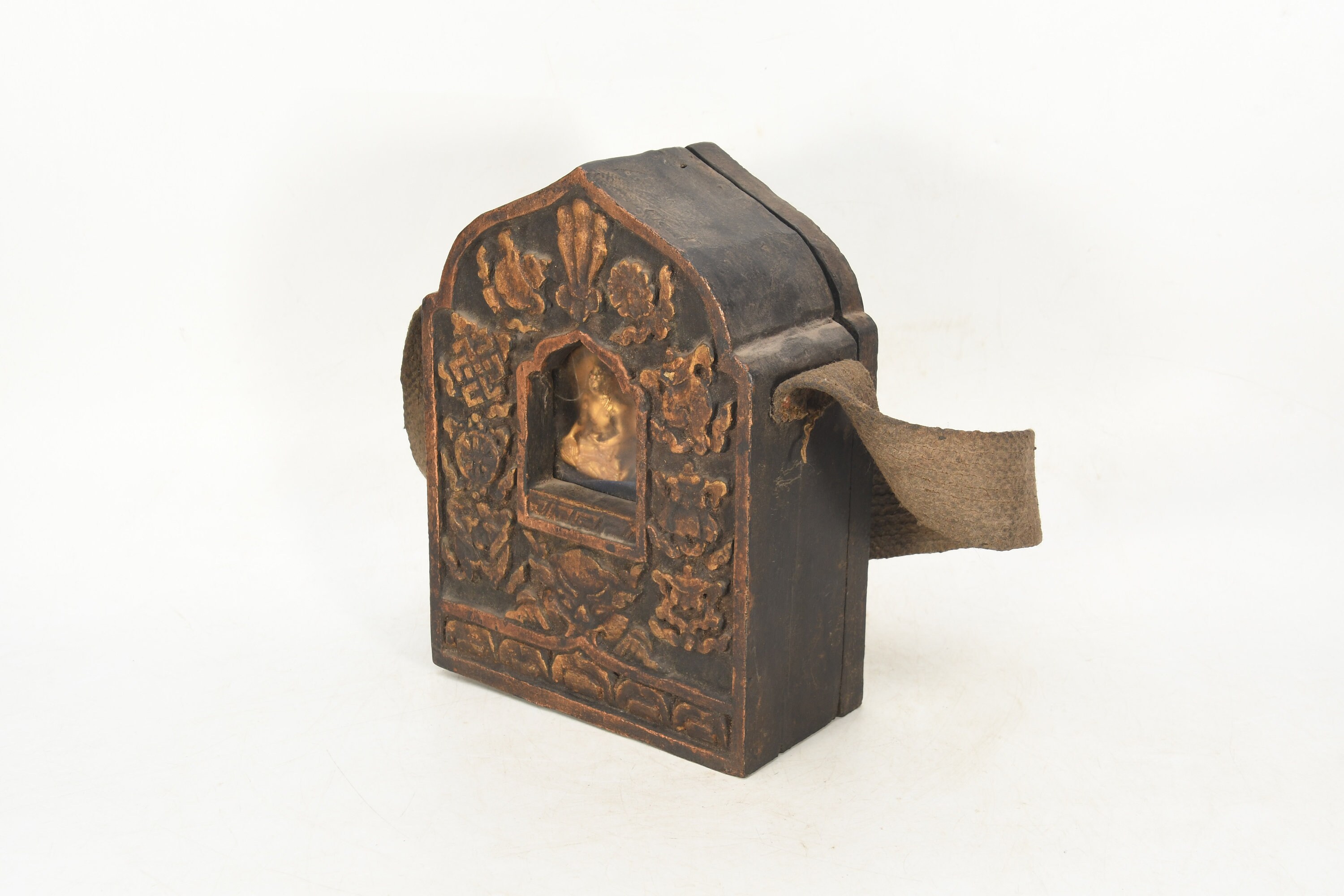 A wooden Ghau wall hanging is a decorative item that is traditionally found in the Himalayan region, particularly in Nepal and Tibet. The Ghau, also known as a prayer box or an amulet container, is a sacred object in Tibetan Buddhism. It is used to hold small religious relics, written prayers, or precious items that have spiritual significance.