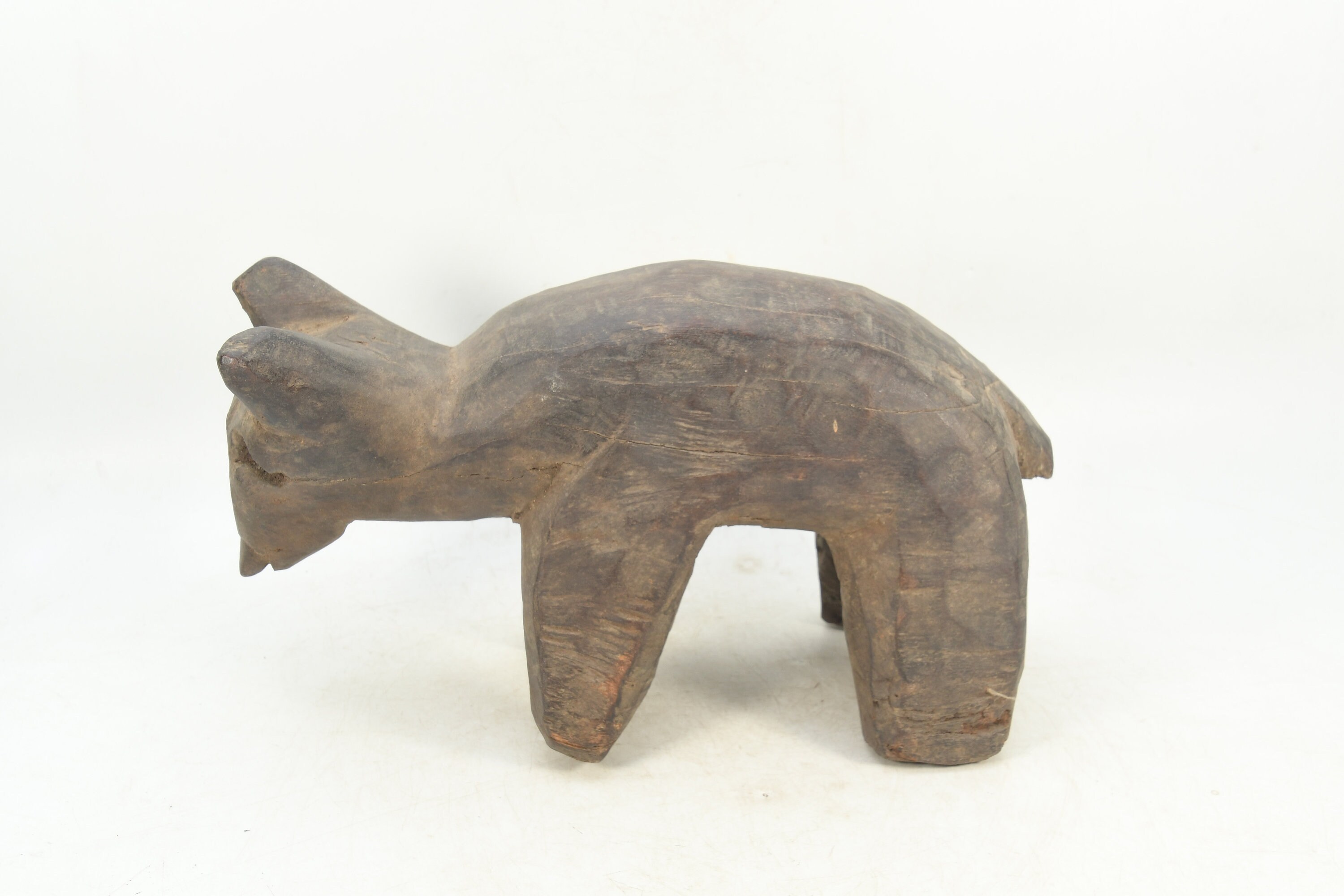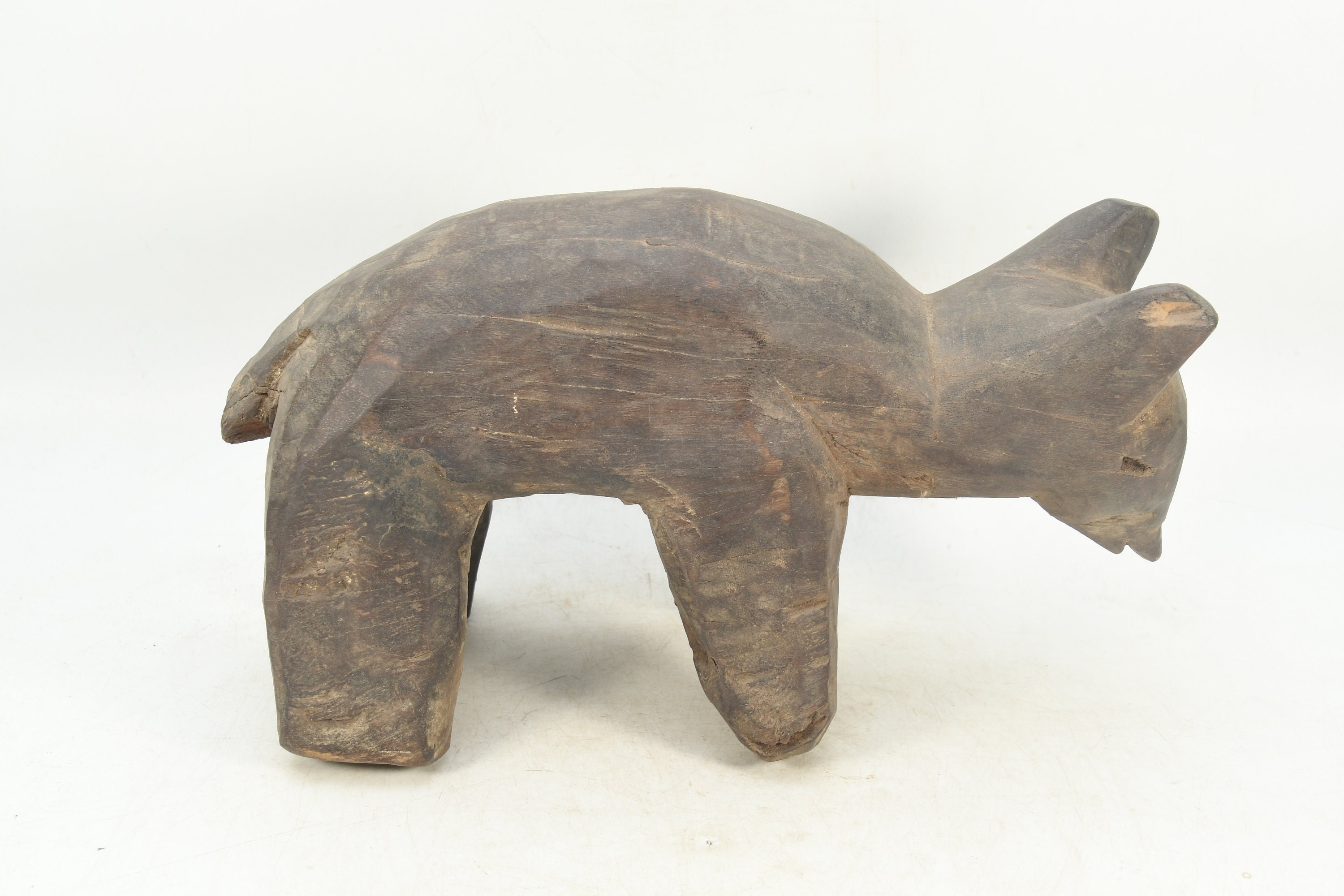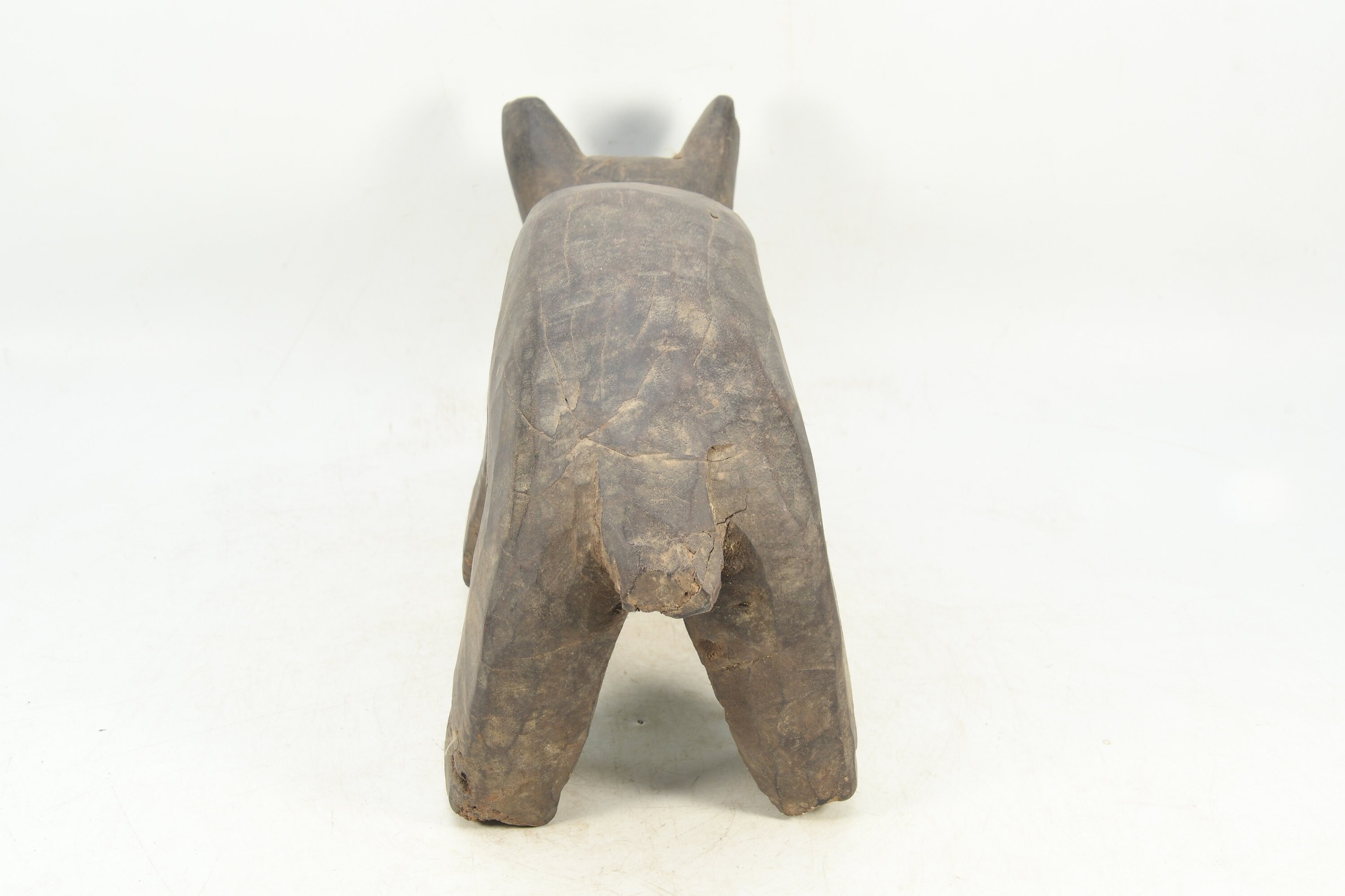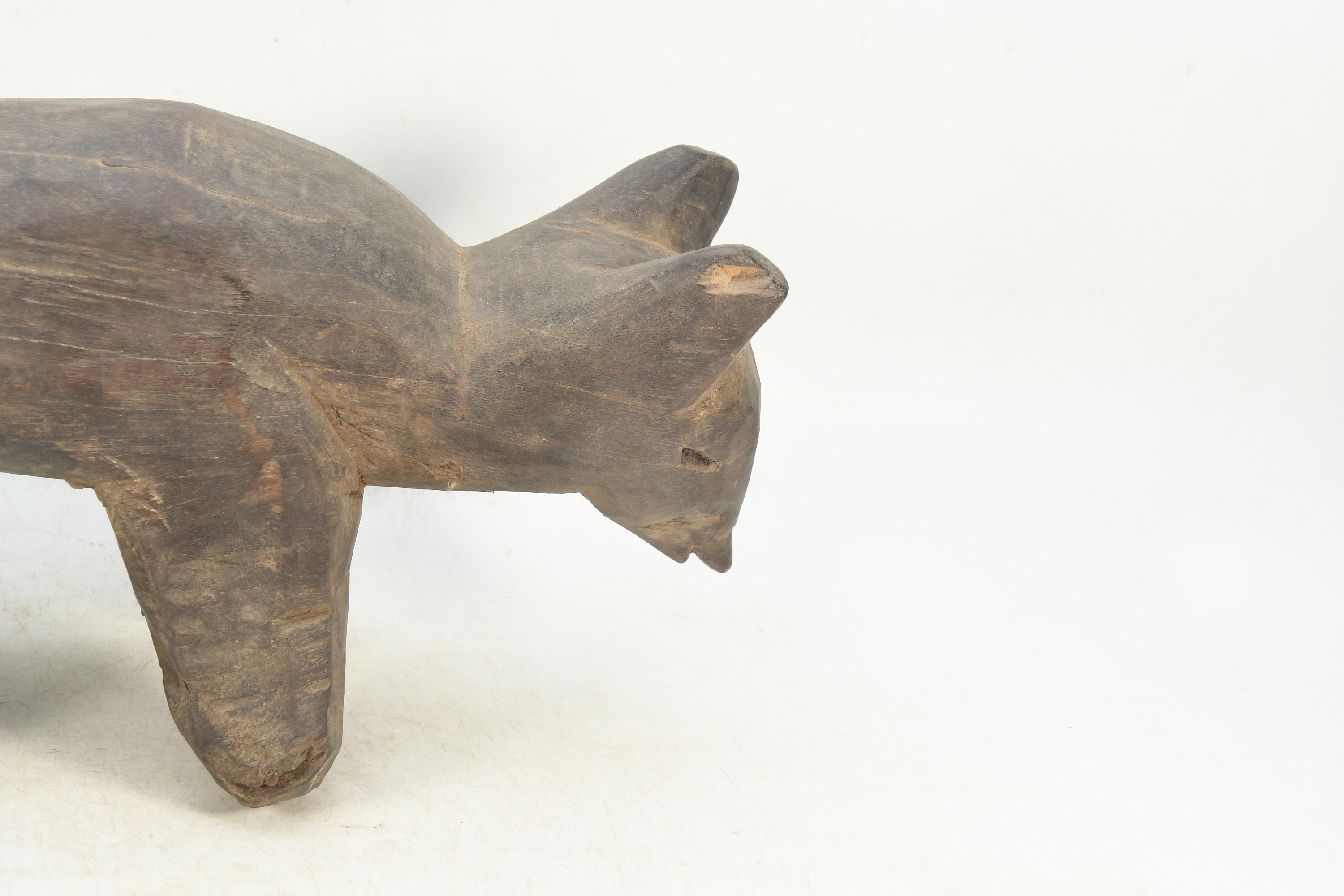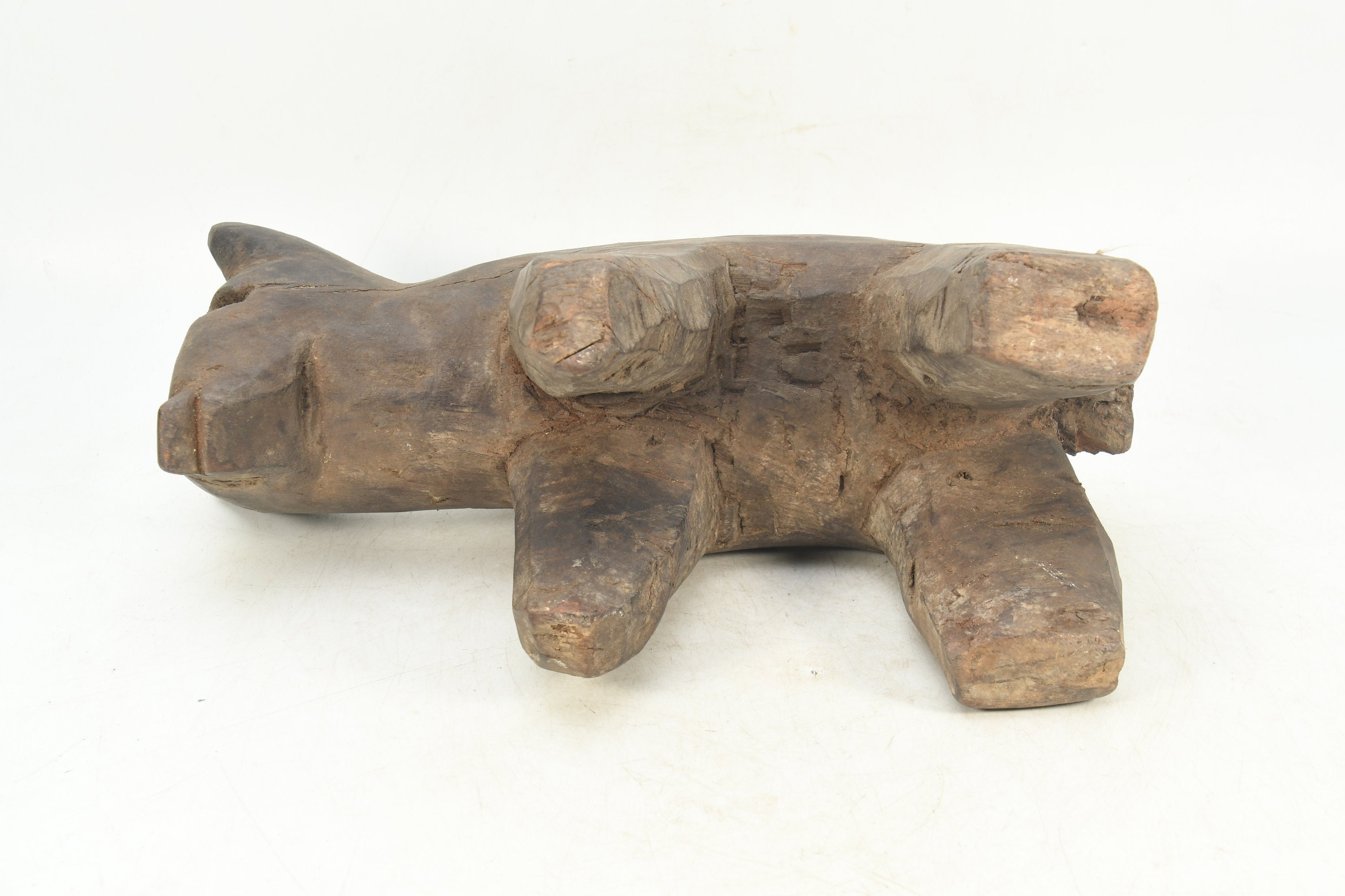 Vintage Woodland Guardian: Wooden Wolf Figurine Tibetan Traditional Handmade Religious Animal Statue Nepal