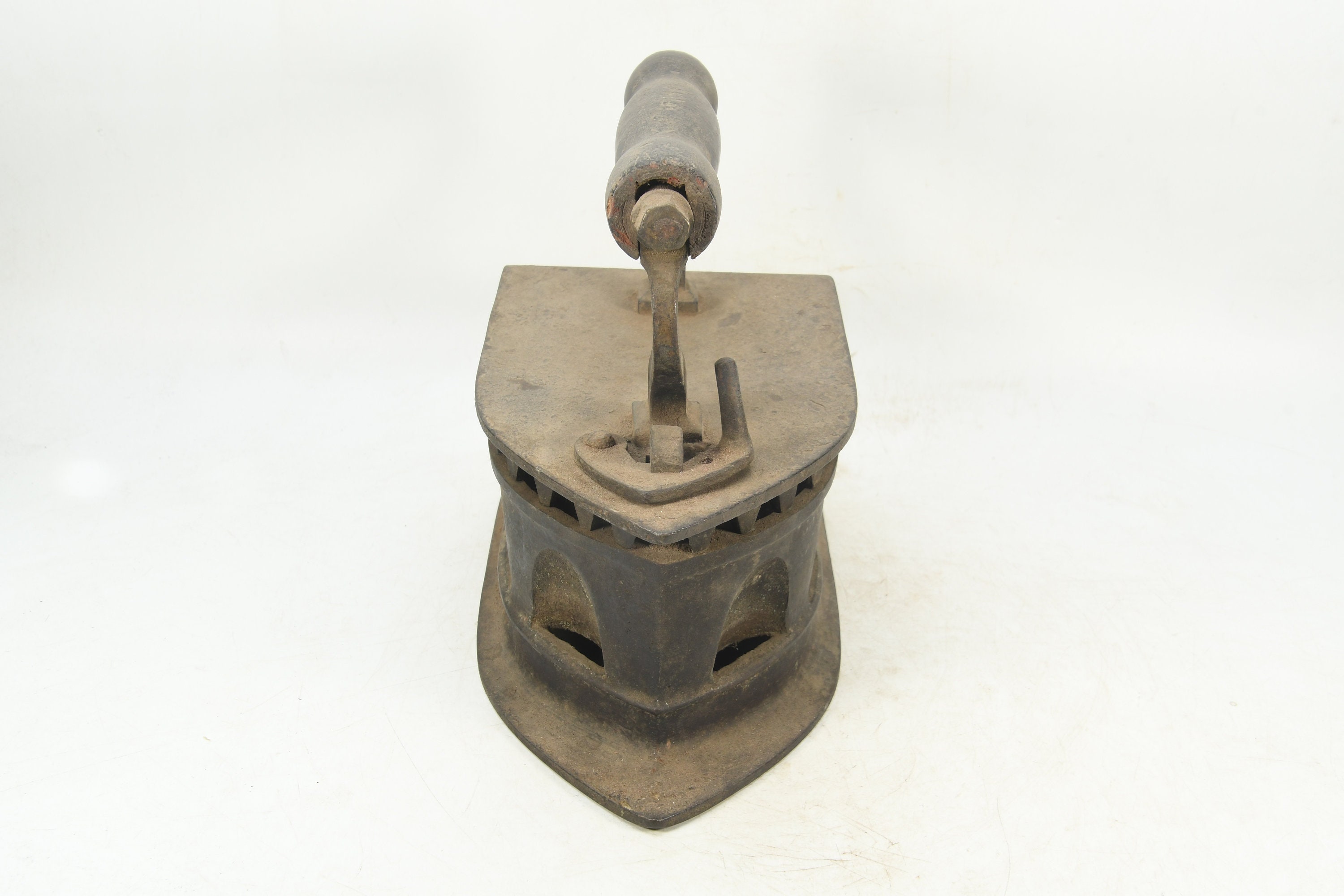 In addition to its decorative value, this vintage charcoal iron can serve as a prop for themed photoshoots, theater productions, or film sets, transporting audiences to a time when life moved at a slower pace. It can also be repurposed as a unique doorstop, bookend, or incorporated into DIY projects for a touch of authentic vintage flair.