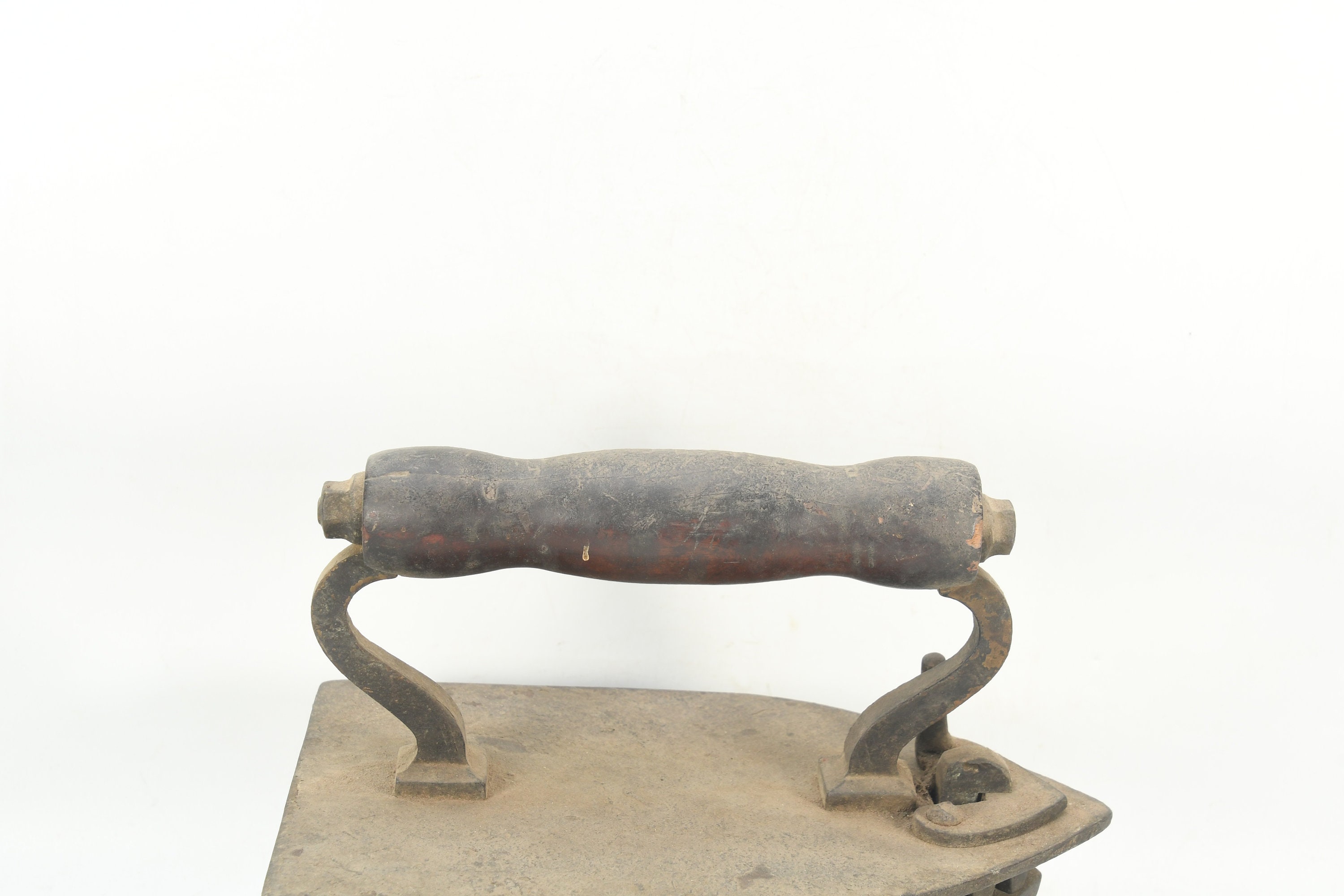 The iron's distinctive shape and intricate design offer a glimpse into the artistry of the past. Its wooden handle, worn with age, bears the marks of countless hours spent tending to the needs of a bustling household. The iron's textured surface, worn and weathered, tells a tale of countless garments that were expertly pressed in its heyday.