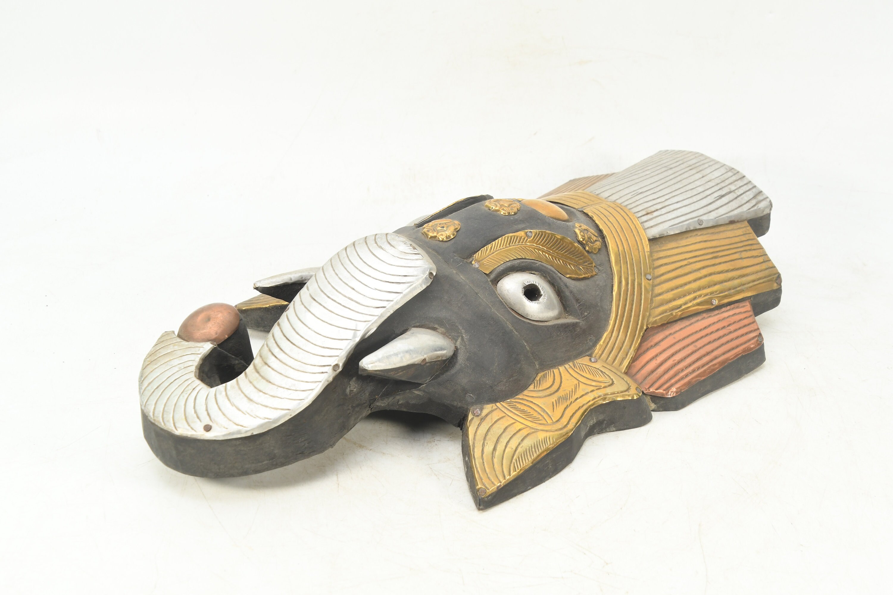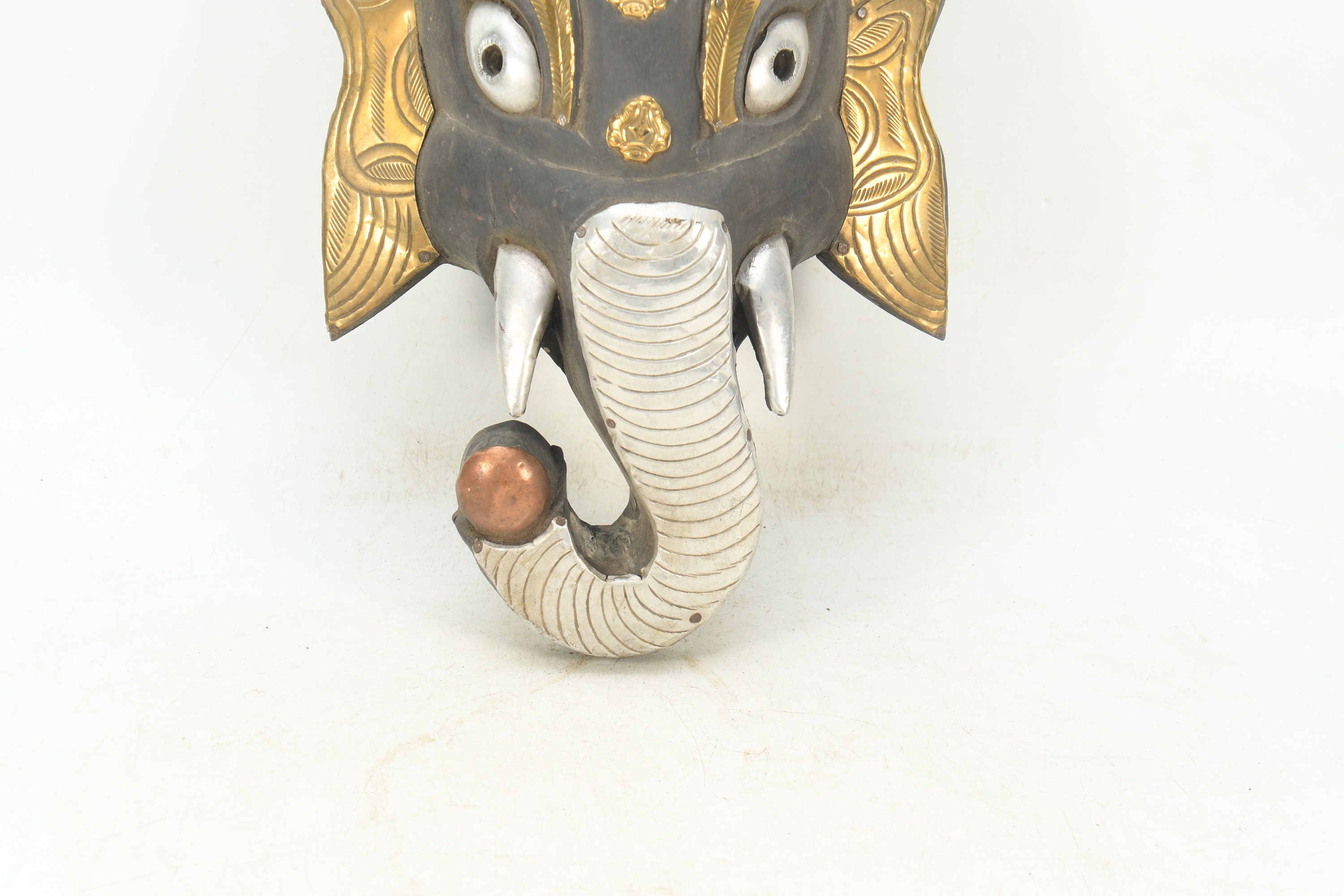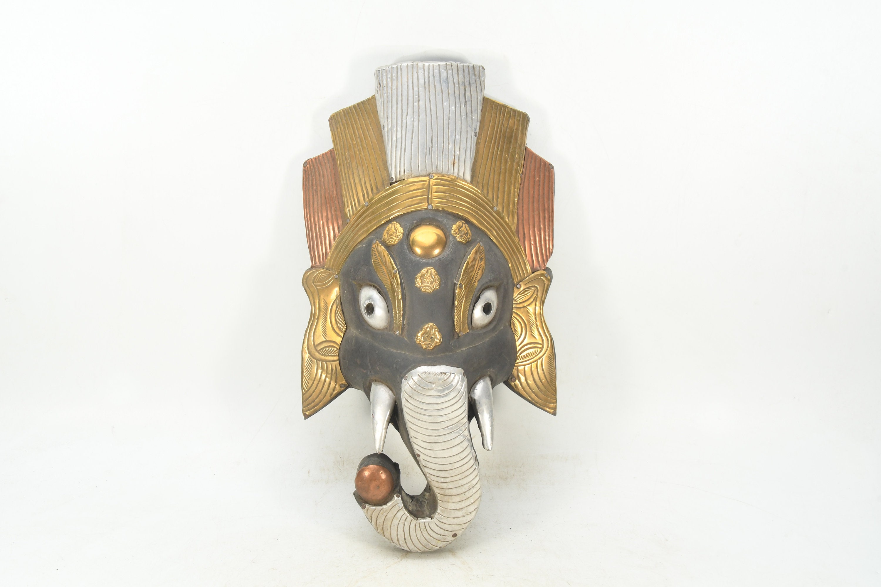 Divine Guardians: Buddhism-inspired Ganesh Head Wall Hanging and Shaman Mask Decorative Himalayan Folk Nepal