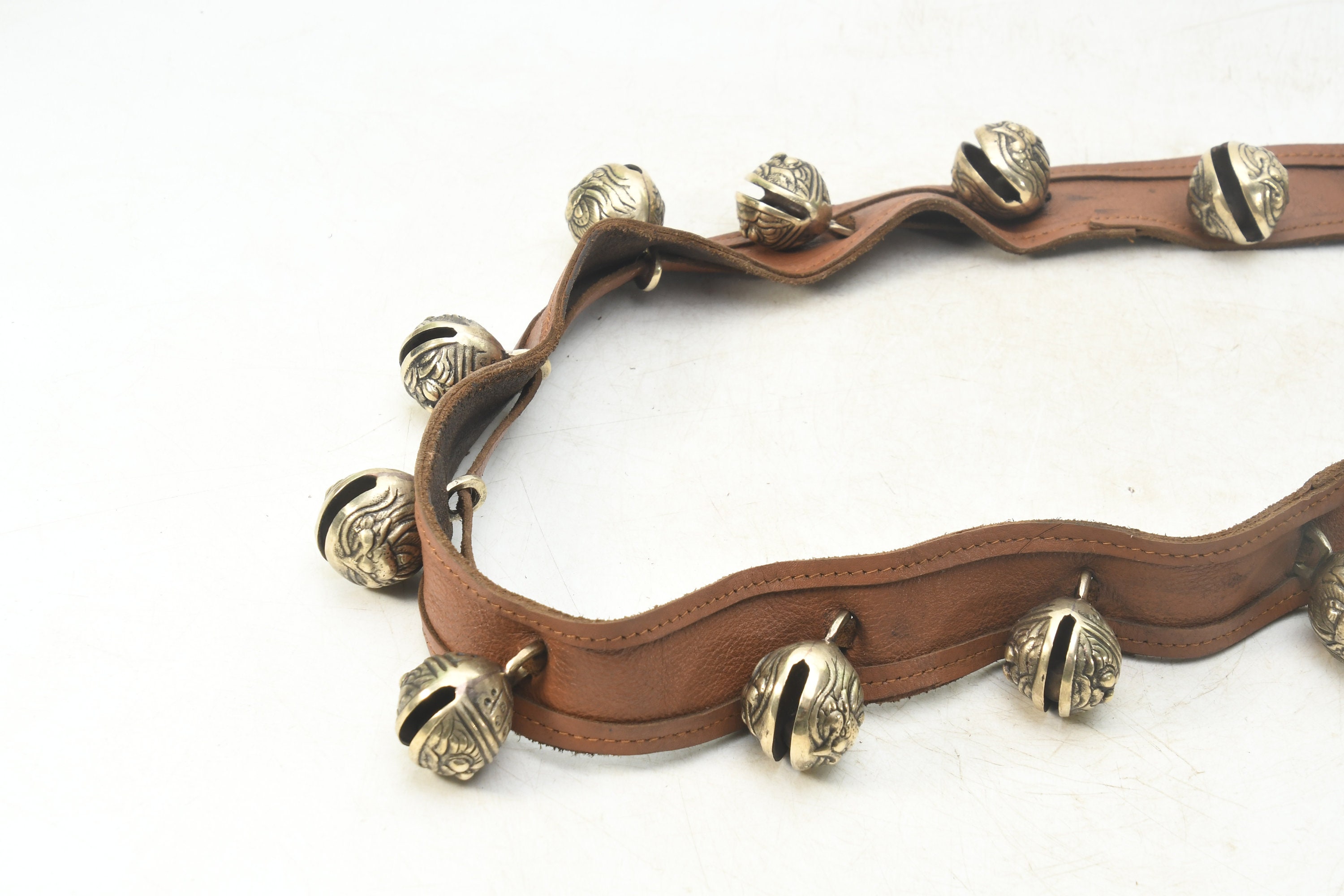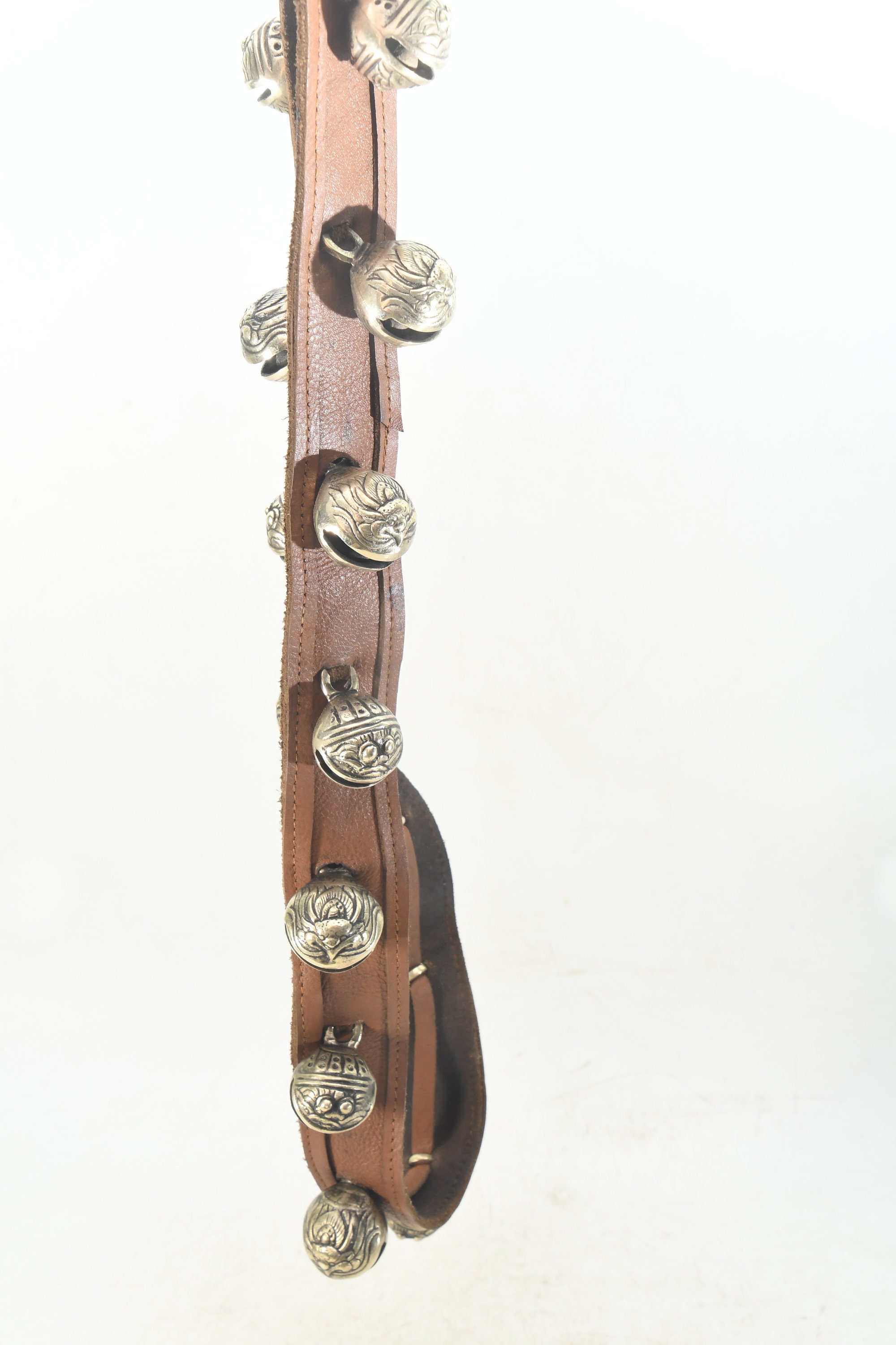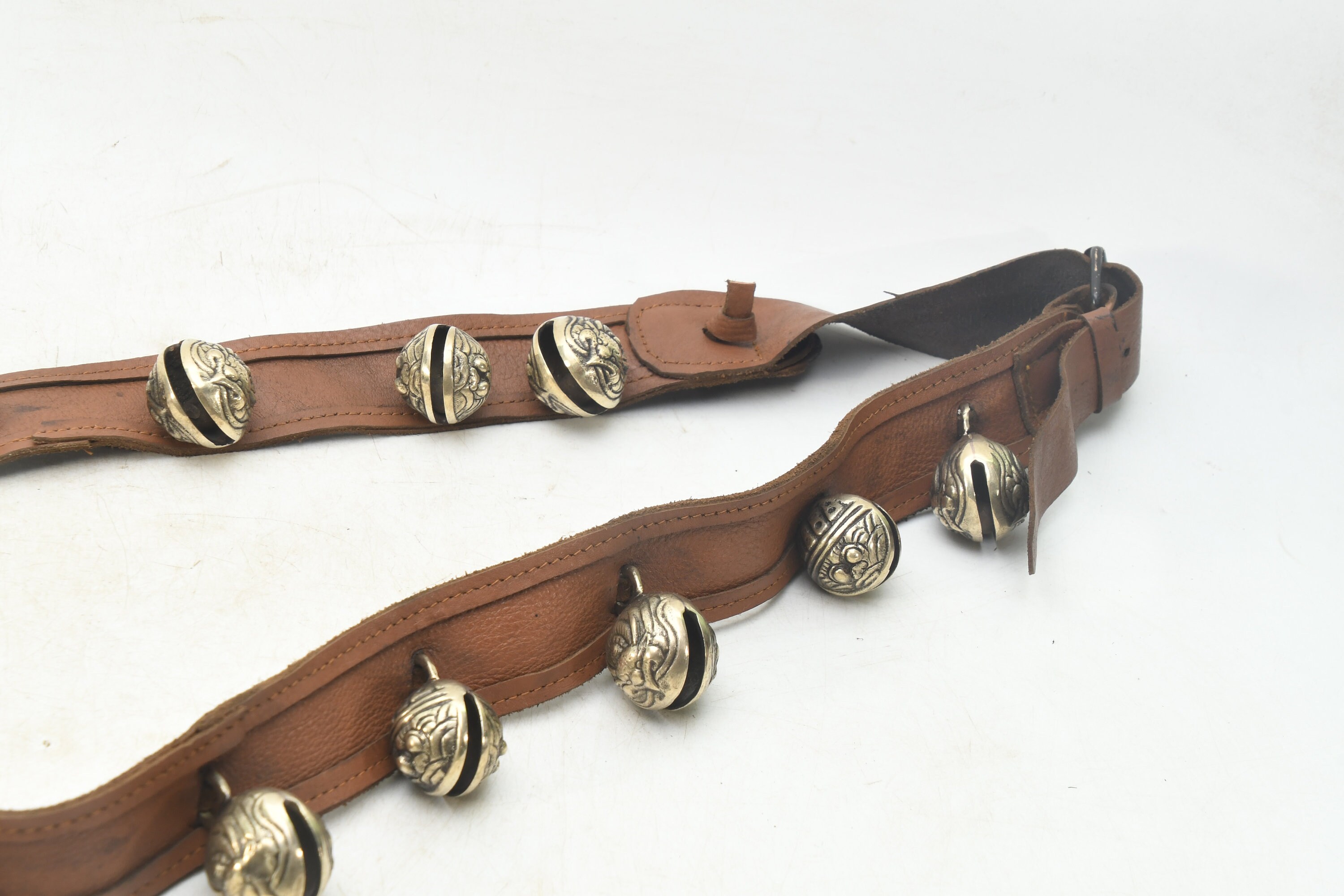 Brass Bell Leather Belt: Handcrafted Buddhist Meditation Prayer