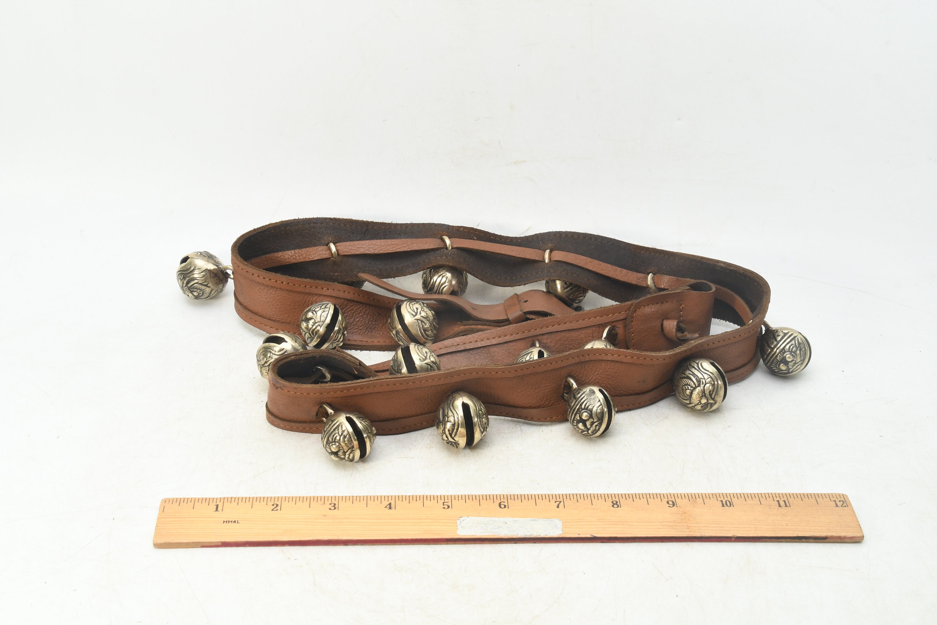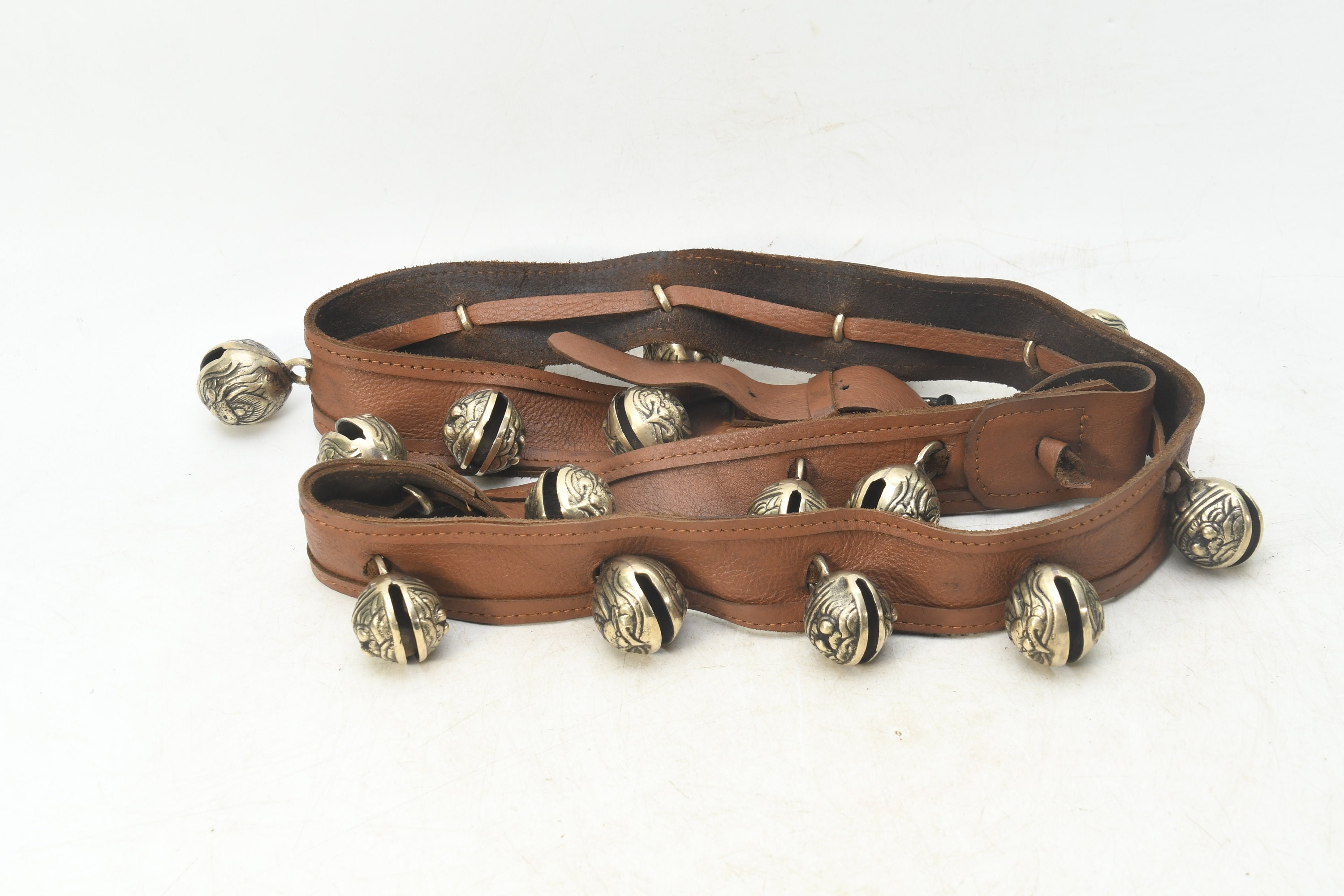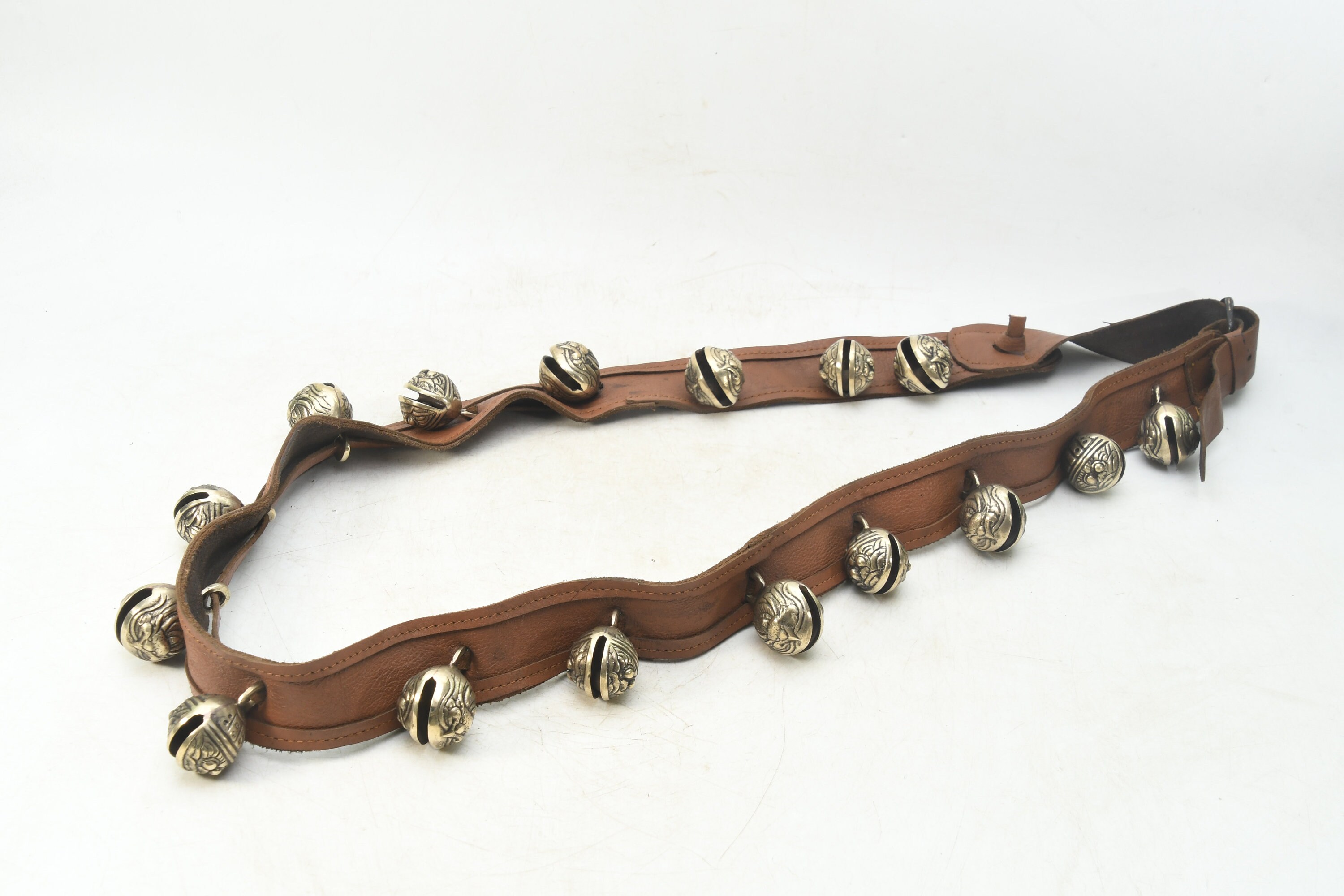 Brass Bell Leather Belt: Handcrafted Buddhist Meditation Prayer