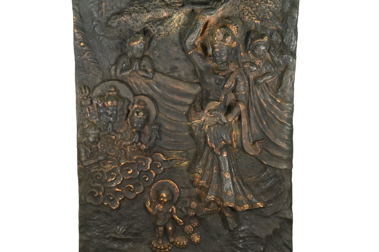 Mayadevi's birth and Siddhartha Gautama's birth are often depicted in Buddhist art and sculptures. In these depictions, she is portrayed as a young and graceful woman, often standing upright, holding the branch of the sal tree. Sometimes, she is shown with a white elephant, symbolizing the auspicious dream that foretold the birth of the future Buddha.