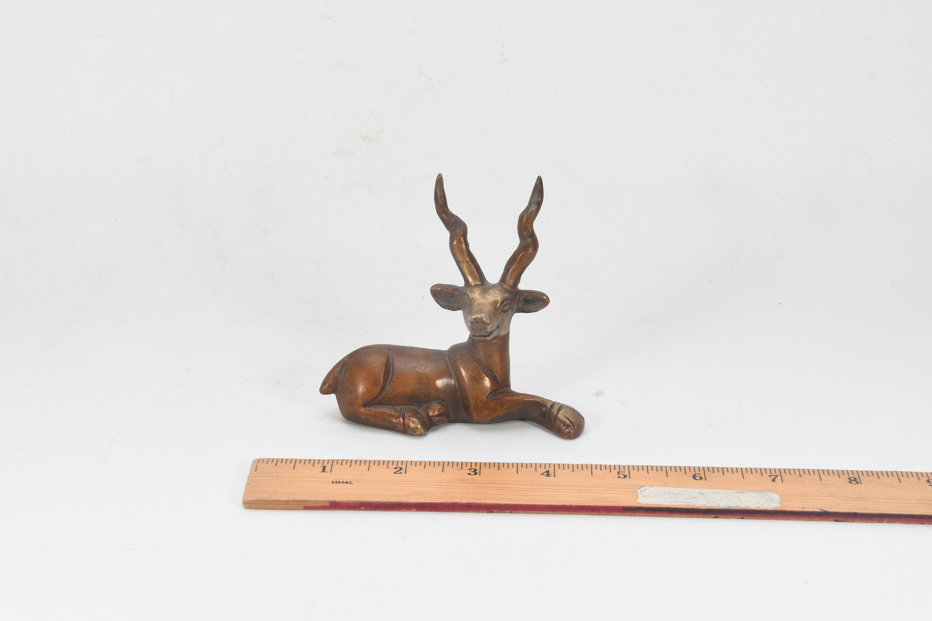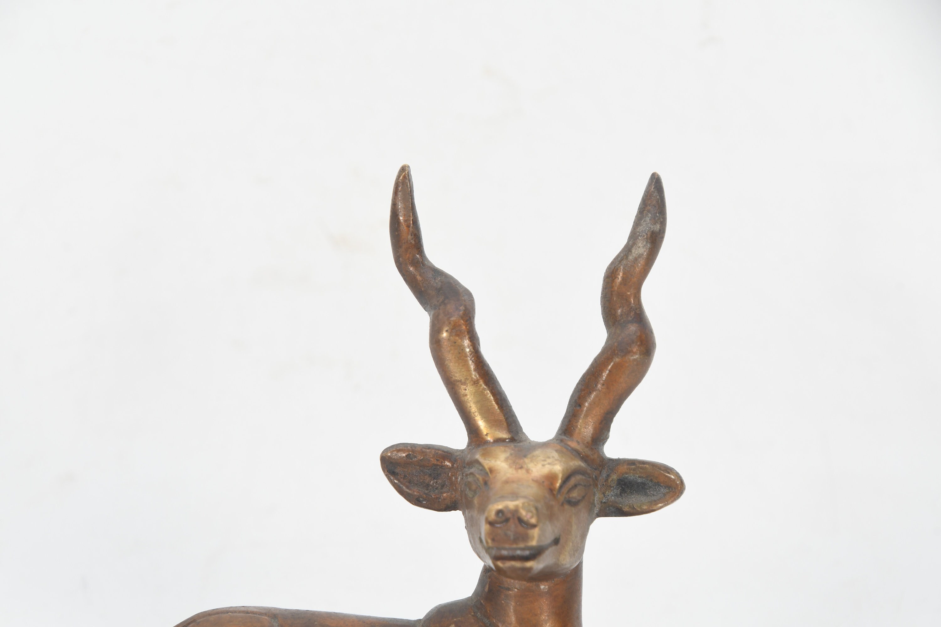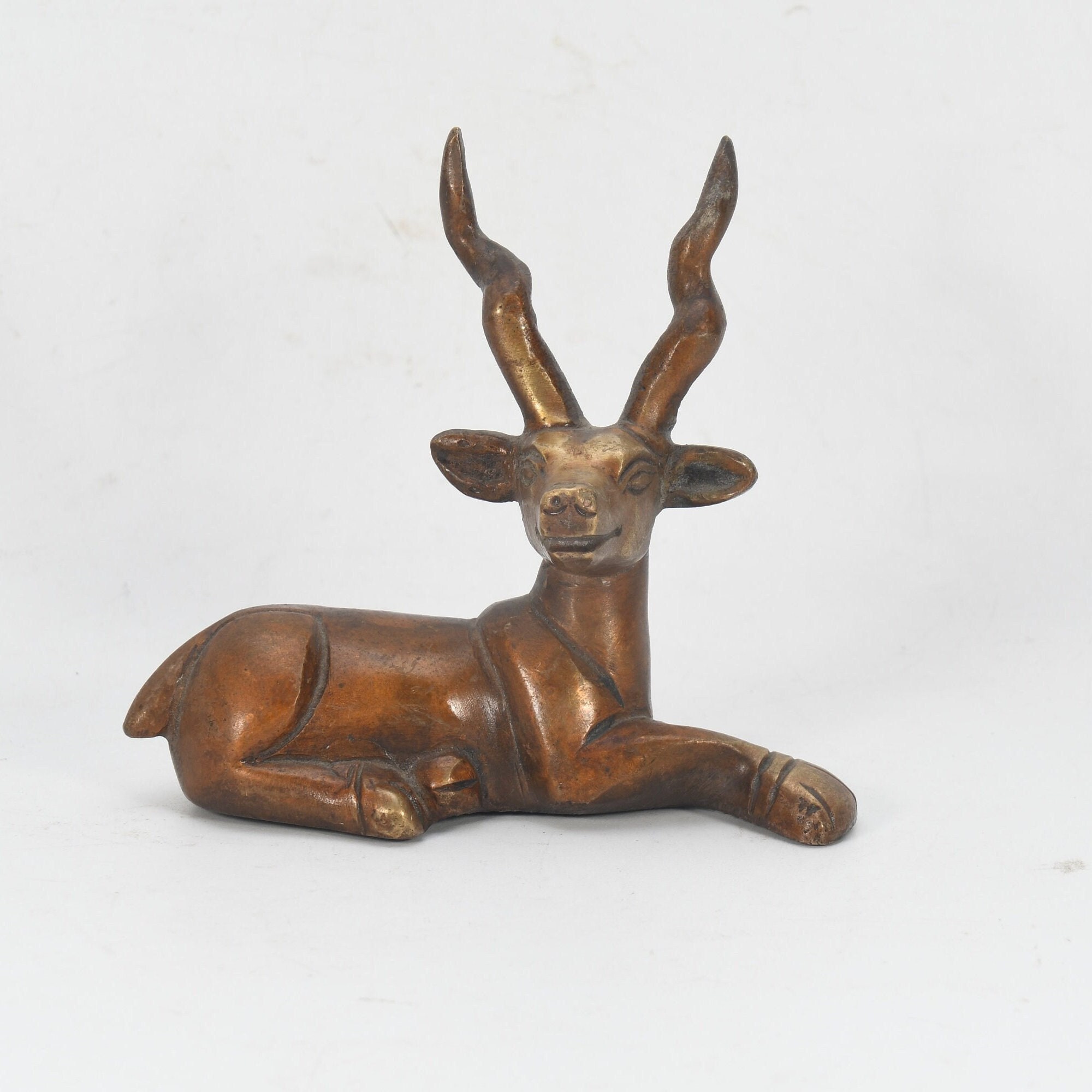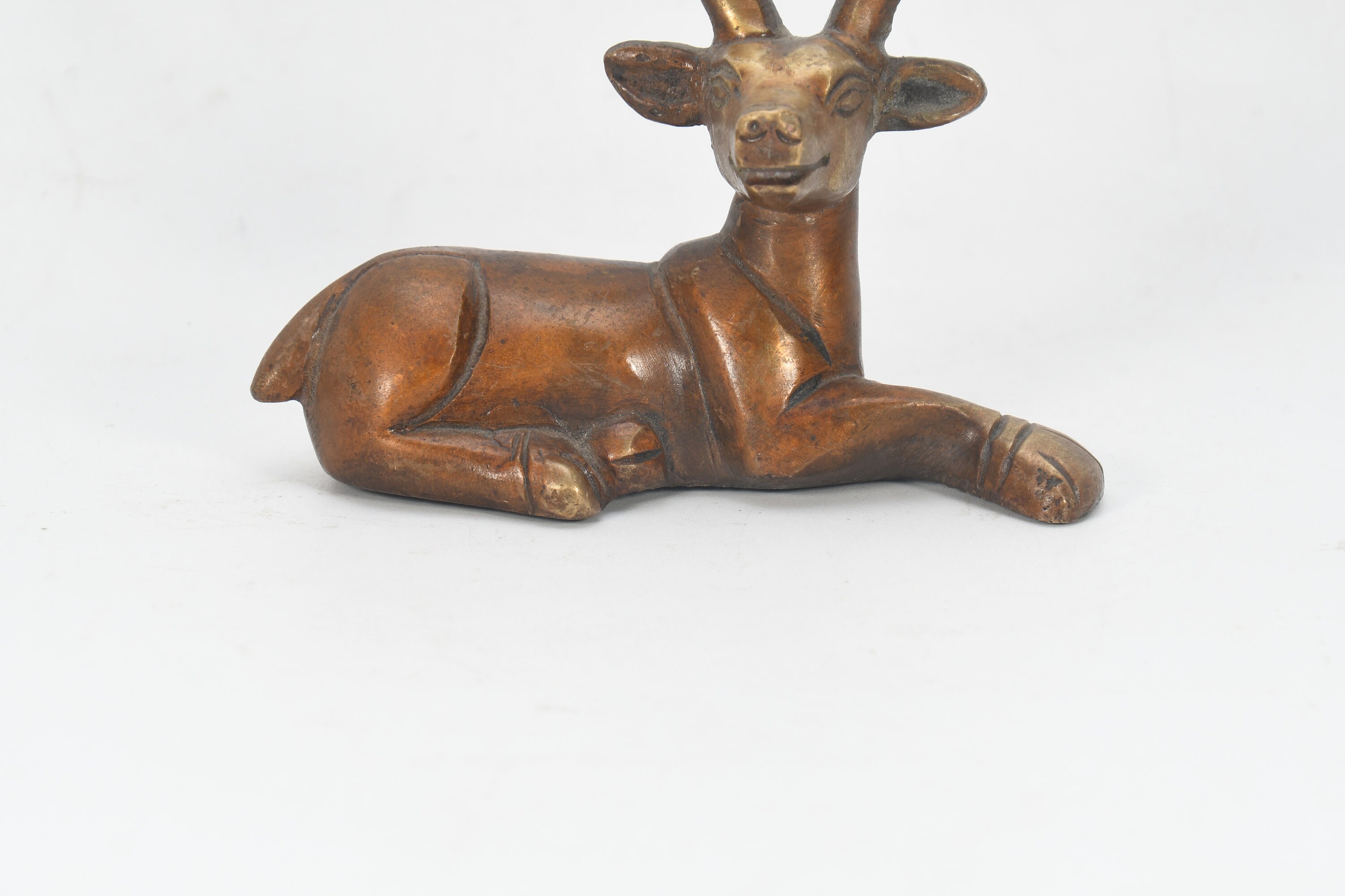 Antique Brass Resting Deer Figurine, Tibetan Ritual Art Sculpture