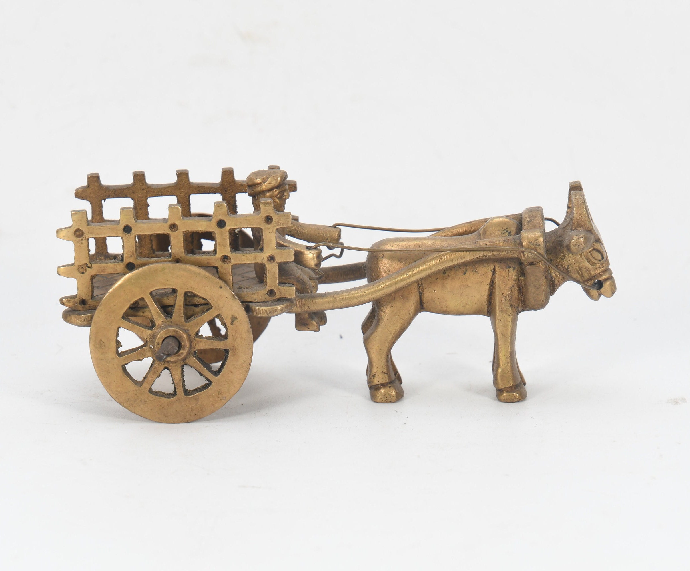 Handcrafted Brass Bullock Cart Figurine: Jaali Design Home Decor