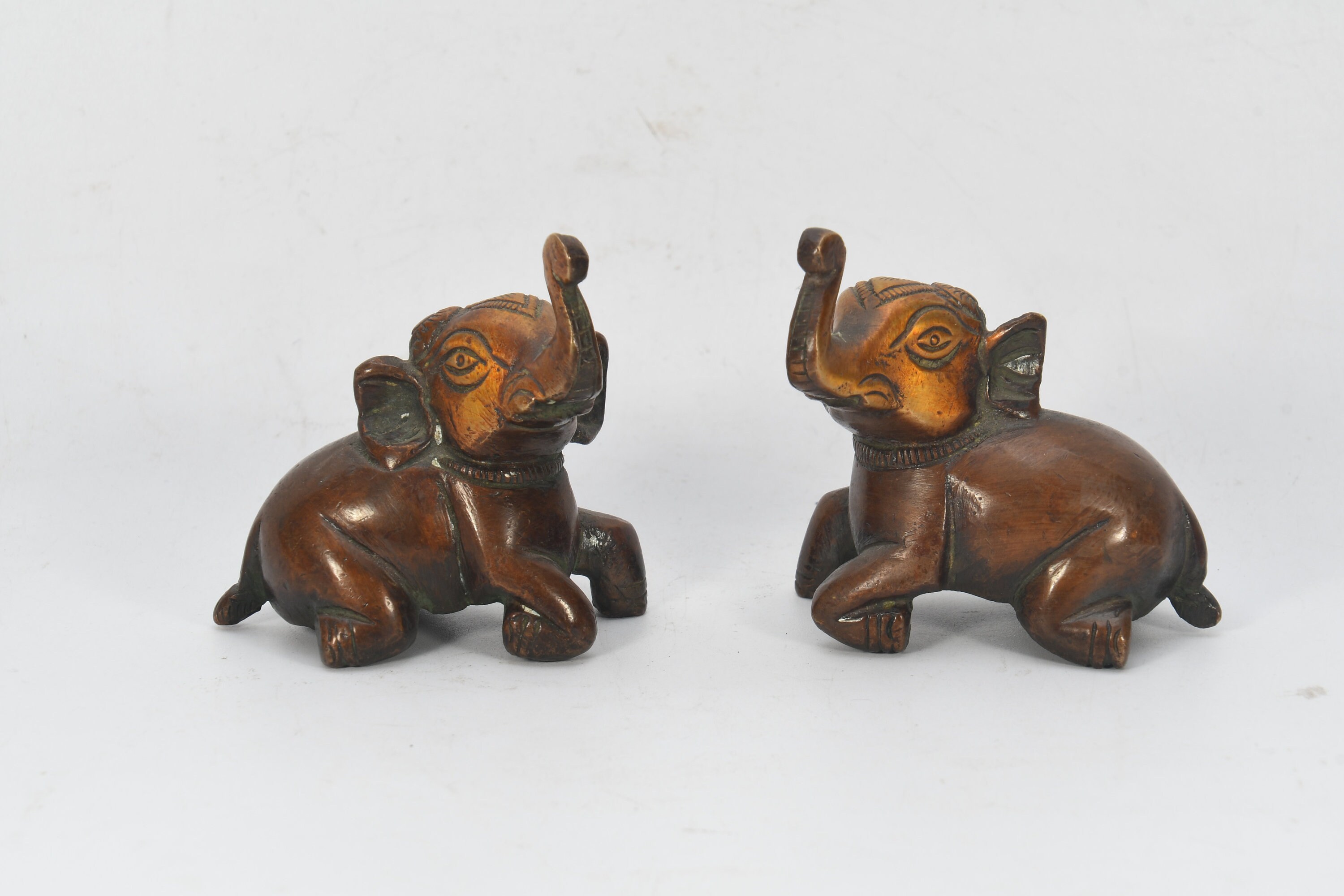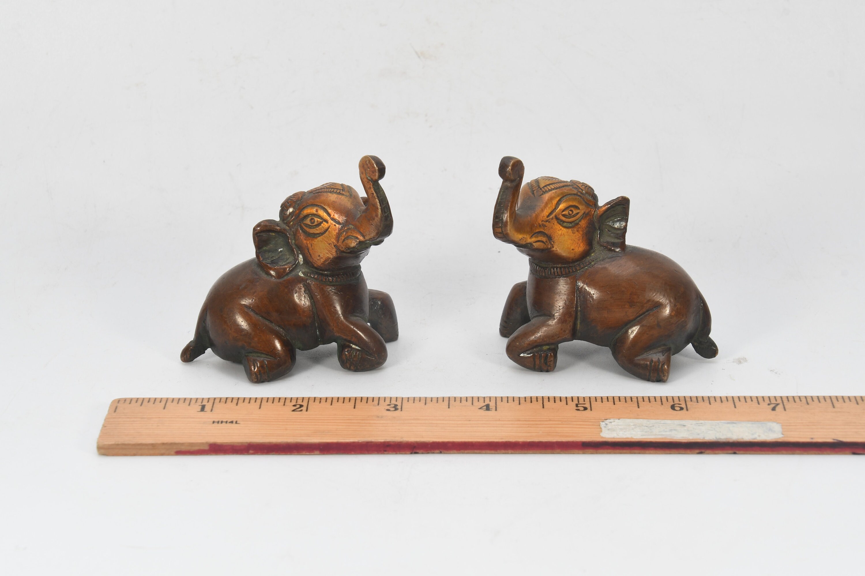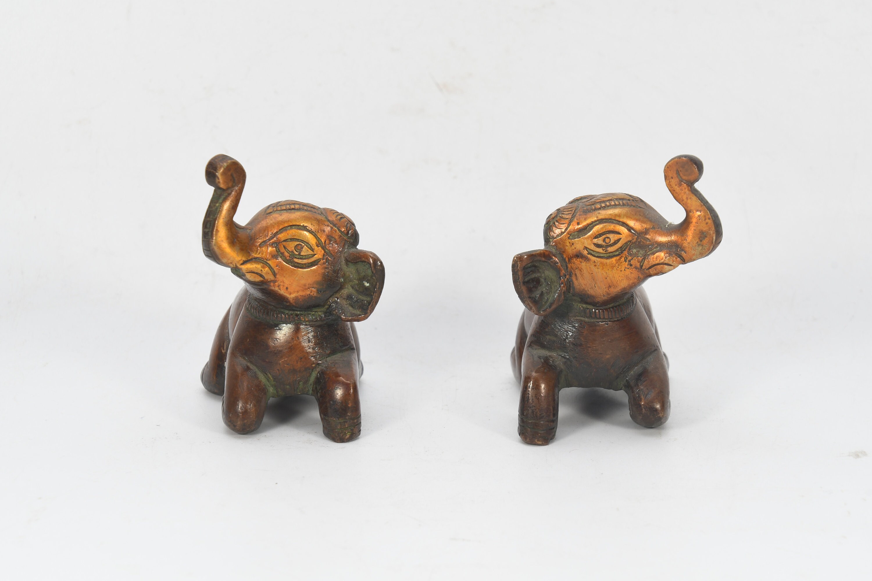 Brass Elephant Duo Statue: Handcrafted Nepal Figurine