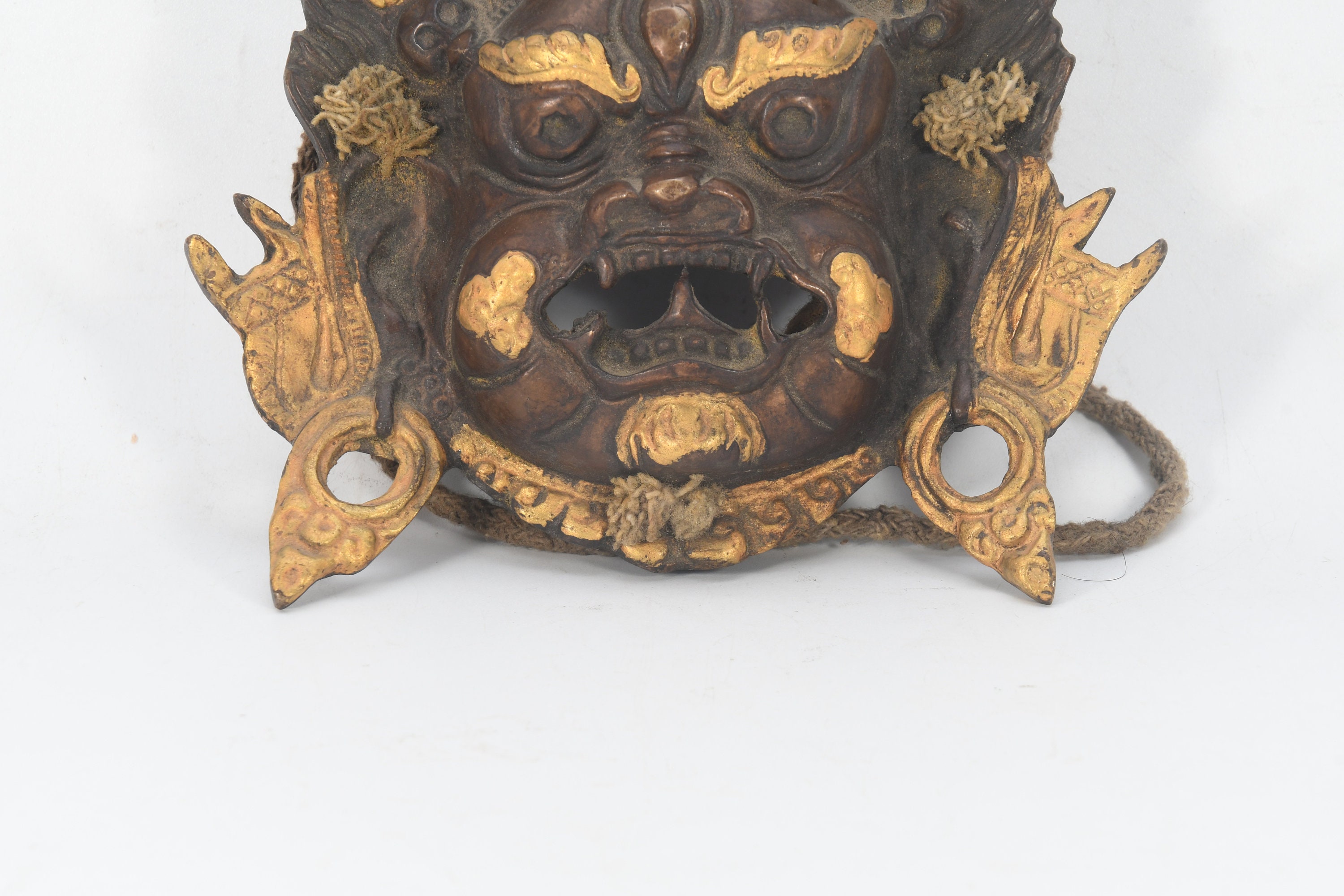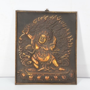 Handcrafted Copper Bhairav Mahakala Mask: Tibetan Wall Hanging