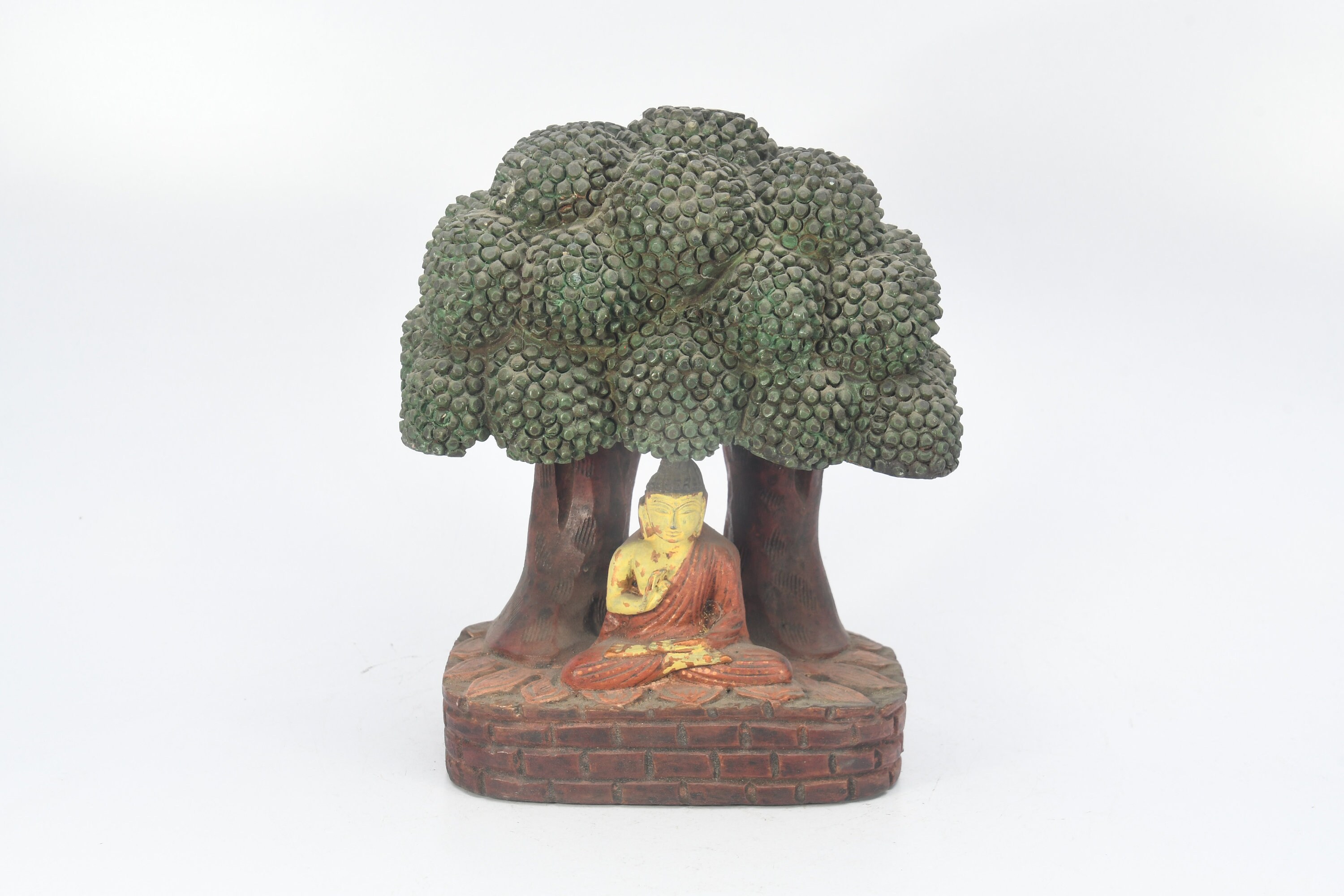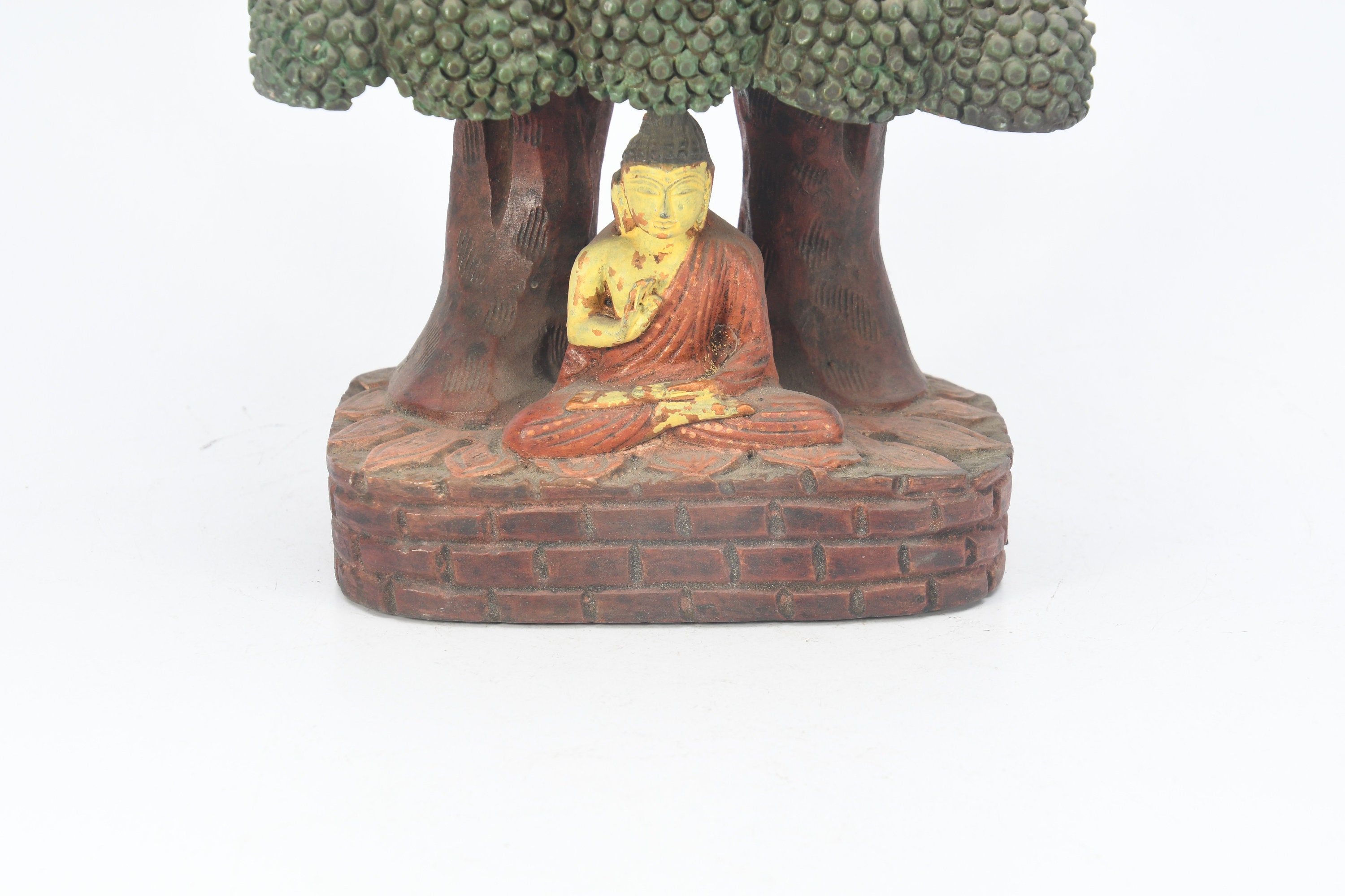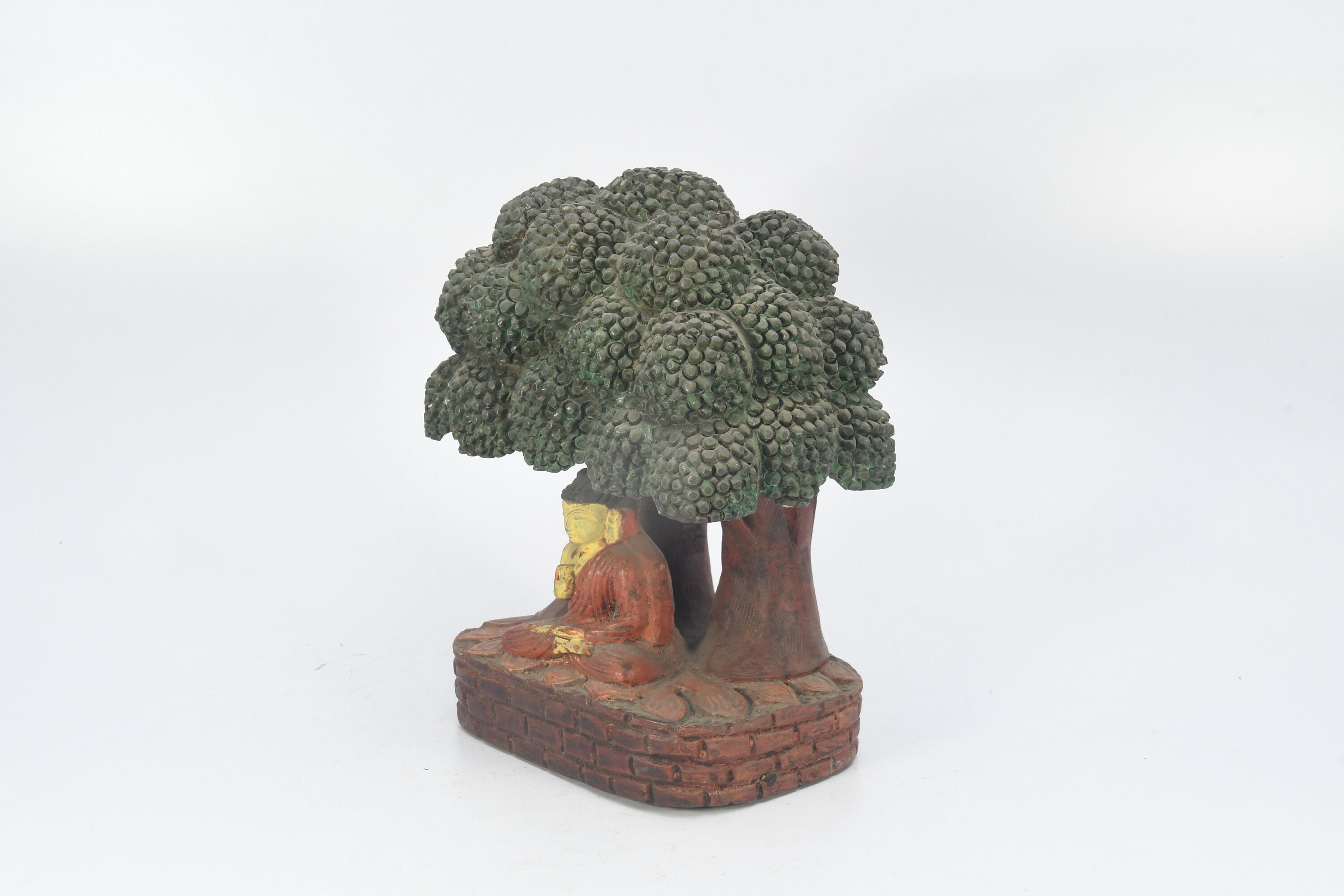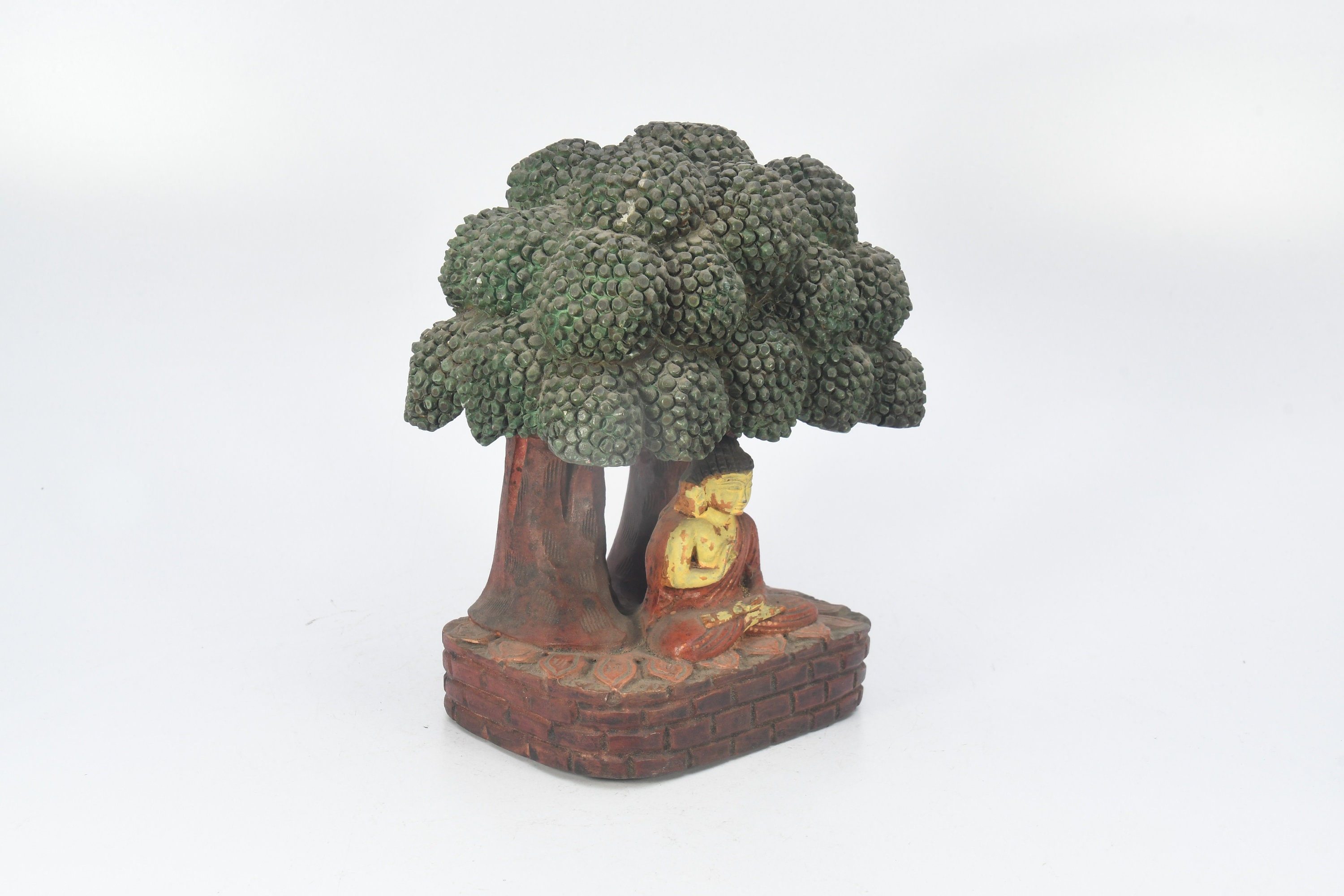 Resting Buddha Statue Under Bodhi Tree, Stone Figurine