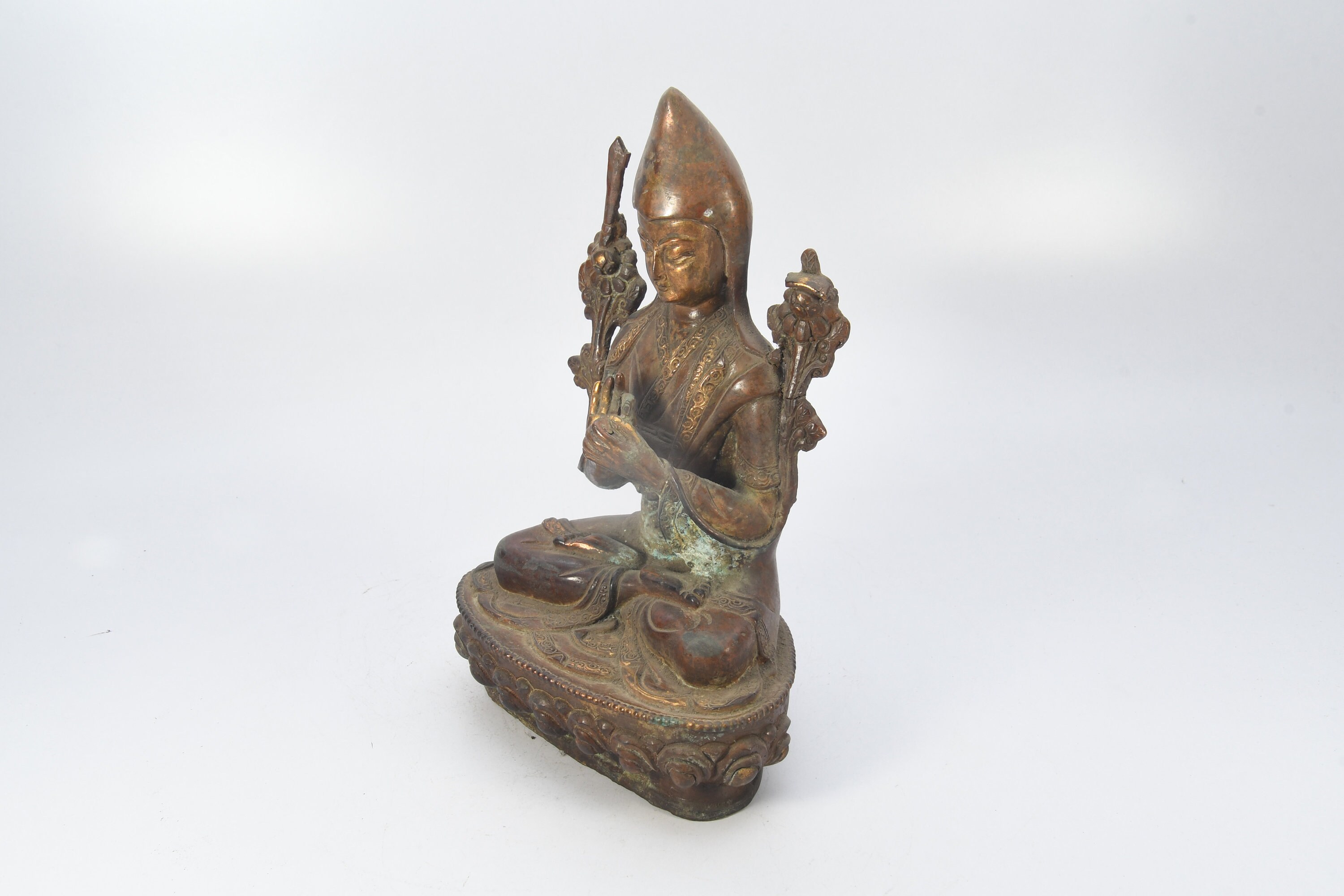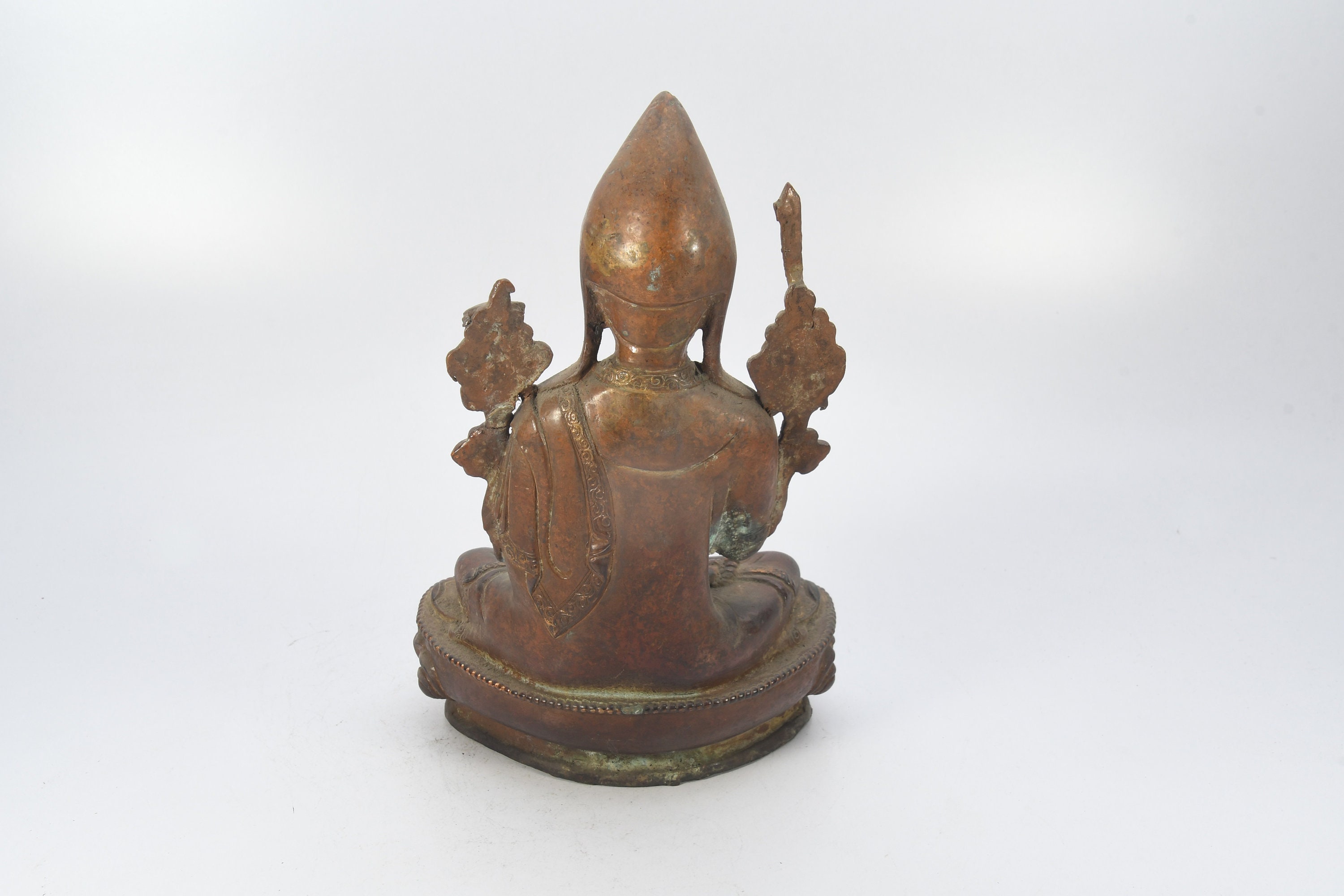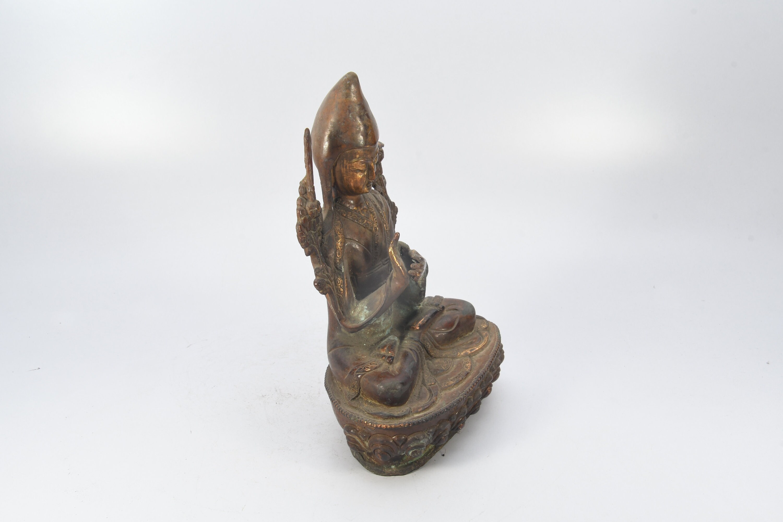 Tibetan Tsongkhapa Handmade Antique Brass Craft Sculpture Decor Buddha Figurine Ethnic Decor Art Nepal