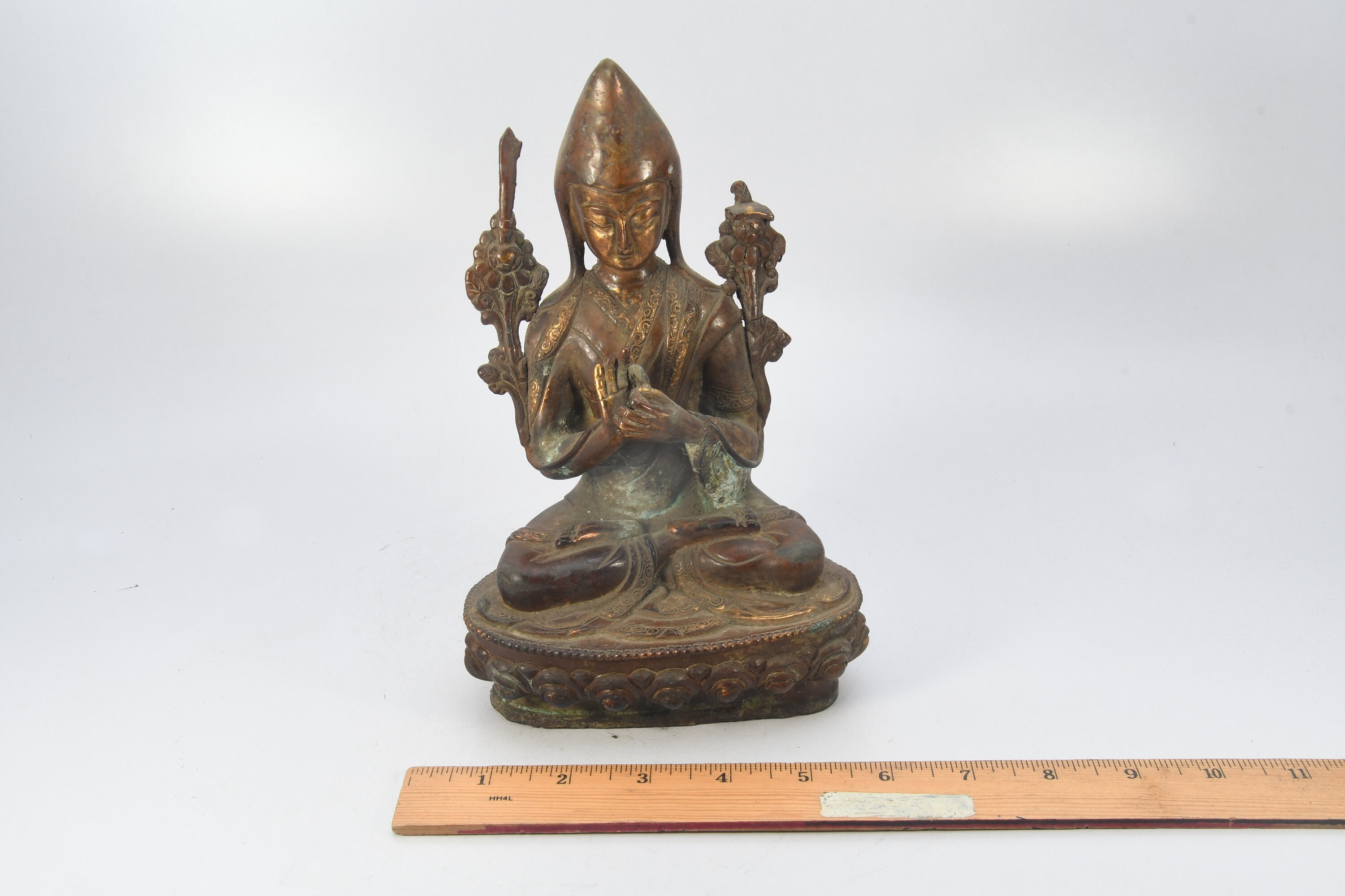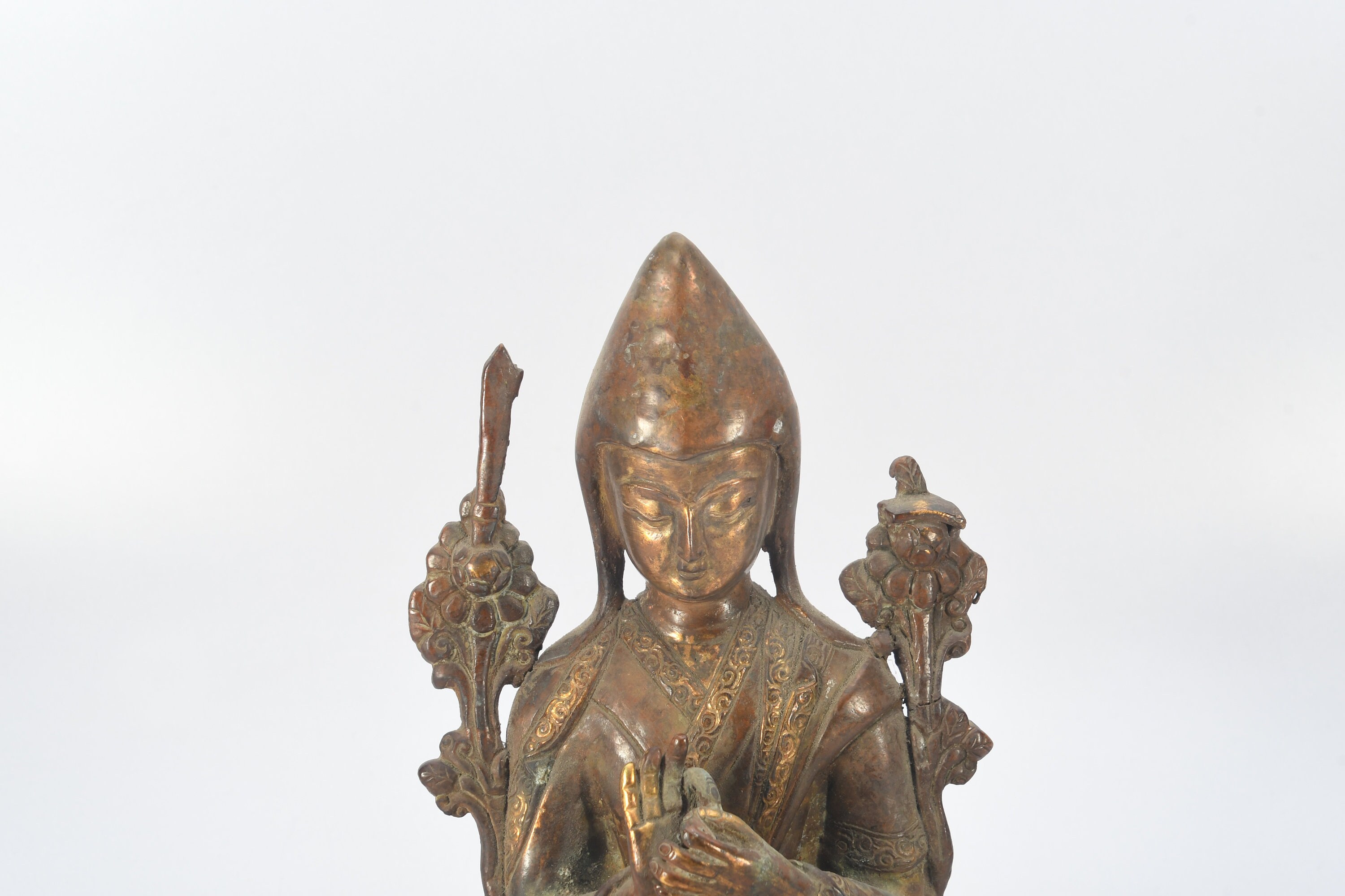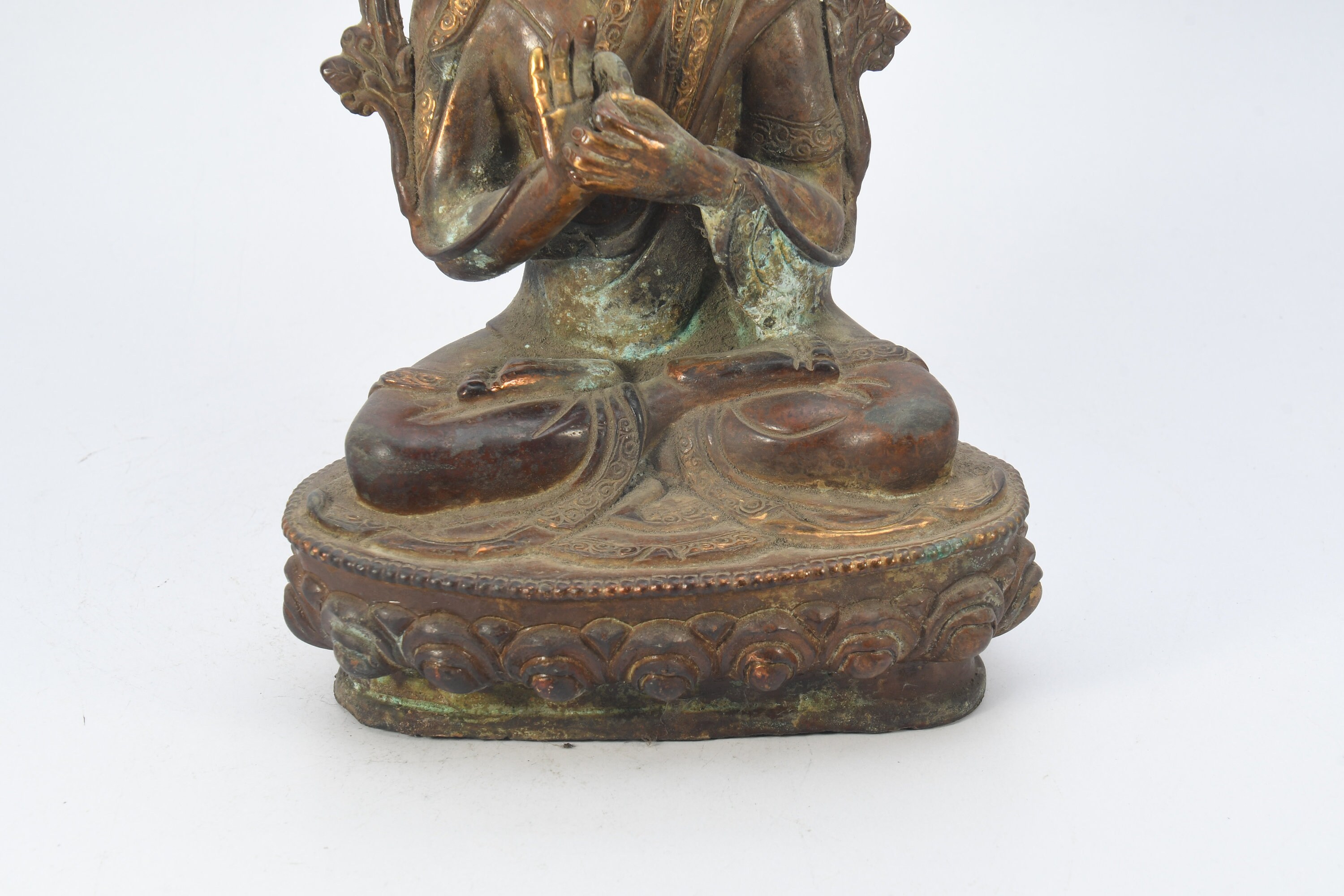 Tibetan Tsongkhapa Handmade Antique Brass Craft Sculpture Decor Buddha Figurine Ethnic Decor Art Nepal