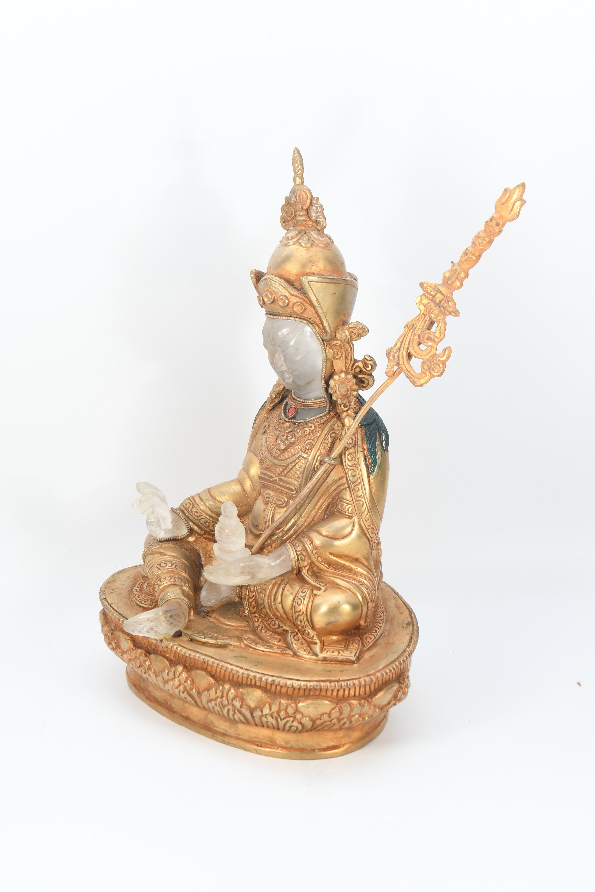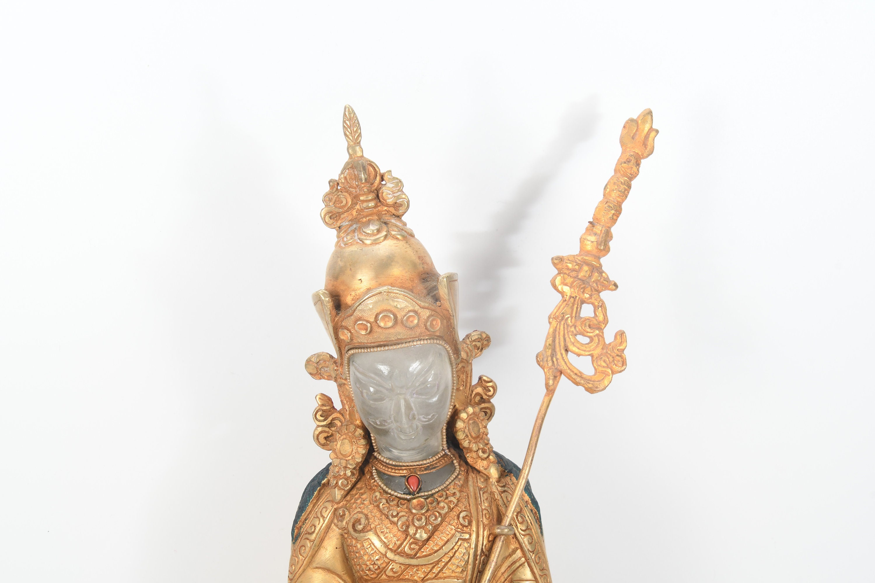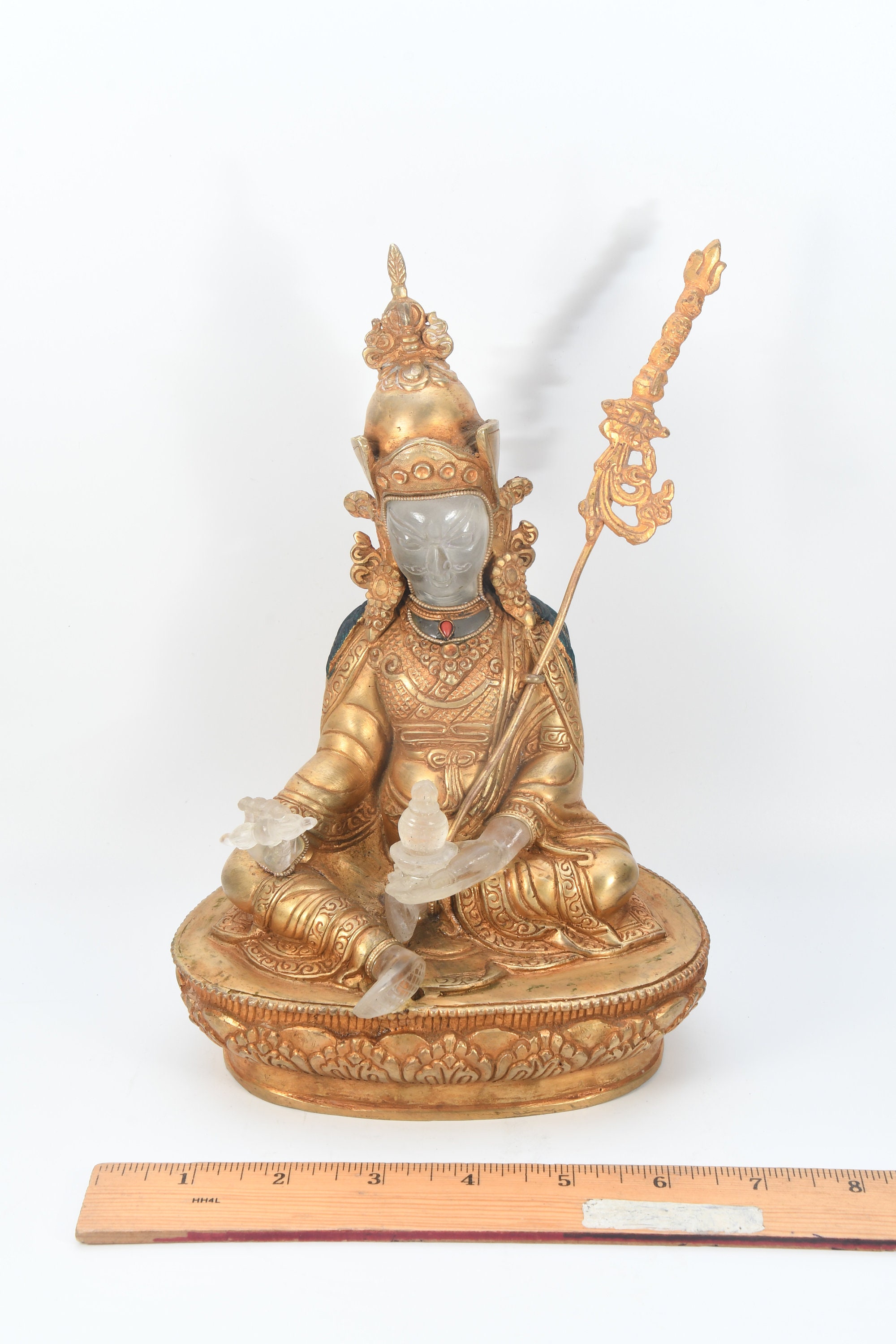 Handmade Guru Rinpoche Gold Statue – Antique Crystal Tibetan Decor