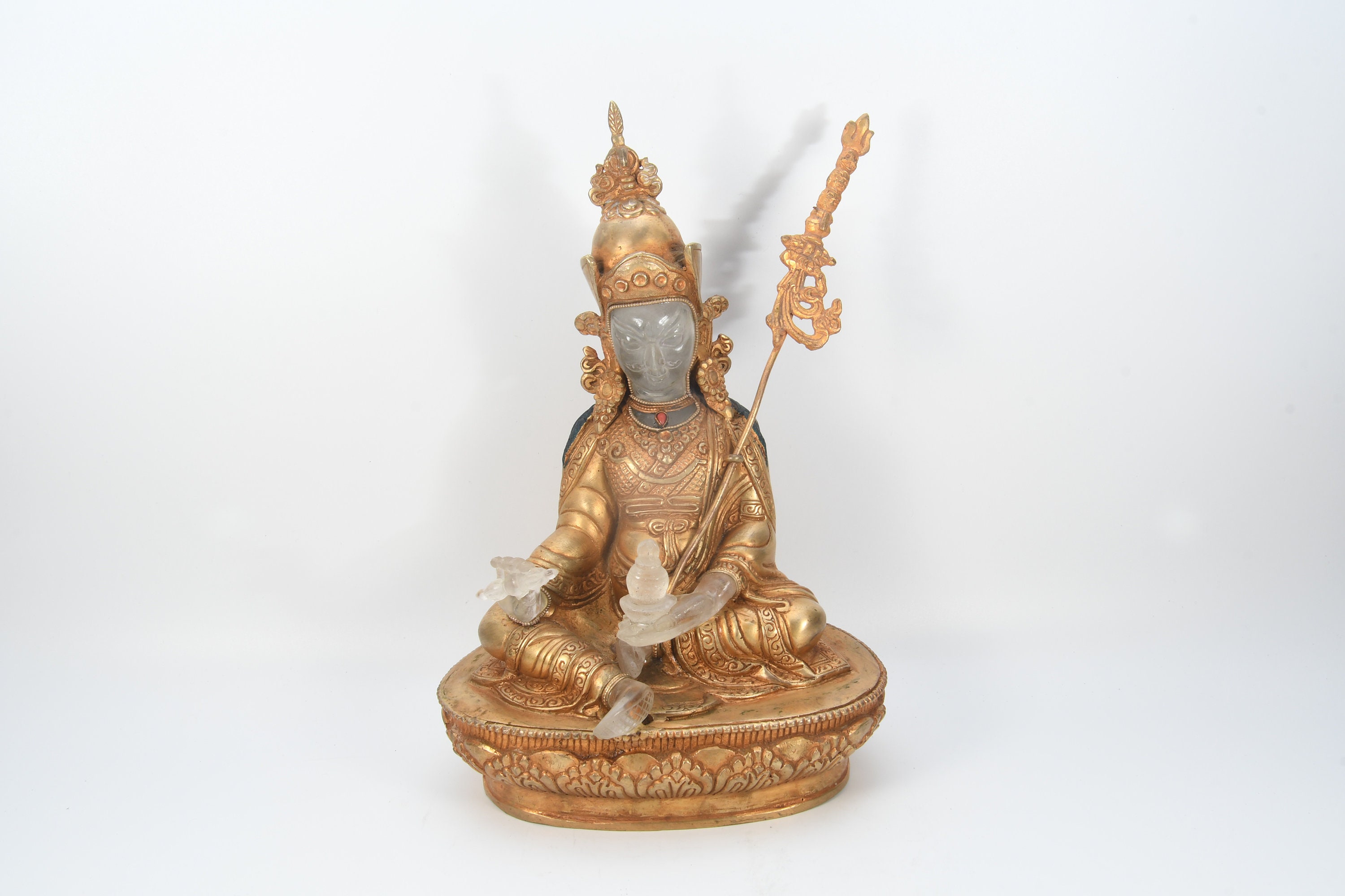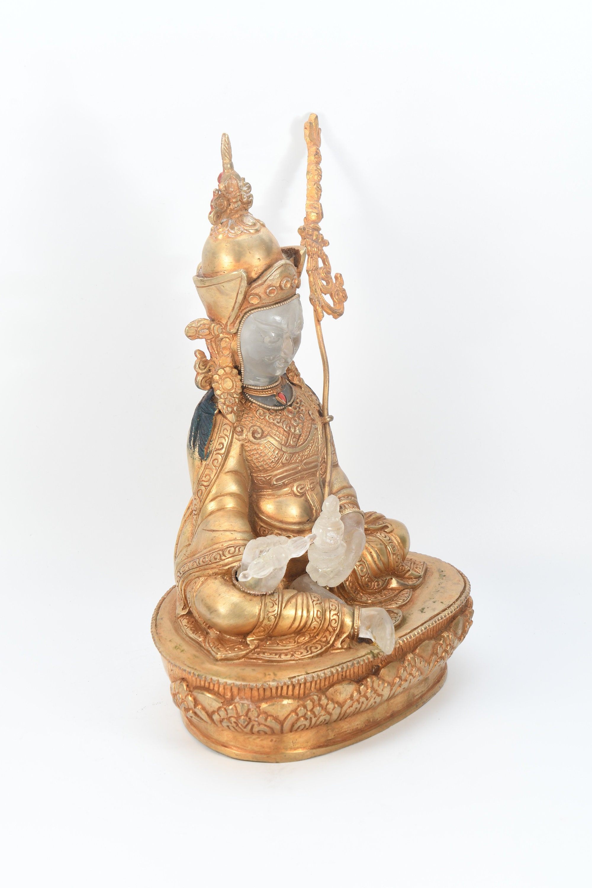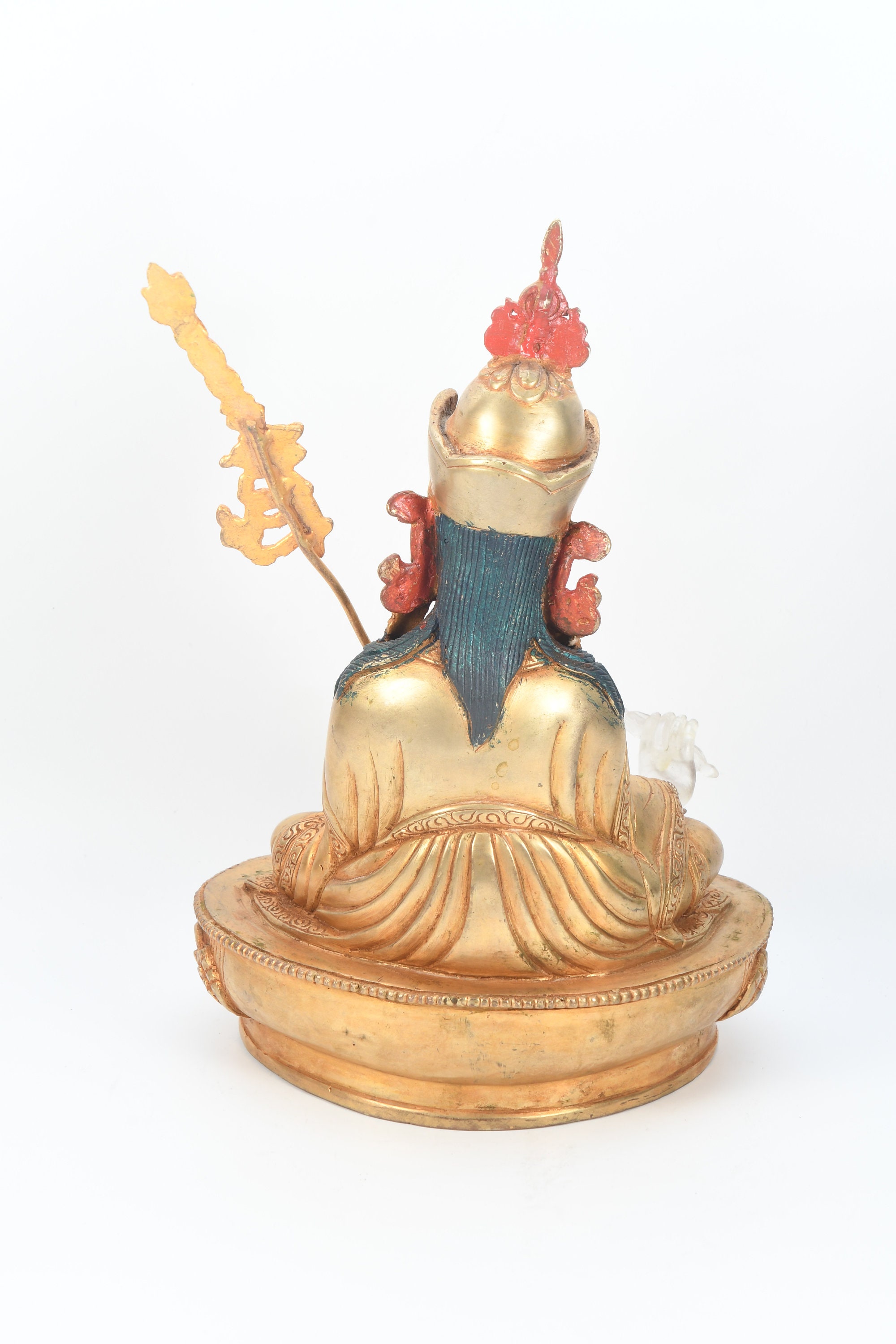 Handmade Guru Rinpoche Gold Statue – Antique Crystal Tibetan Decor