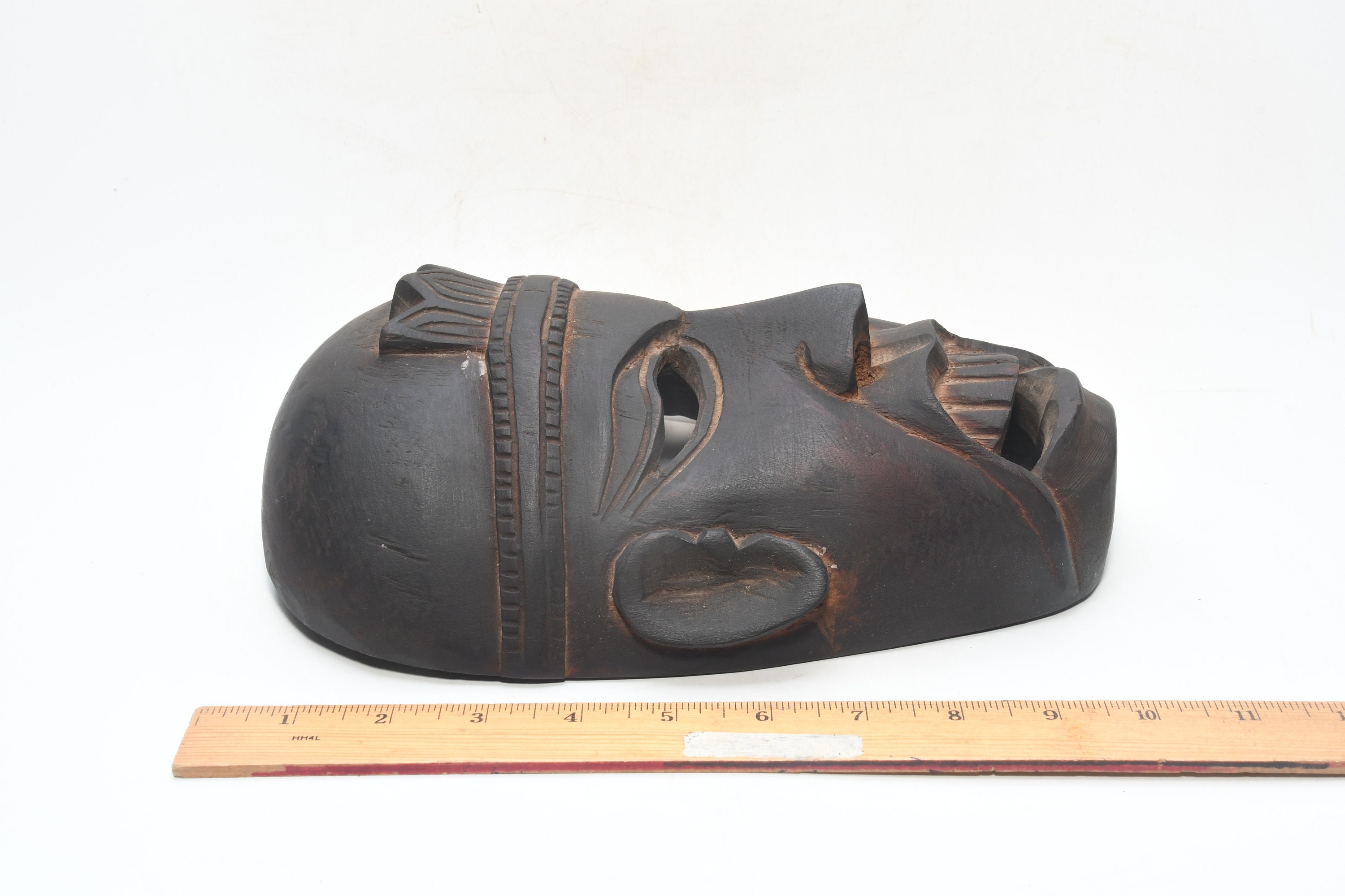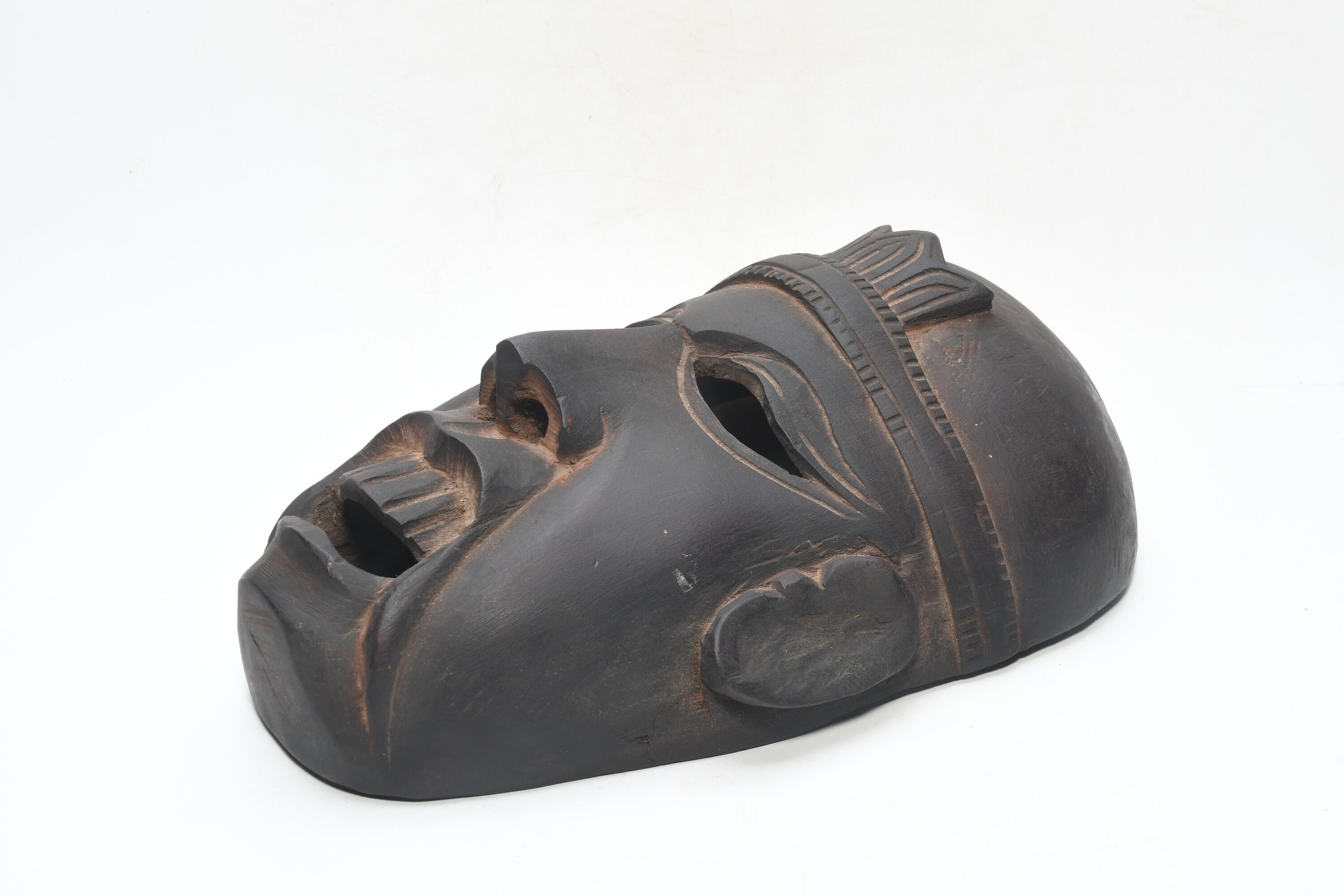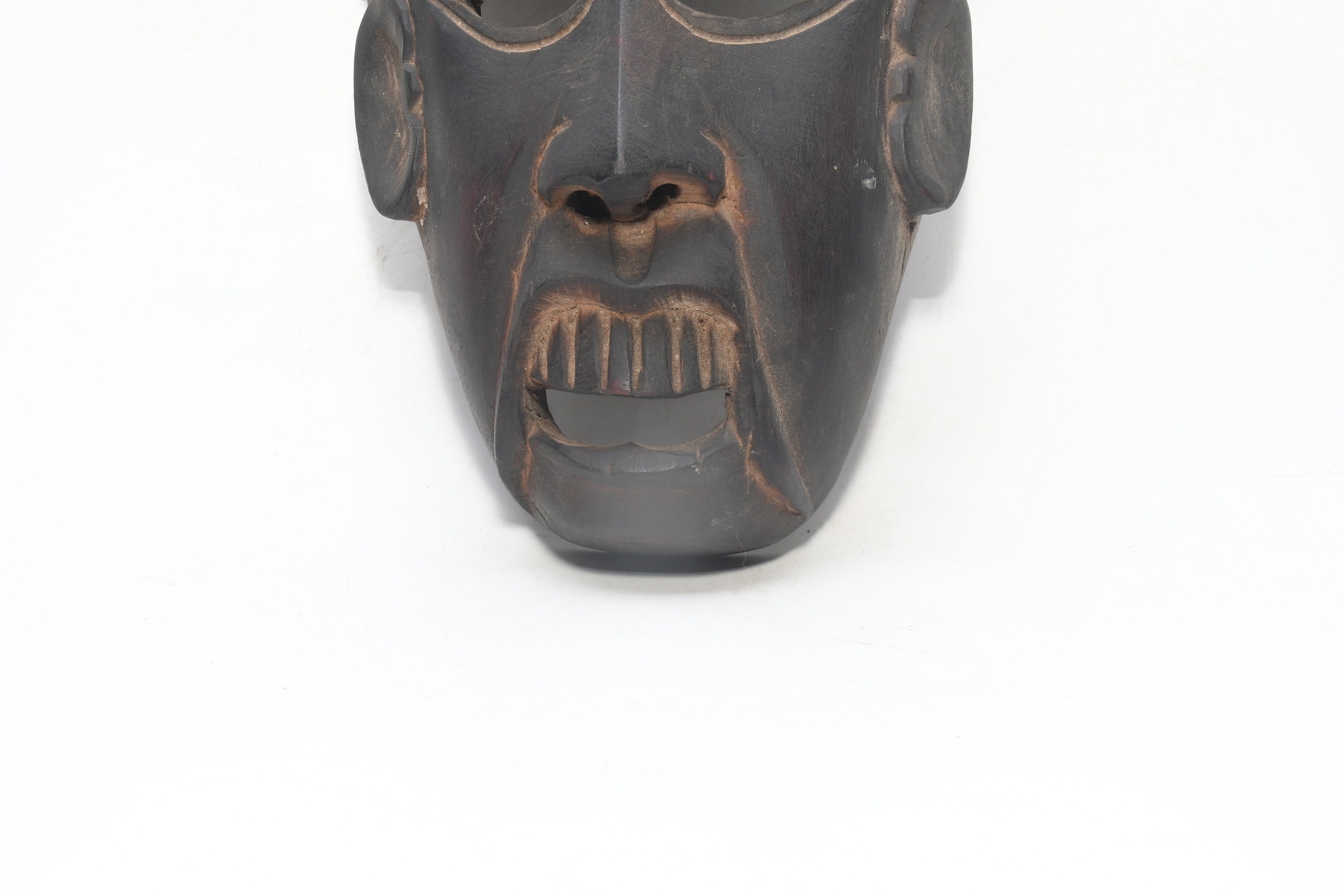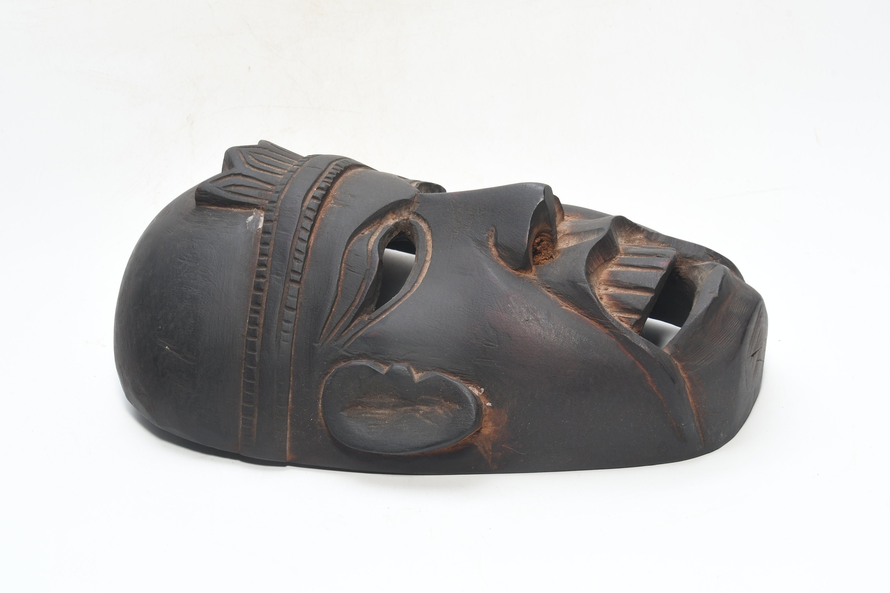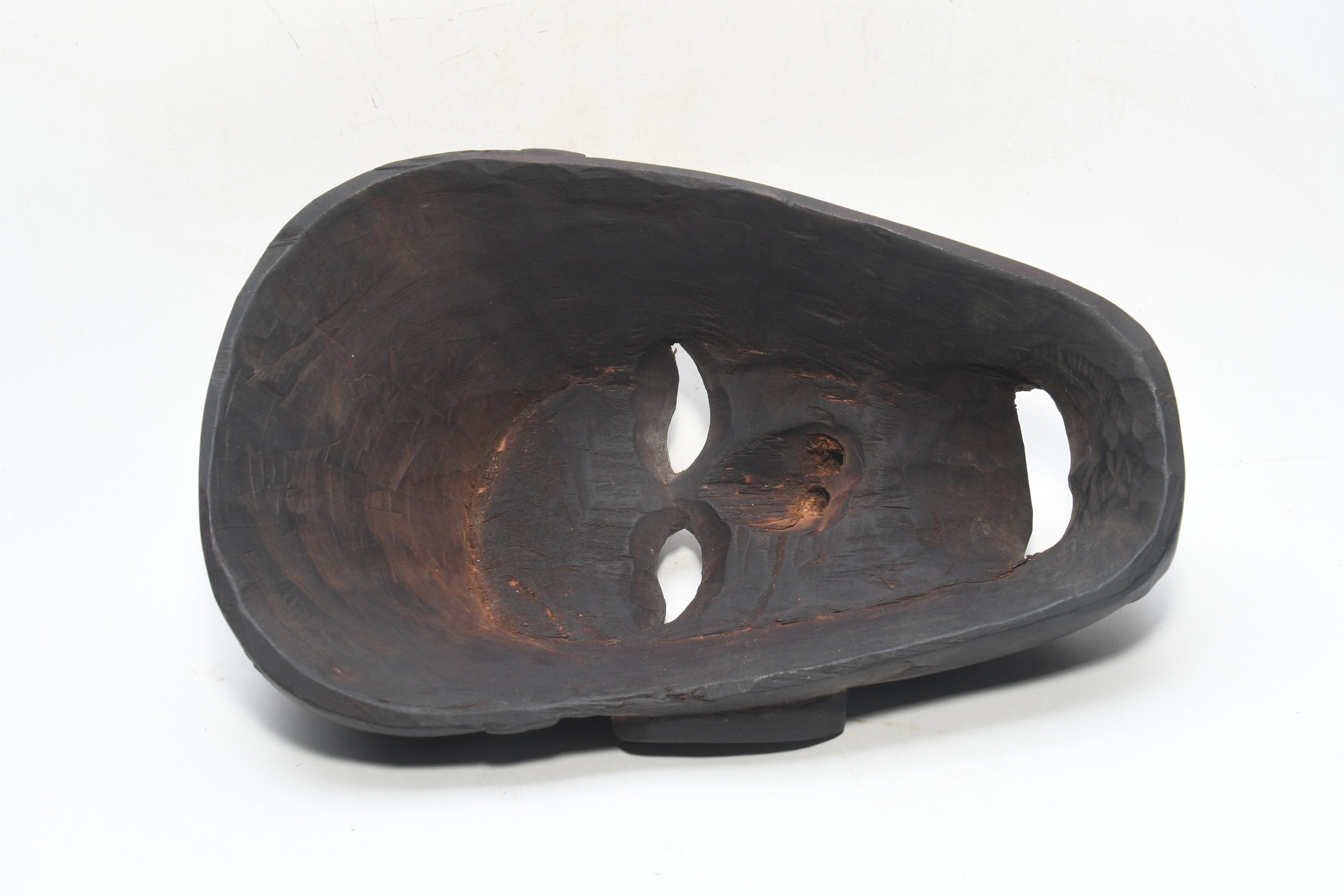This Is a Rare Tharu Reverse Shaman Exorcism Mask That Was Hand Carved by a Tharu Shaman. The Tharu People Inhabit the Terai Region of Nepal and Some Areas of Tibet as Well. Shamanic Masks Like This Are Used in Religious Rituals, Festivals and Exorcisms by Shaman and Sometimes by Buddhist Monks.
