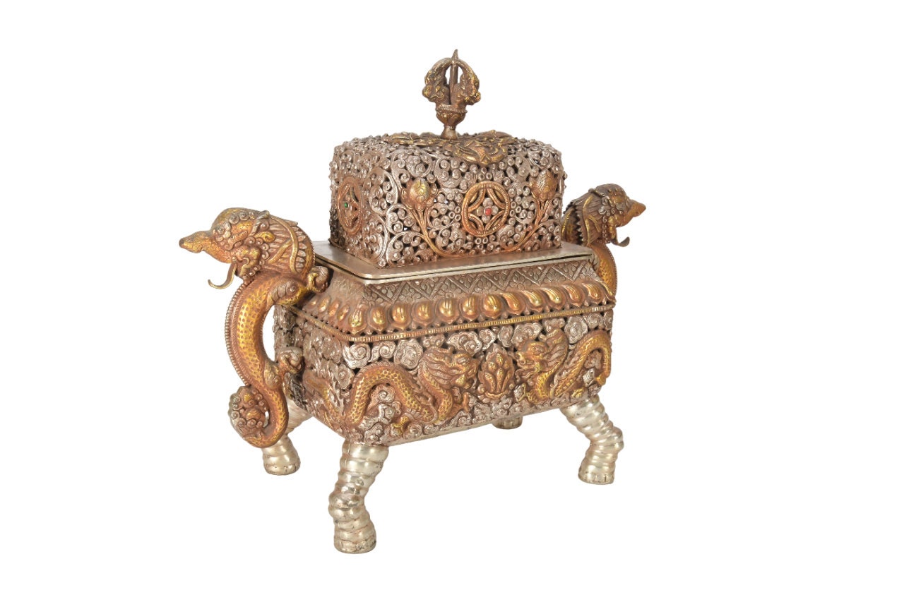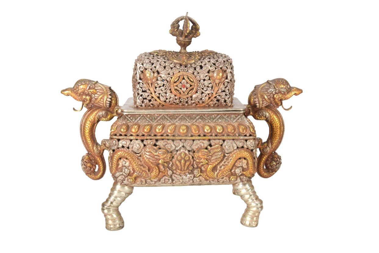Handmade Tibetan Dragon Incense Burner, Antique Buddhist Decor