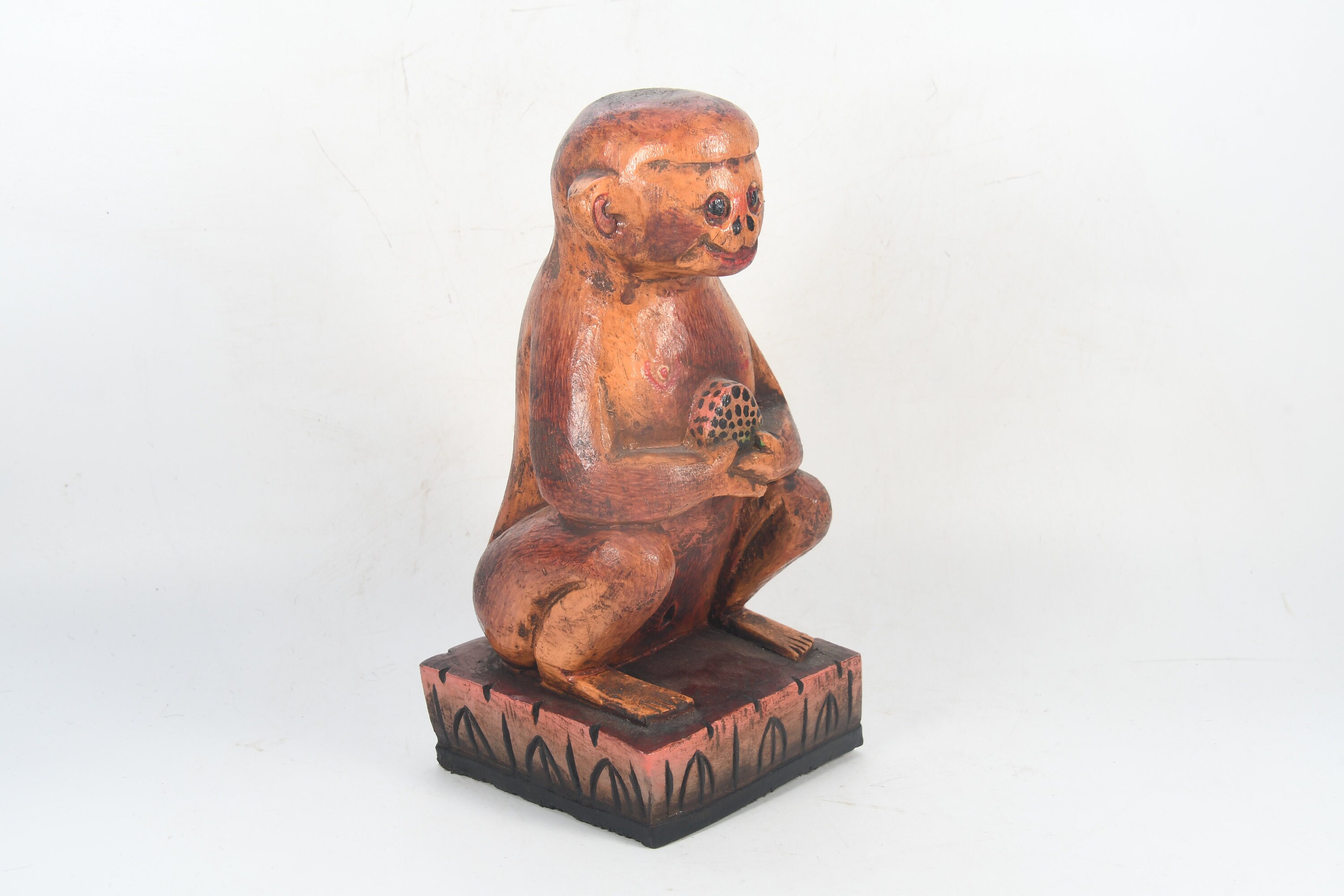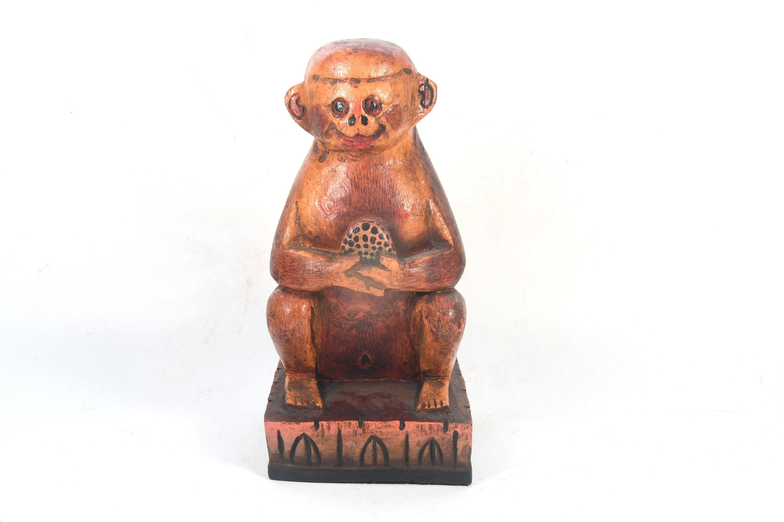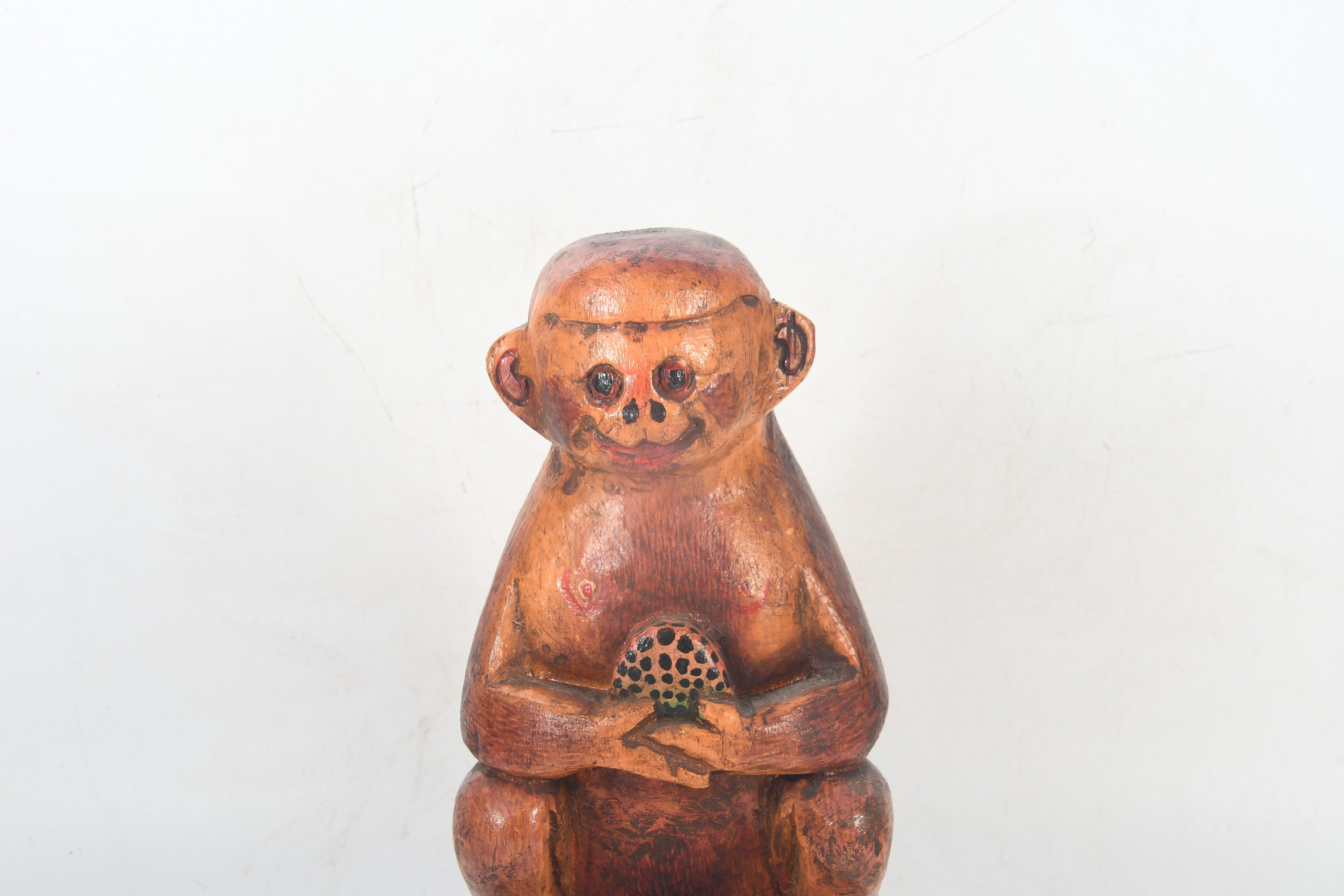 Vintage Wooden Monkey Statue, Handmade Tibetan Home Decor
