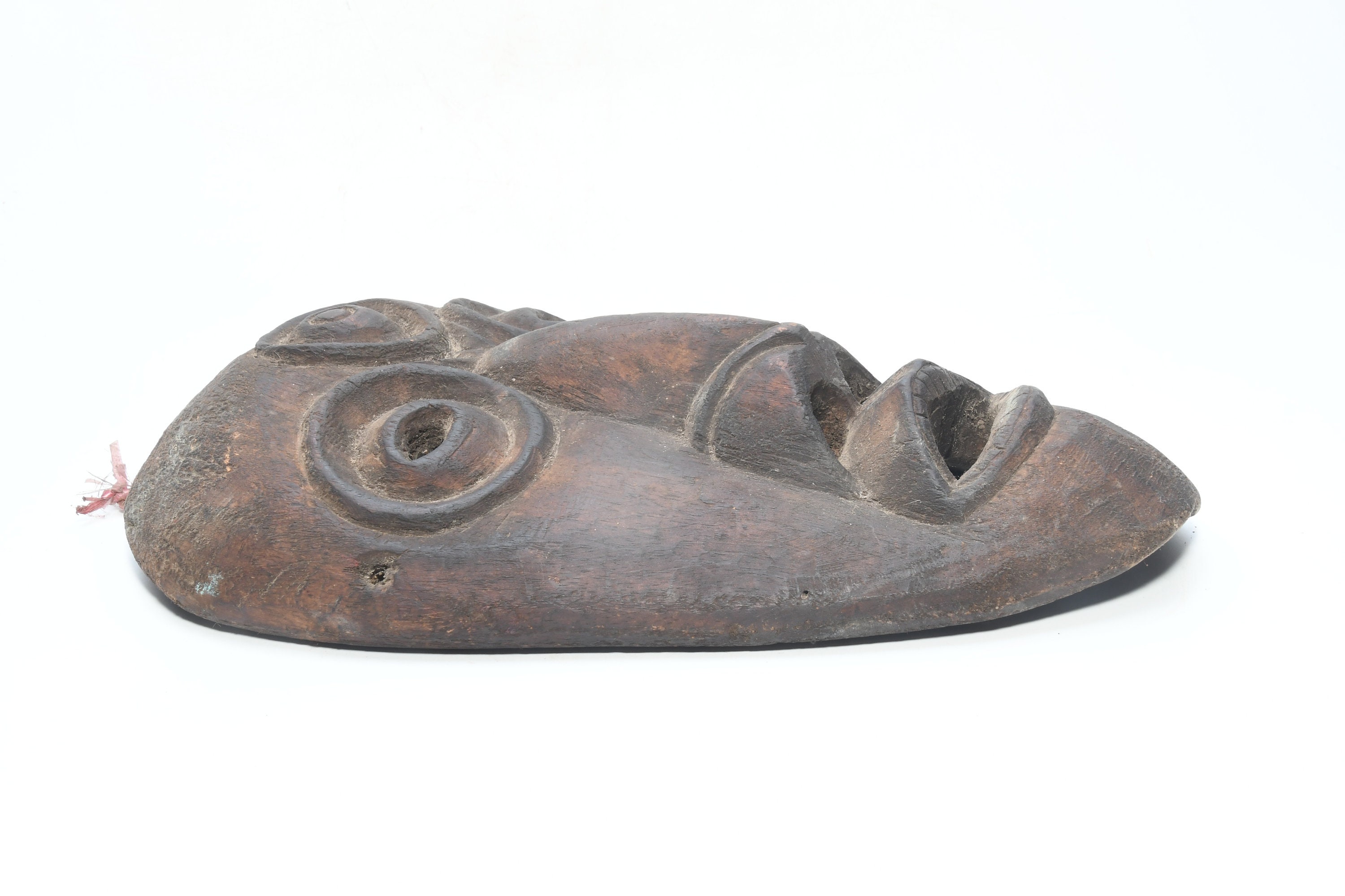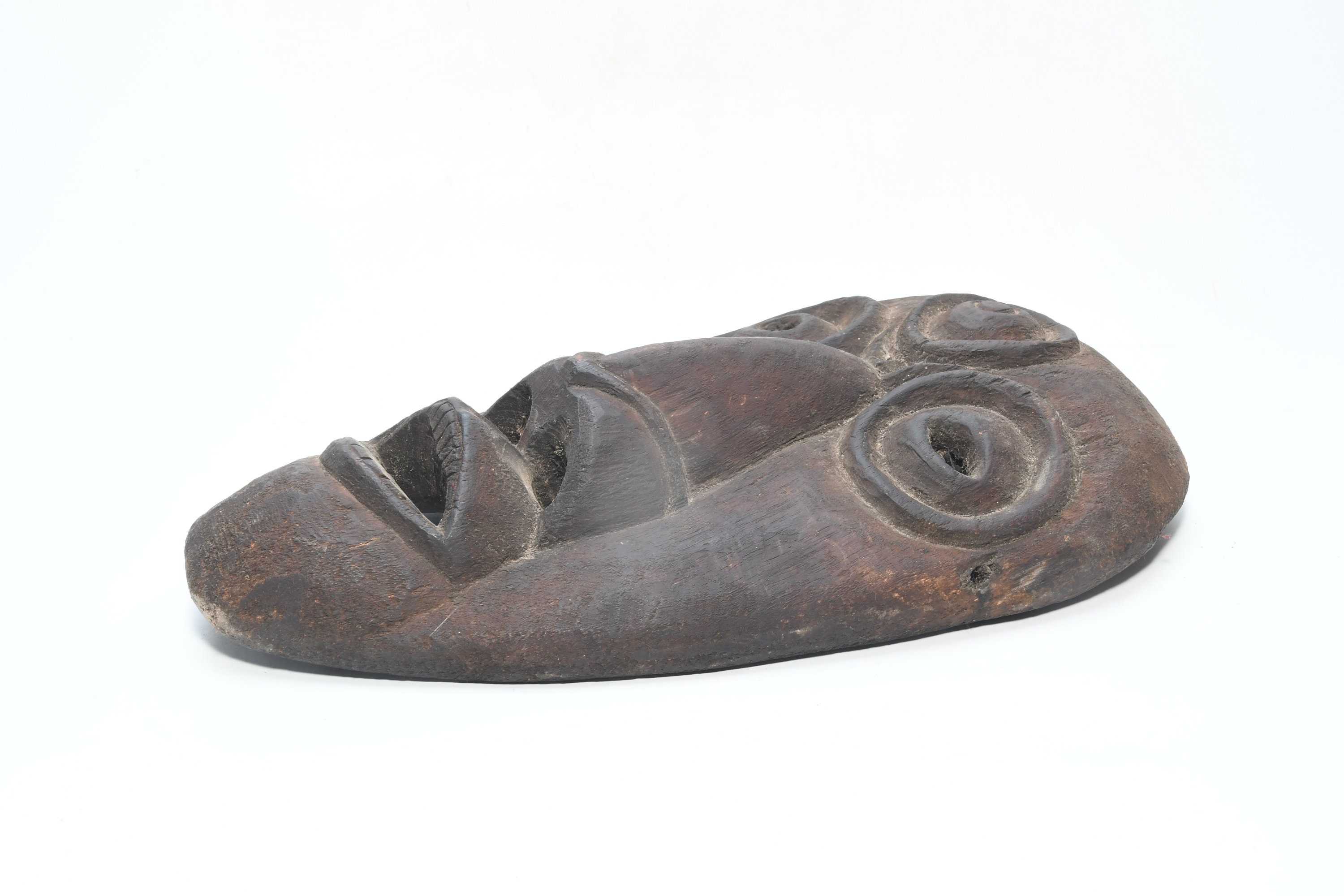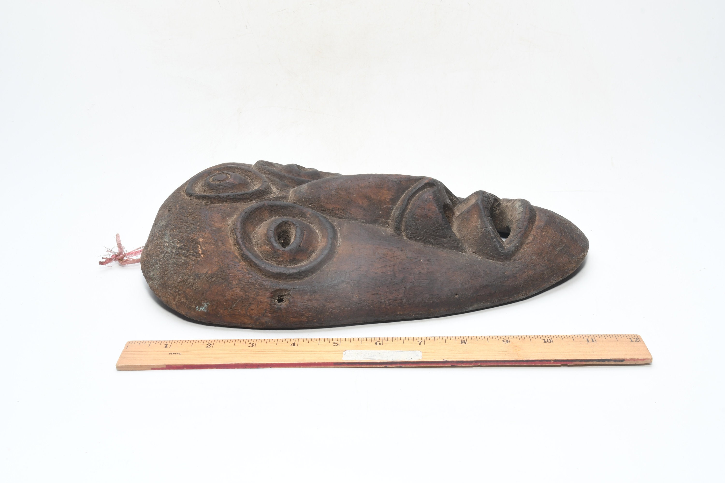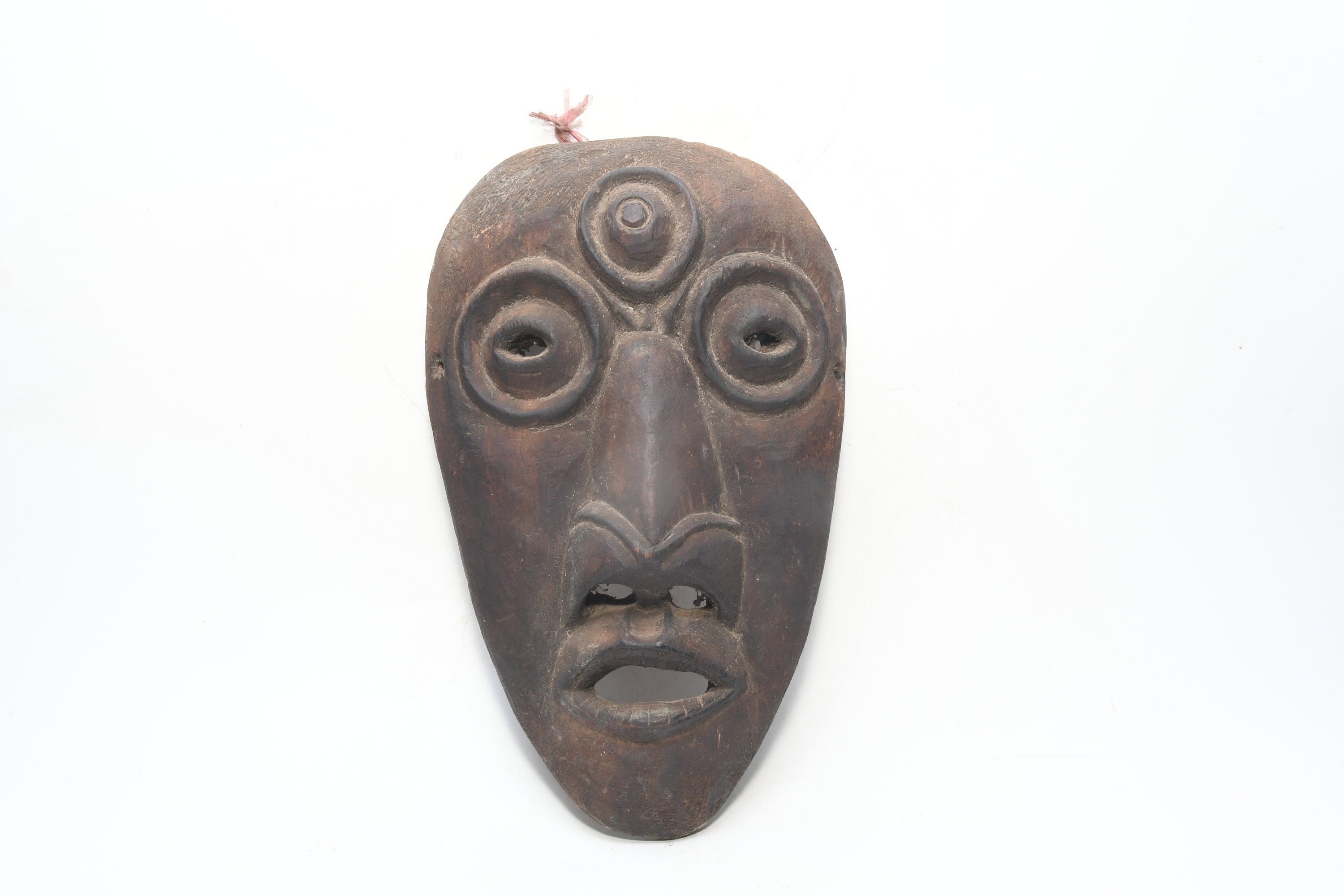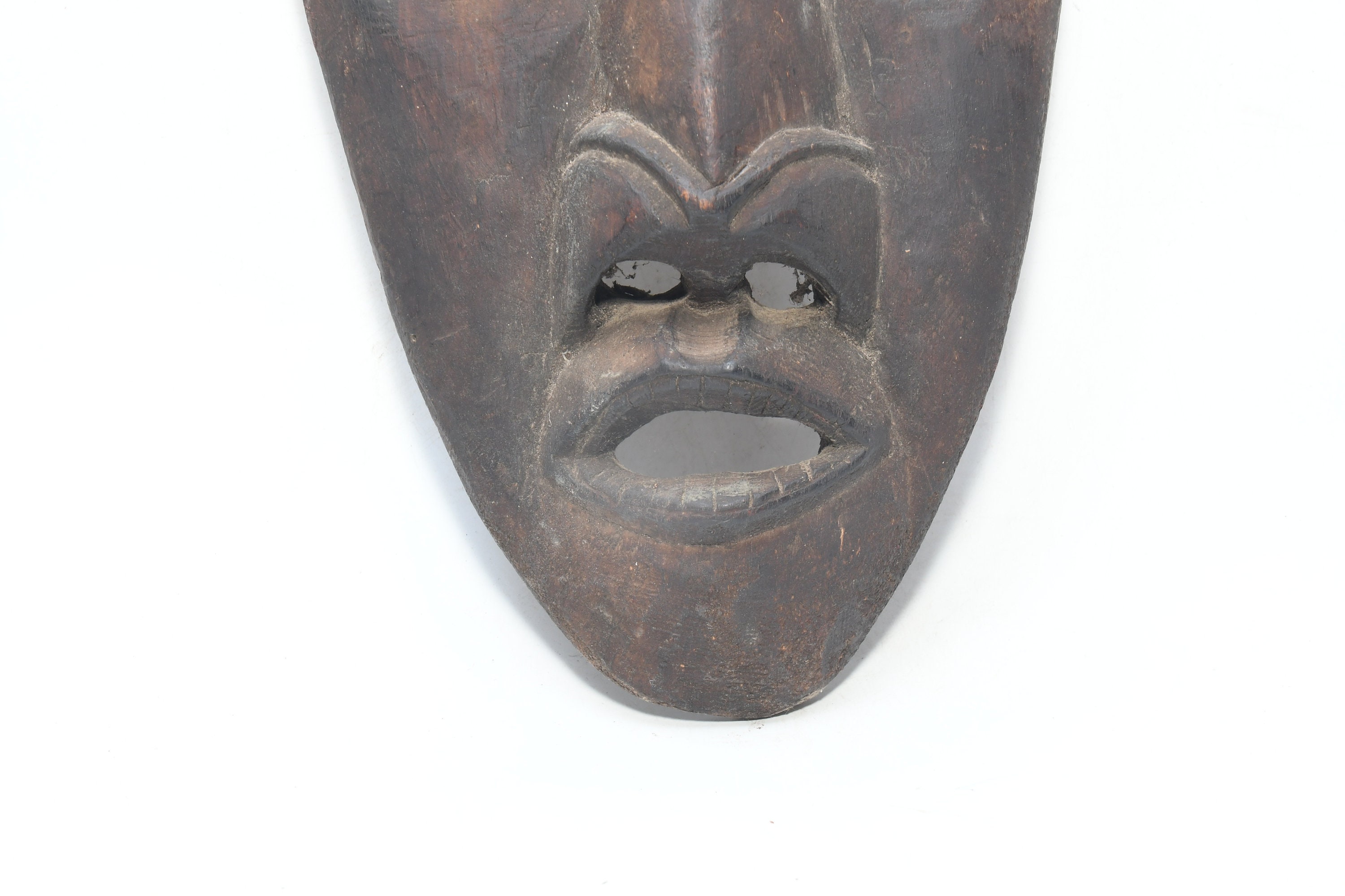 This Is a Rare Tharu Reverse Shaman Exorcism Mask That Was Hand Carved by a Tharu Shaman. The Tharu People Inhabit the Terai Region of Nepal and Some Areas of Tibet as Well. Shamanic Masks Like This Are Used in Religious Rituals, Festivals and Exorcisms by Shaman and Sometimes by Buddhist Monks.
