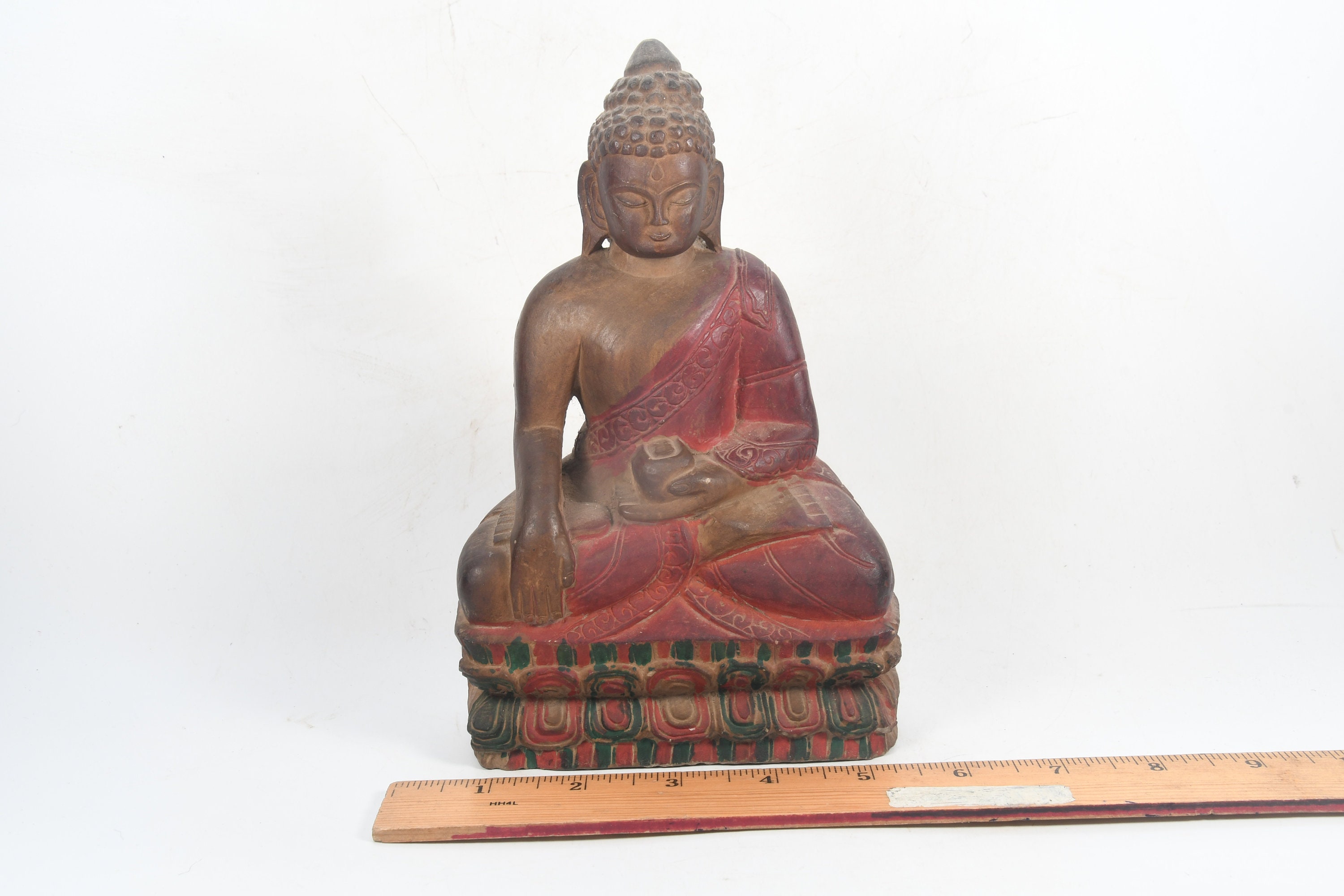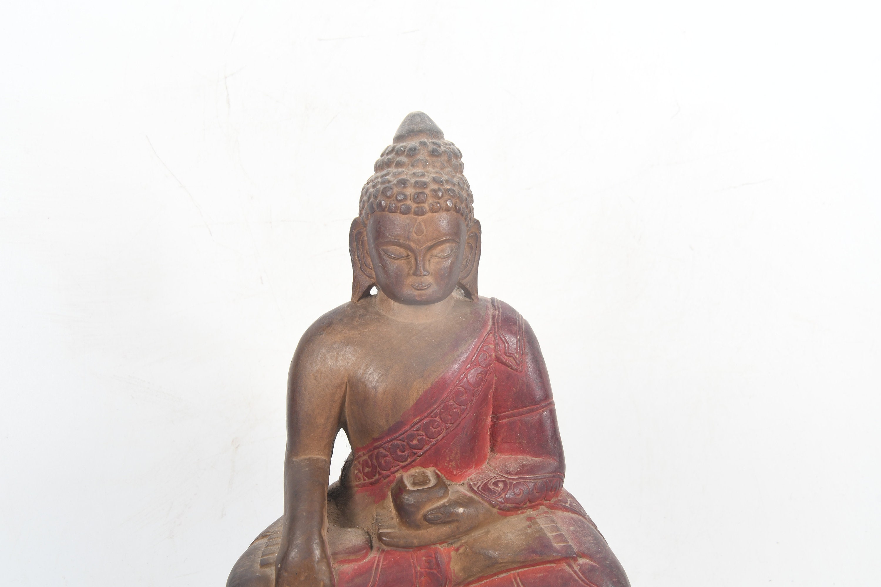 Stone Crafted Lord Buddha Antique Tibetan Religious Handmade Decorative Statue Healing Traditional Sculpture Nepal