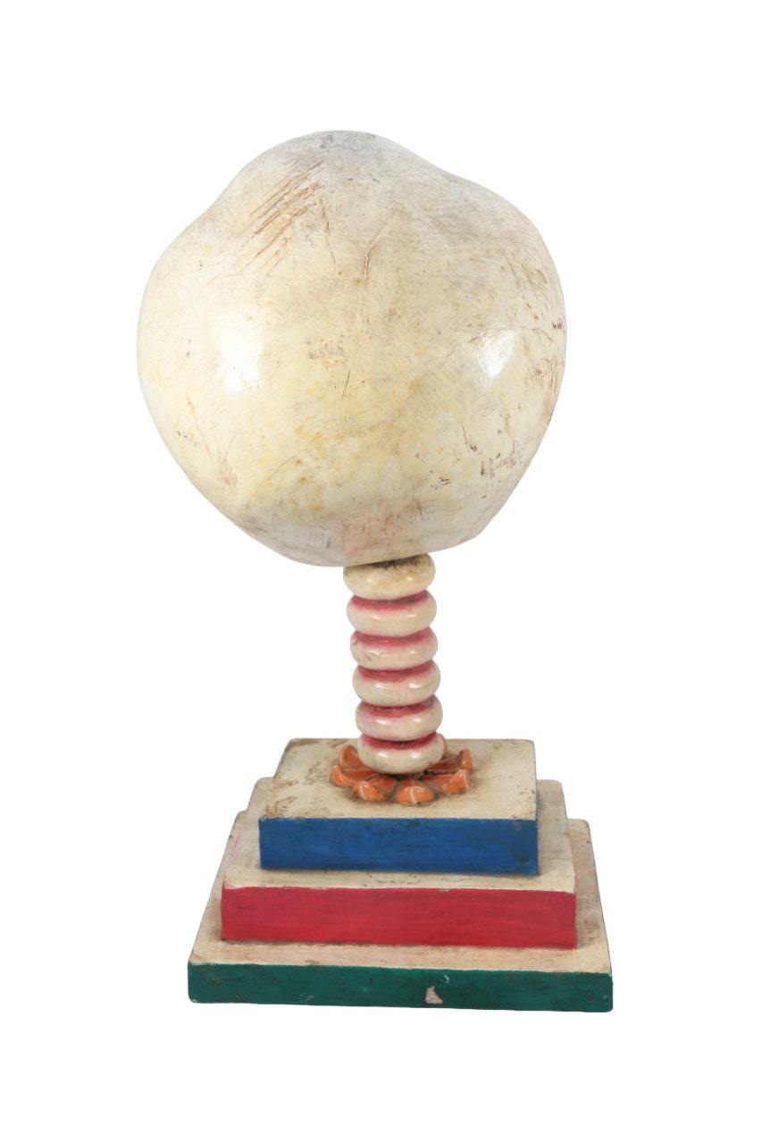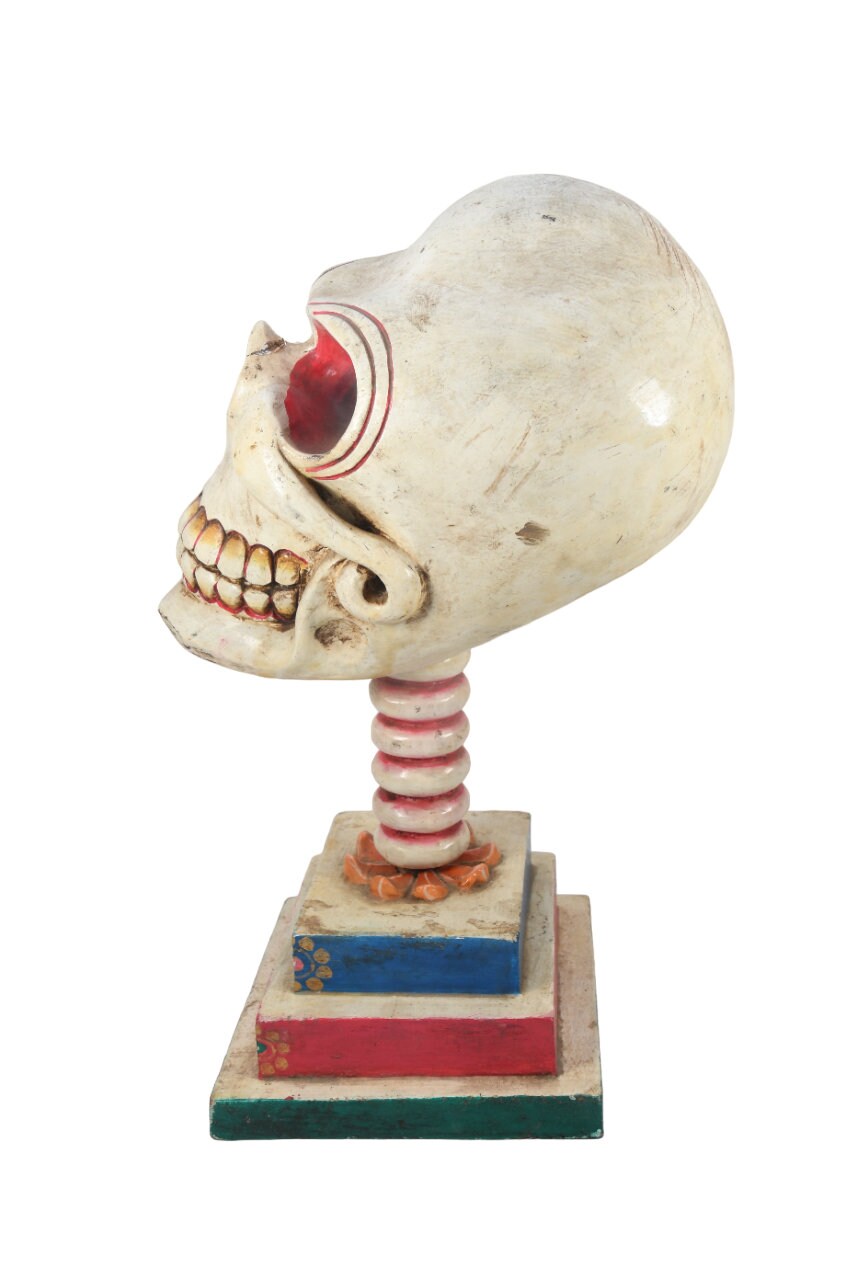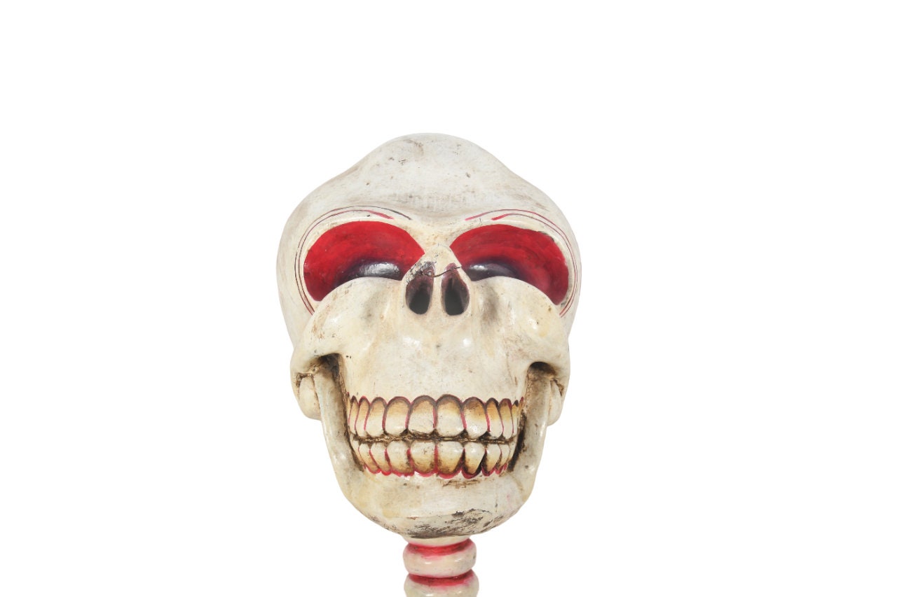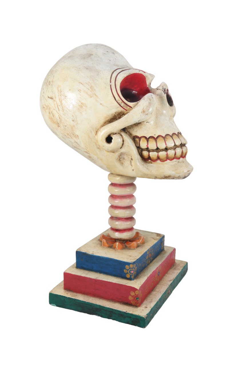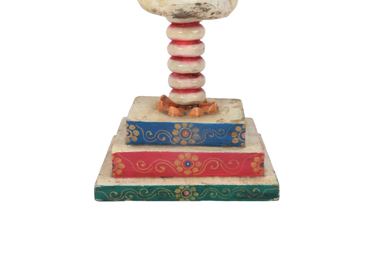 Antique Handmade Wooden Skull Figurine with Stand Vintage Craft Traditional Home Decorative Collectible Nepal